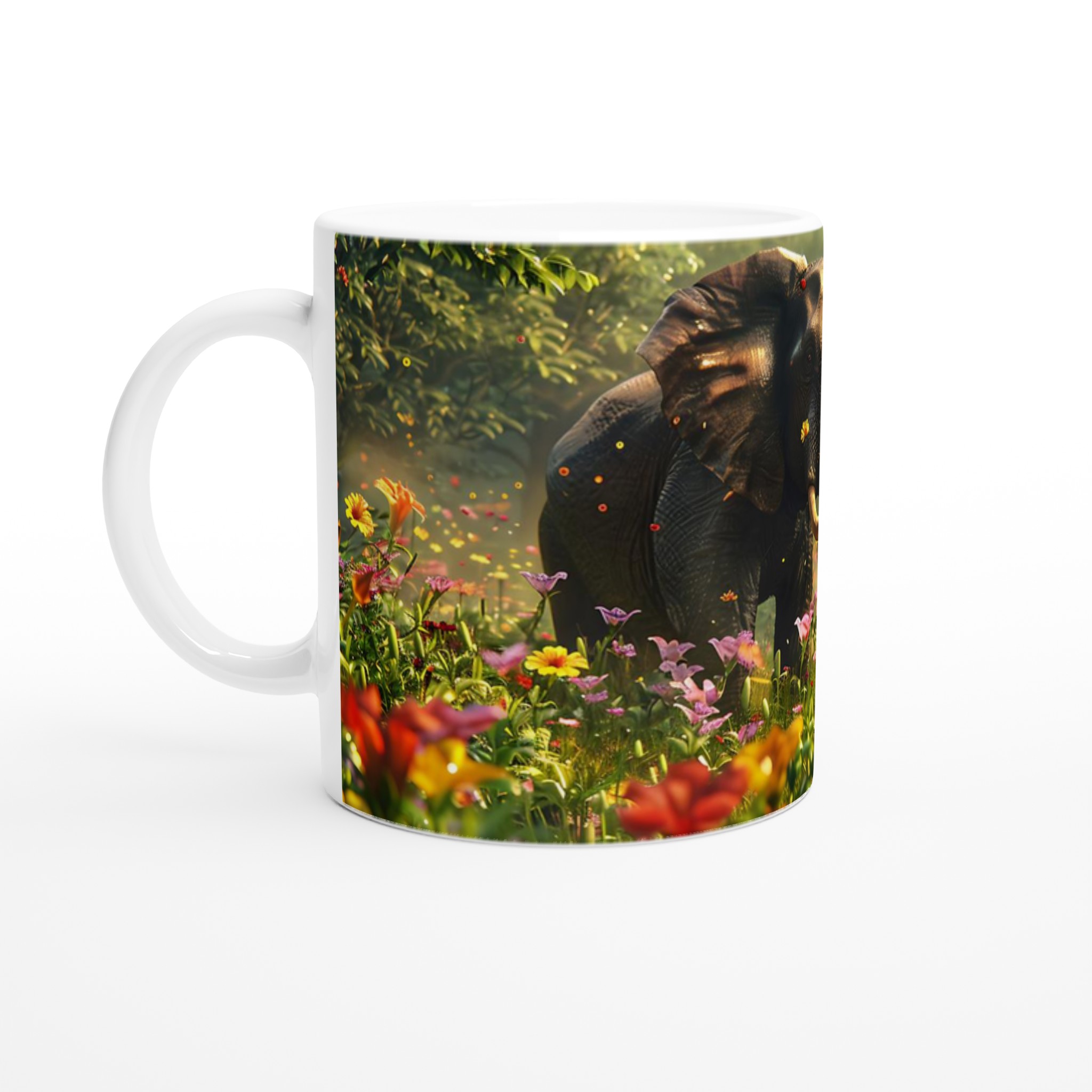 Inspirerad av den majestätiska elefanten som vandrar genom en förtrollande skog av blommande mirakel, fångar denna mugg essensen av äventyr och skönhet. Den blanka ytan ger ett skarpt och levande tryck, perfekt för att lyfta fram fantasifulla motiv eller en lugnande naturscen som väcker din inre drömmare.