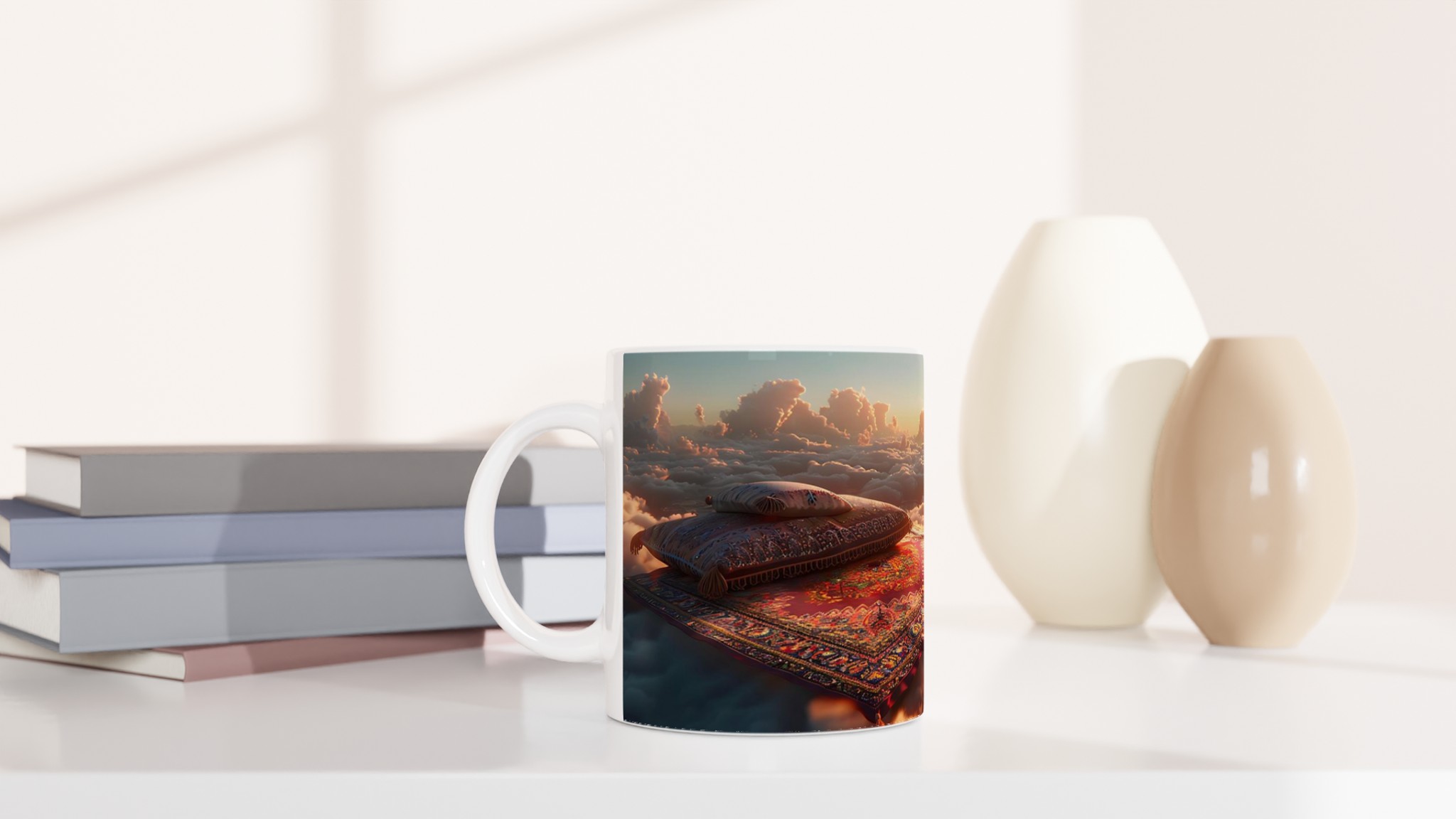 Muggen är inte bara praktisk – den är också en uppskattad present till familj, vänner eller kollegor. En enkel men personlig gåva som alltid kommer till användning. För att göra den extra speciell kan du välja din favoritfärg bland ett spektrum av sju härliga nyanser. Varje färg framhäver det drömska molnlandskapet på ett unikt sätt, så att du kan anpassa din mugg efter din egen stil eller mottagarens preferenser.