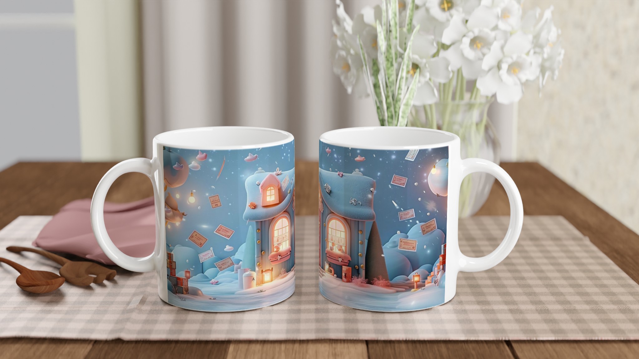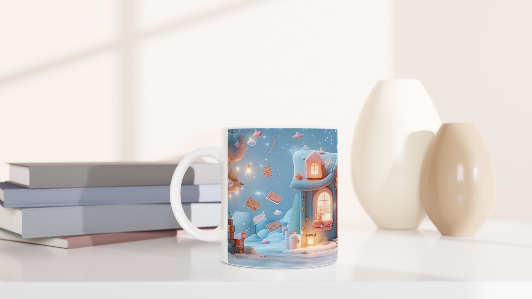 Fånga den förtrollande känslan av en mysig vinterkväll med vår ”Magisk Vinterdröm” keramiska mugg. Dess design, inspirerad av den lugna skönheten hos snöklädda landskap och gnistrande stjärnhim, skapar en känsla av lugn och glädje med varje klunk. Perfekt för morgonkaffet, kvällens varma choklad eller när du bara vill njuta av en kopp te och drömma dig bort till en värld av pastellfärgad magi.