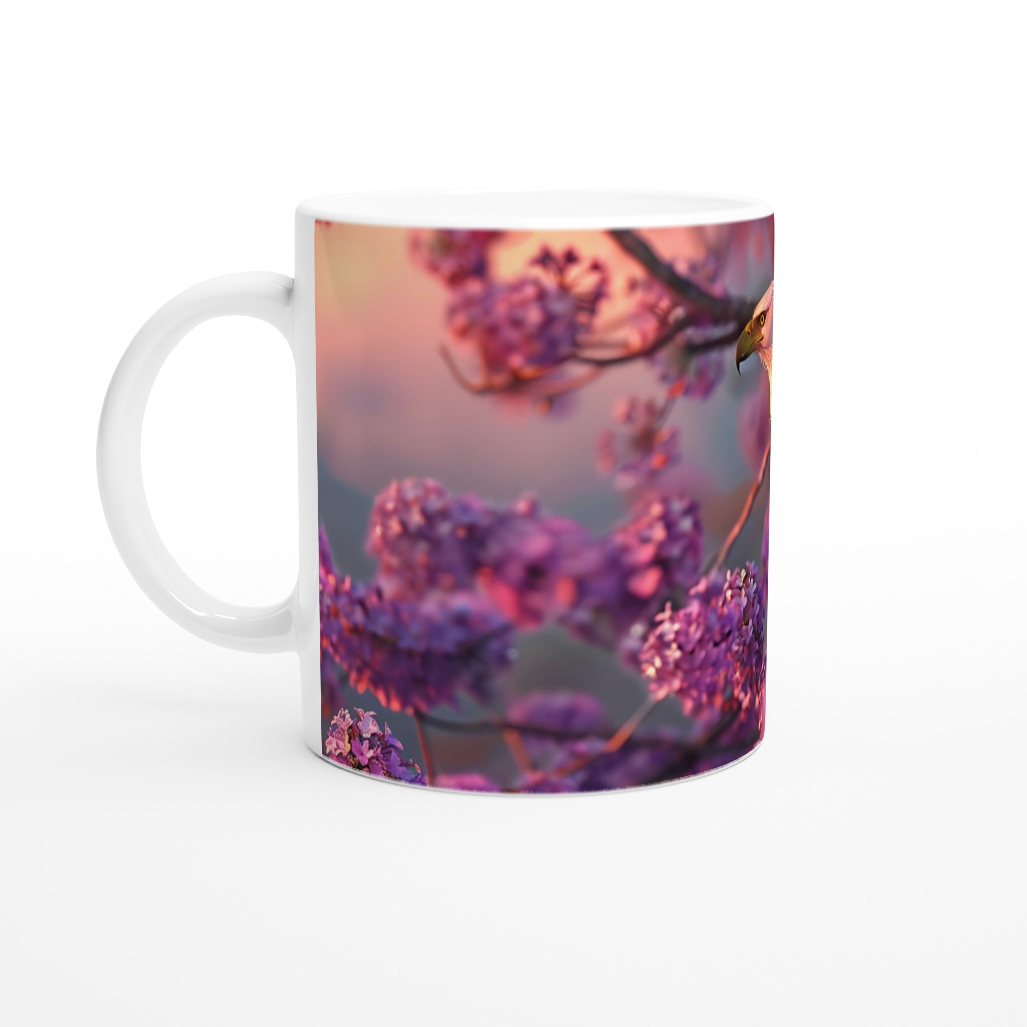 Inspirerad av den majestätiska örnen badad i gryningens varma, rosa och lila toner, fångar denna mugg en känsla av lugn och storslagenhet. Den blanka ytan ger ett skarpt och levande tryck som verkligen sticker ut, oavsett om det är en personlig design, ett roligt citat eller en present till någon du tycker om.