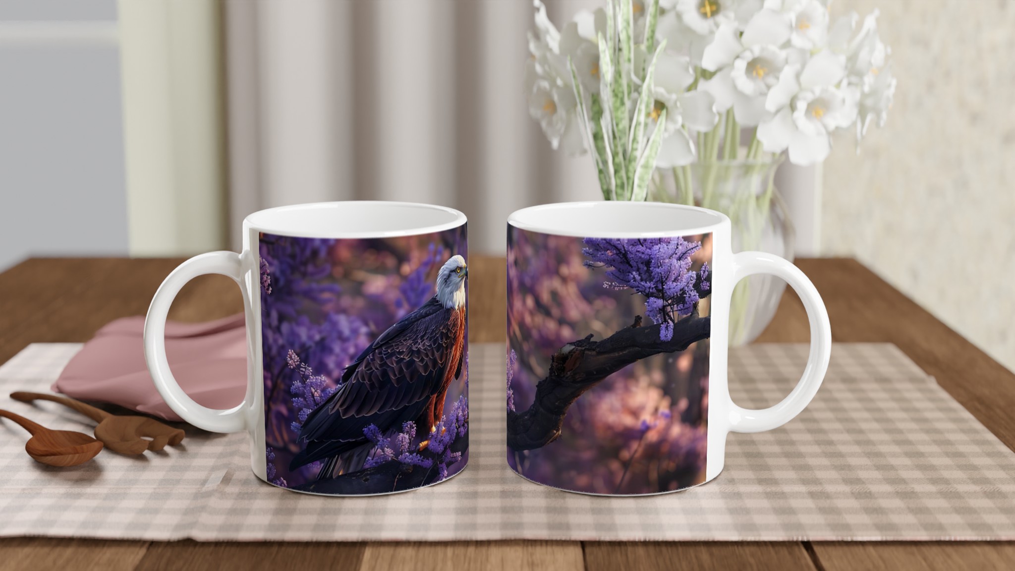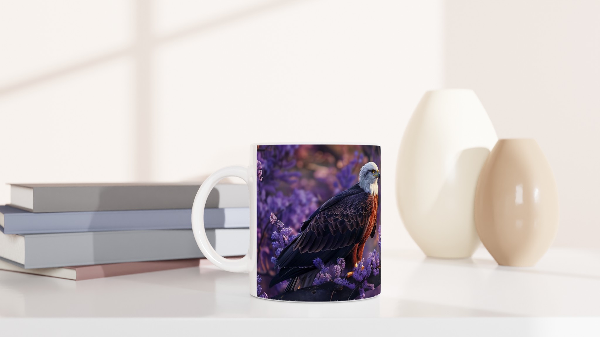 Tillverkad med en blank yta, framhävs det detaljrika trycket av örnen och de lila blommorna med klara och levande färger. Den höga kvaliteten säkerställer att trycket håller sig vackert, även efter otaliga omgångar i mikrovågsugnen och diskmaskinen. Välj din personliga stil bland en palett av sju härliga färger, från klassisk vit till djärv svart, och låt din mugg spegla din unika personlighet.