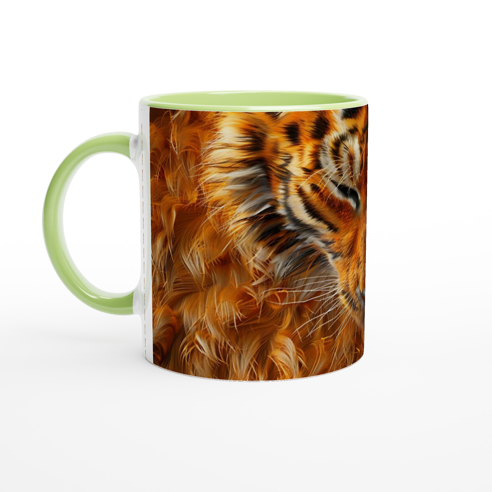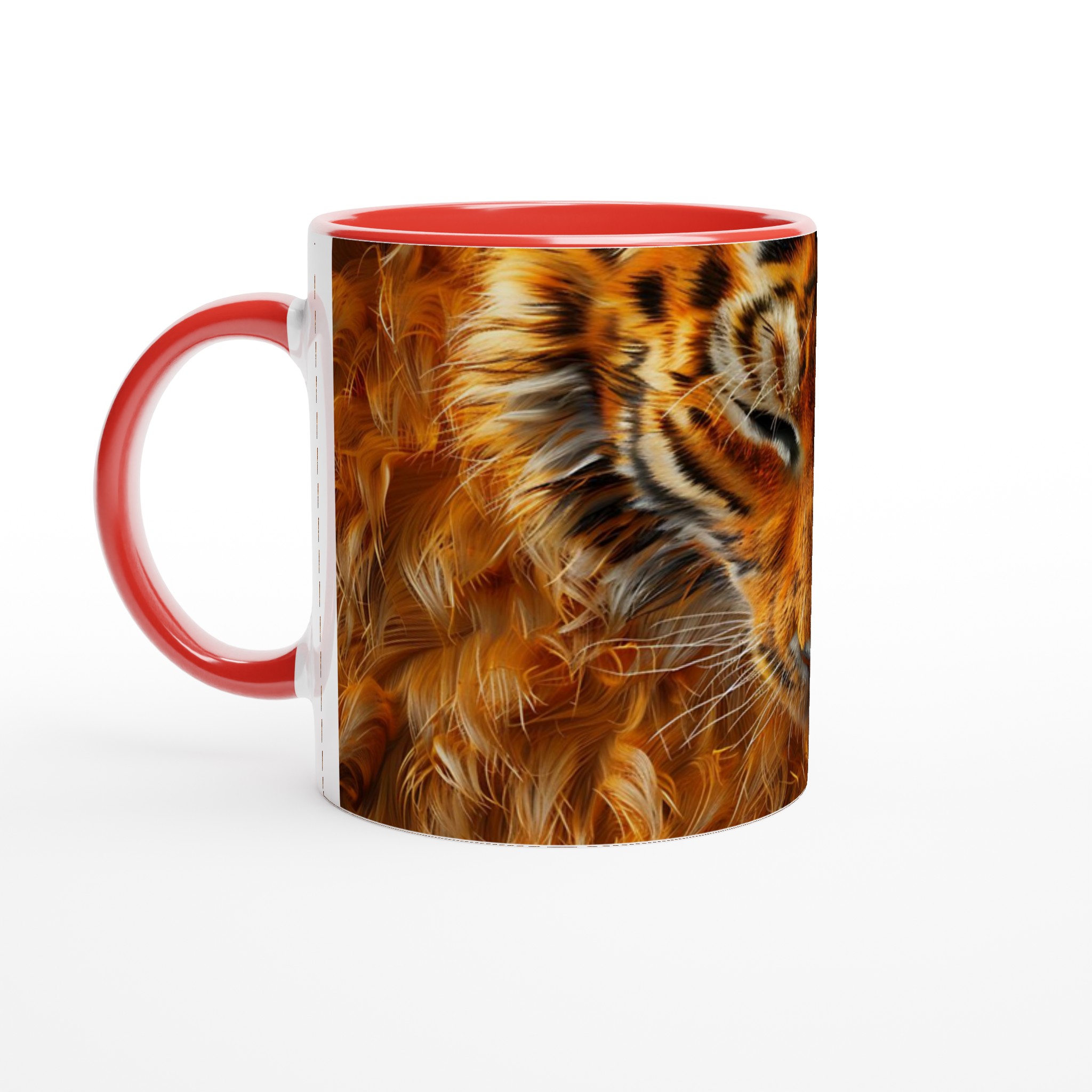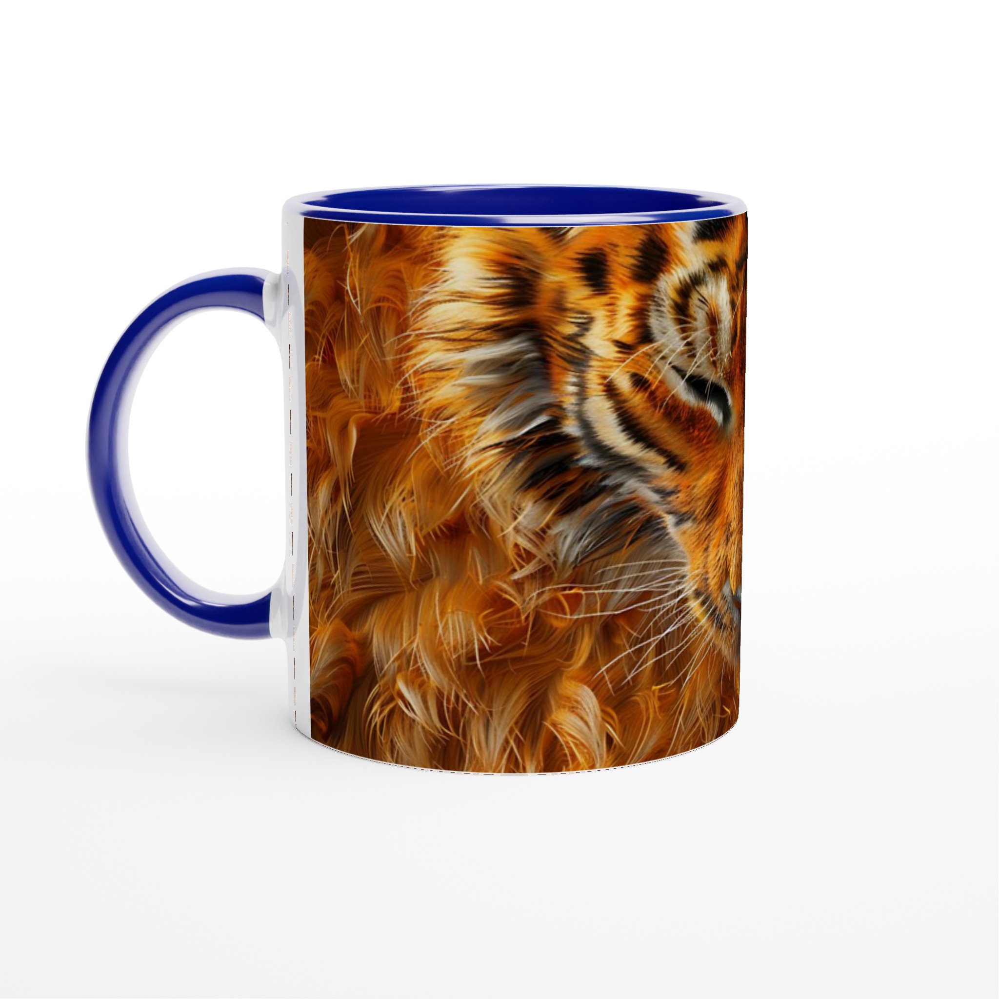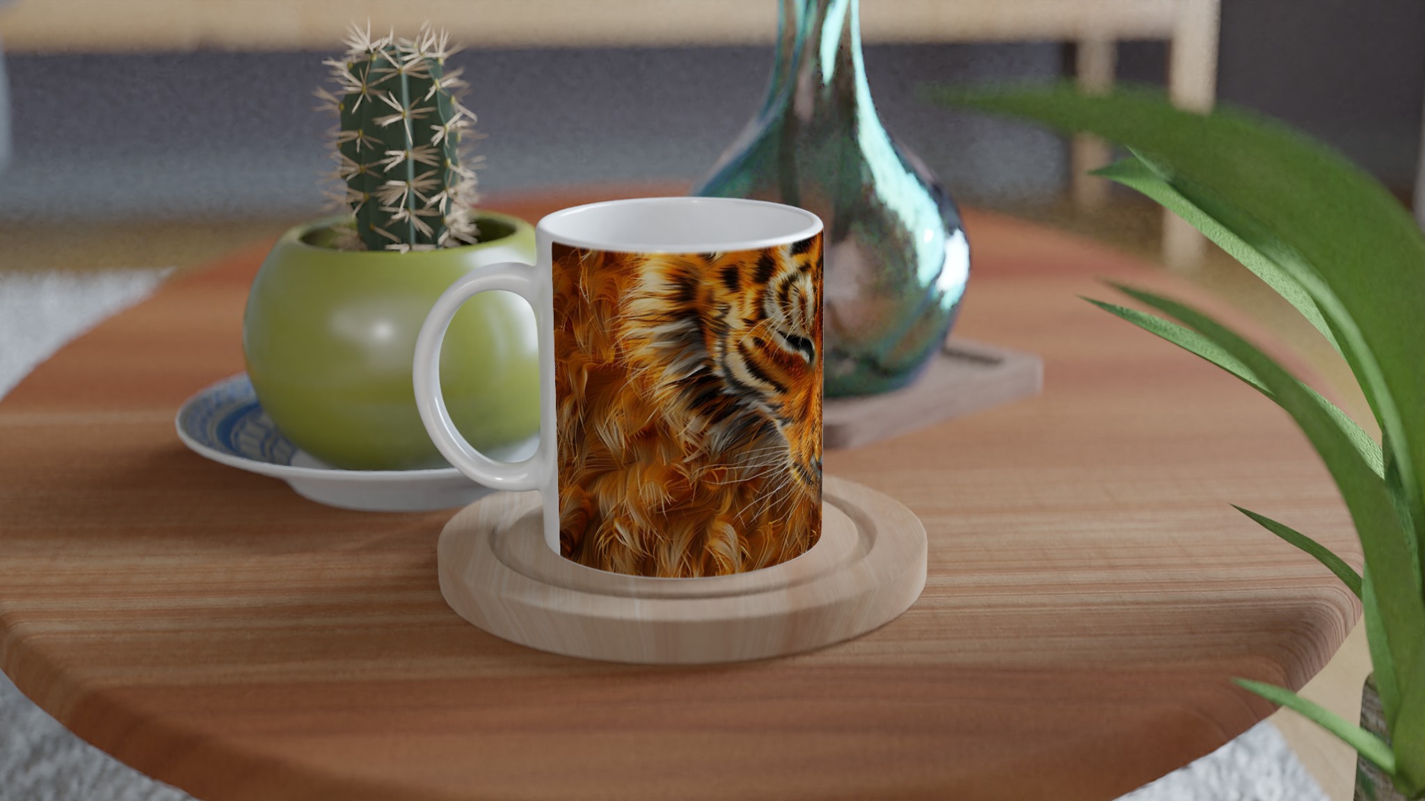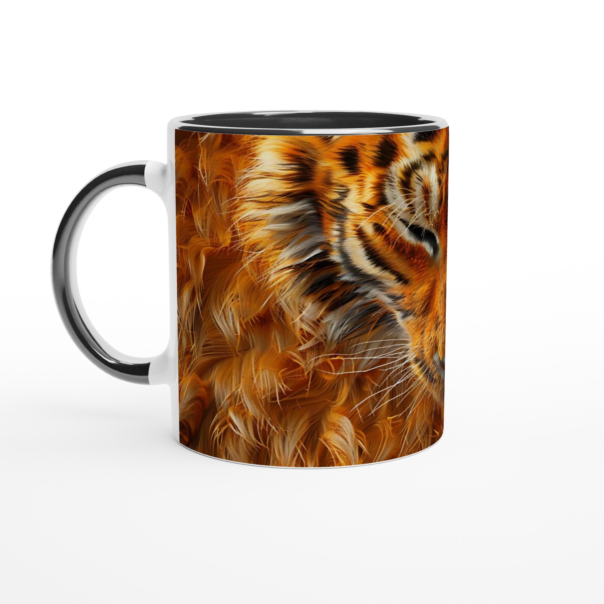 Upplev djungelns storslagenhet varje gång du tar en klunk med denna majestätiska keramiska mugg. Dess design fångar den vilda skönheten hos en tiger, med en rik palett av guldiga, orangea och jordnära toner som skapar en känsla av lyx och styrka. Den blanka ytan låter trycket framhävas med otrolig detaljrikedom och livfulla färger, vilket gör den till en sann blickfångare i ditt hem eller på kontoret.