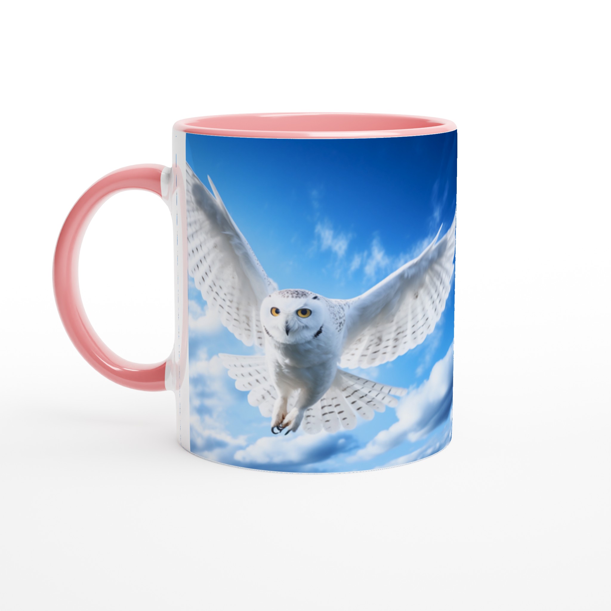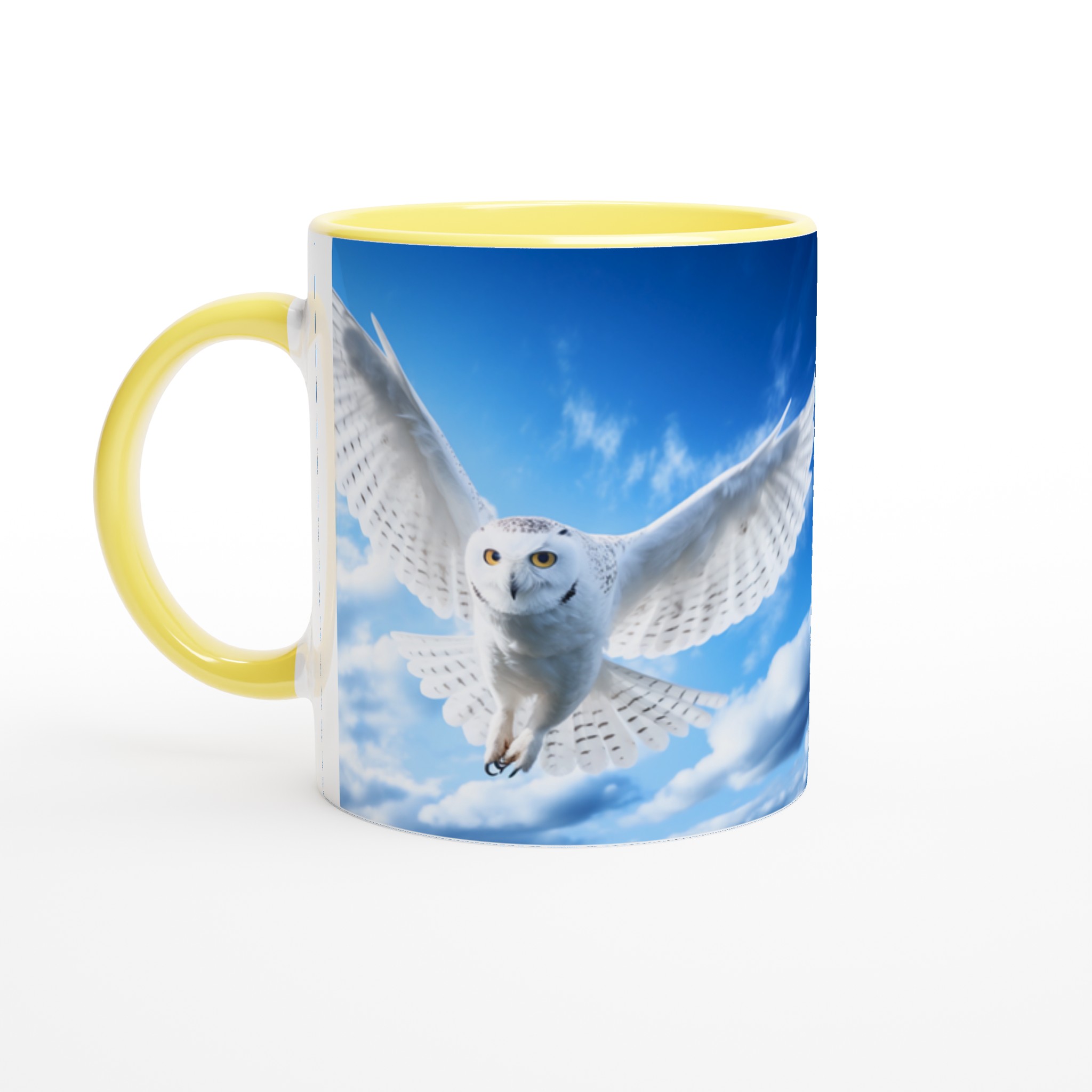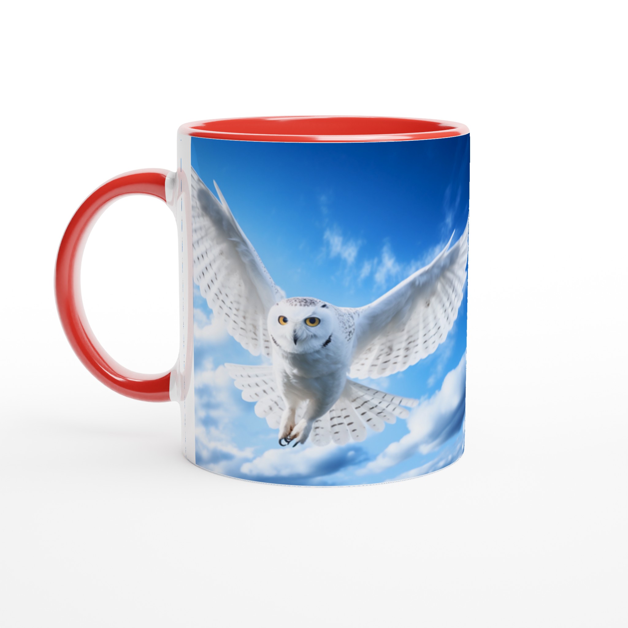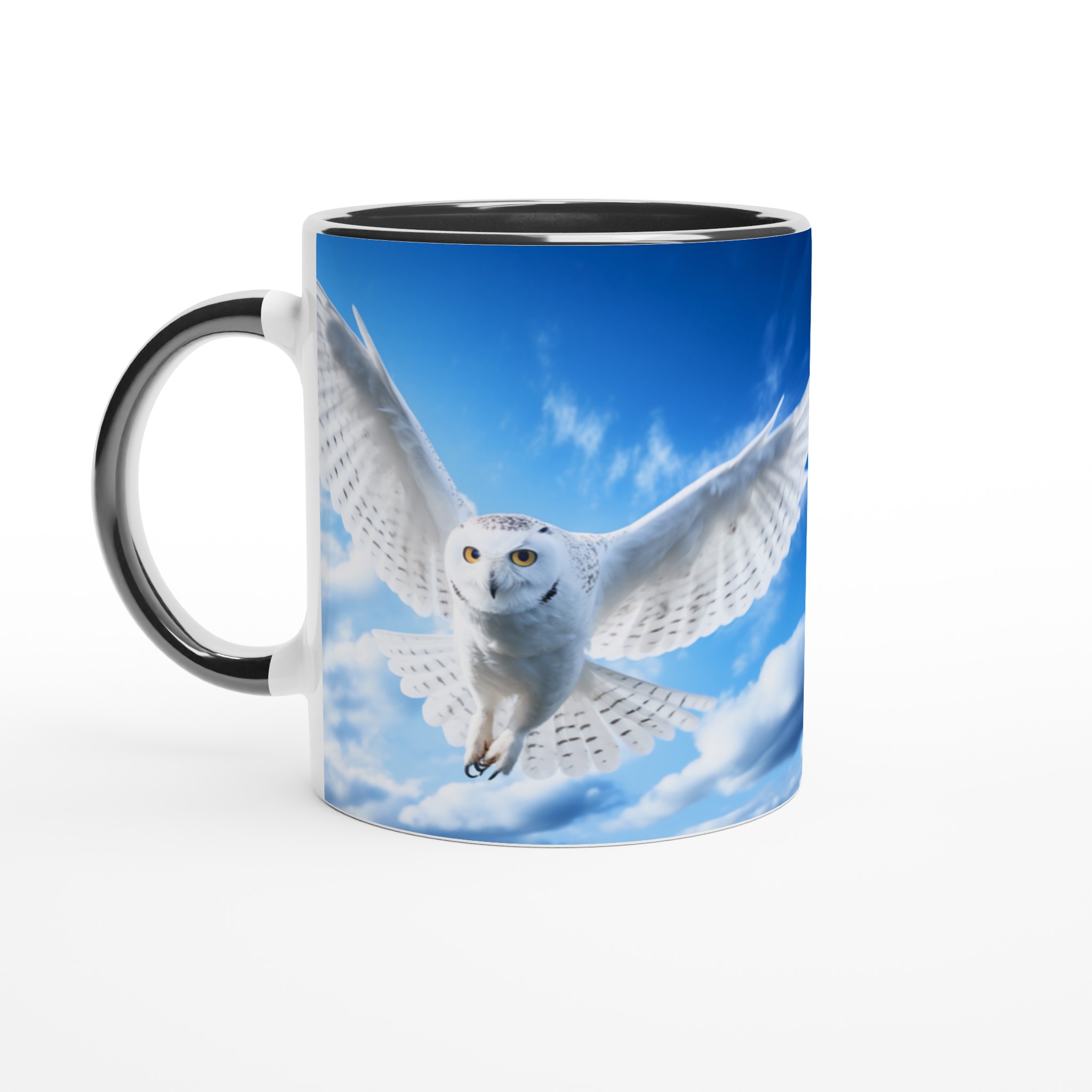 Låt dig inspireras varje dag med vår majestätiska keramiska mugg, som fångar den lugna skönheten hos en snöuggla i flykt under en klarblå himmel. Denna mugg blir snabbt en vardagsfavorit, perfekt för ditt morgonkaffe, kvällens varma choklad eller när du bara vill njuta av en kopp te.