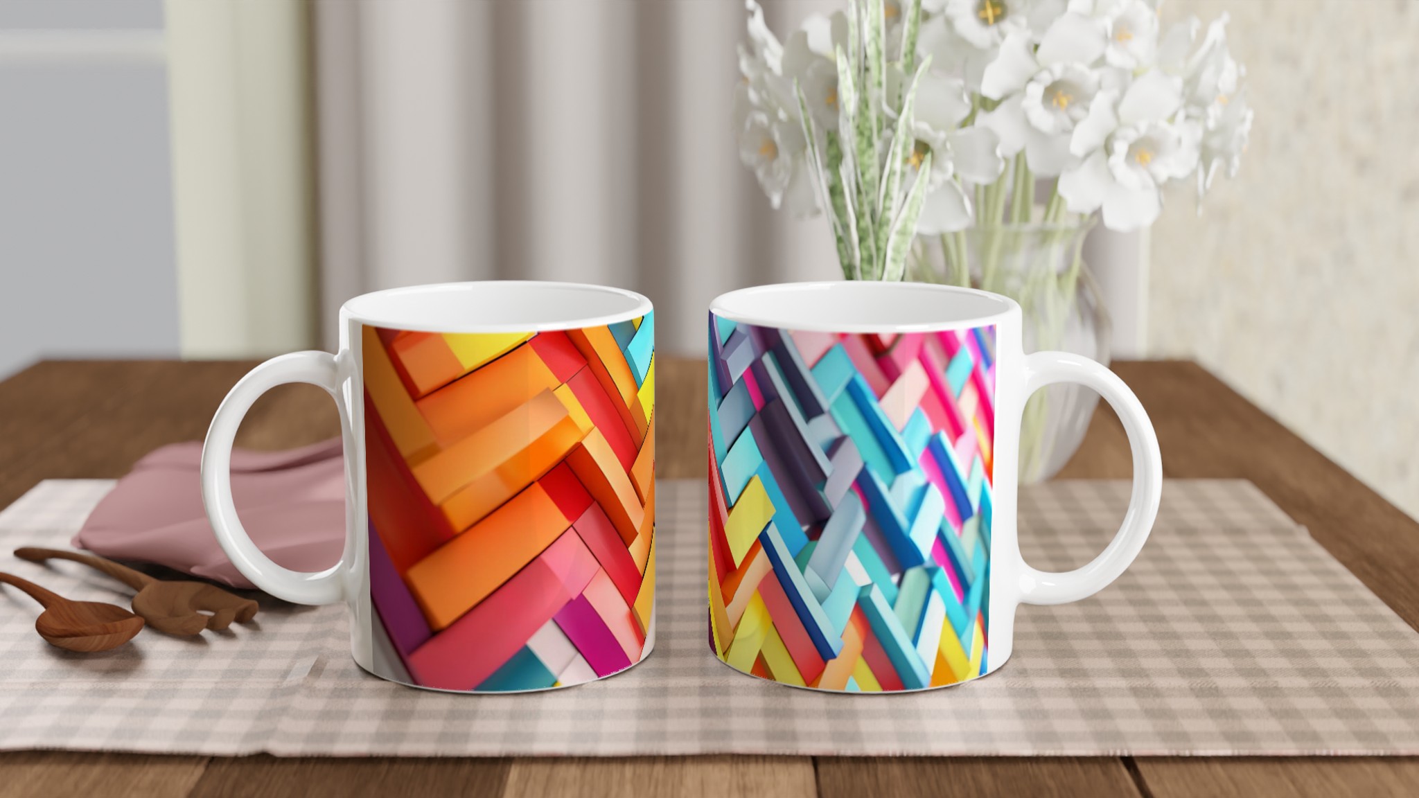 Denna stilrena och vackra keramikmugg är perfekt för alla dagens stunder – morgonkaffet, en värmande kopp te eller en härlig varm choklad. Den blanka vita ytan gör att trycken framträder klart och färgstarkt, vilket gör muggen till en riktig favorit i vardagen. Tack vare den höga kvaliteten behåller trycket sin lyster även efter många omgångar i både mikrovågsugn och diskmaskin.