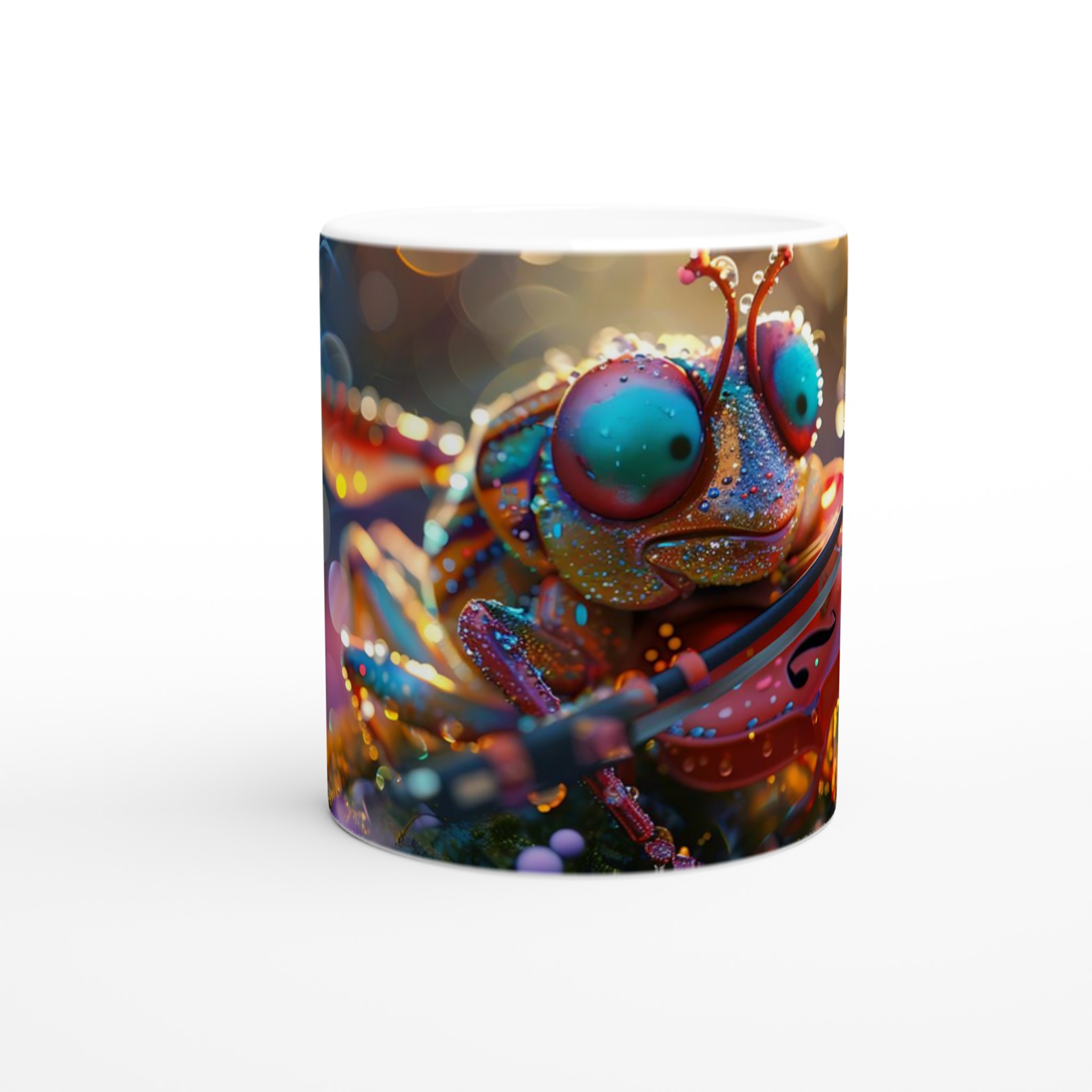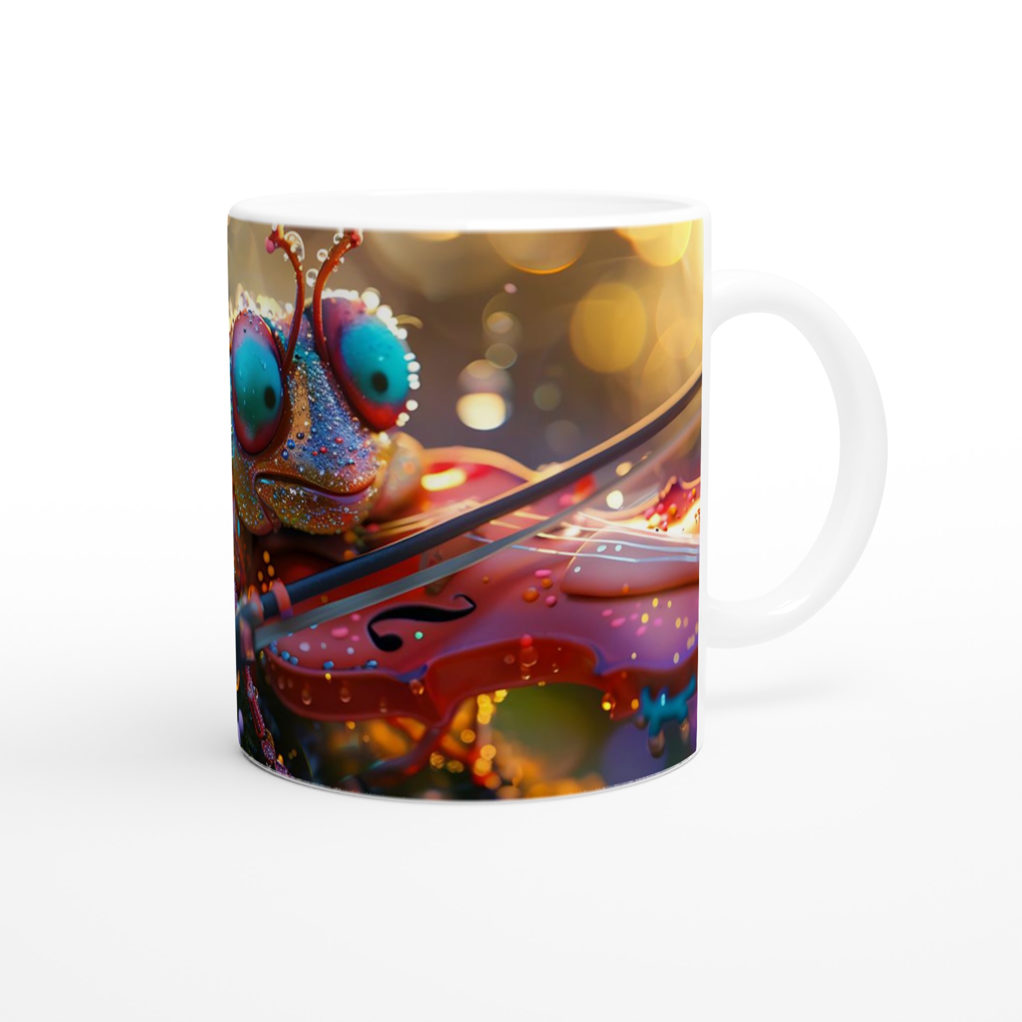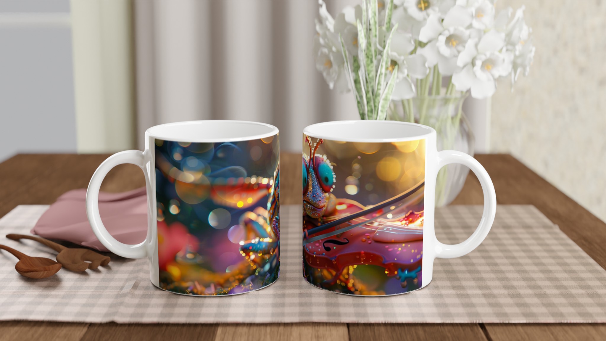 Låt din morgonmusik börja med en explosion av färg! Denna lekfulla keramiska mugg pryds av en bedårande, glittrande insekt som skickligt spelar fiol, omgiven av ett magiskt skimmer. De livfulla färgerna och den fantastiska detaljrikedomen fångar ögat och sprider glädje, vilket gör den till den perfekta följeslagaren för dina favoritdrycker – oavsett om det är en lugn te-stund eller en energifylld kaffepaus.
