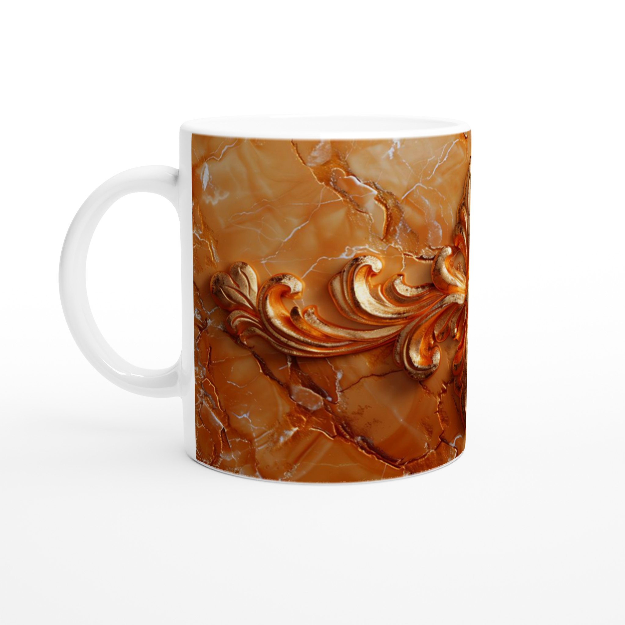 Vår exklusiva mugg kombinerar tidlös elegans med praktisk design, inspirerad av barockens rika guldornamentik och lyxiga marmormönster. Denna mugg är inte bara en dryckesbehållare, utan ett konstverk för din hand – perfekt för att lägga till en touch av sofistikerad stil i din vardag. Med en kapacitet på 11 oz (ca 3,25 dl) är den perfekt för morgonkaffe, te, varm choklad eller din favoritdryck på jobbet. En idealisk storlek för både hem och kontor.