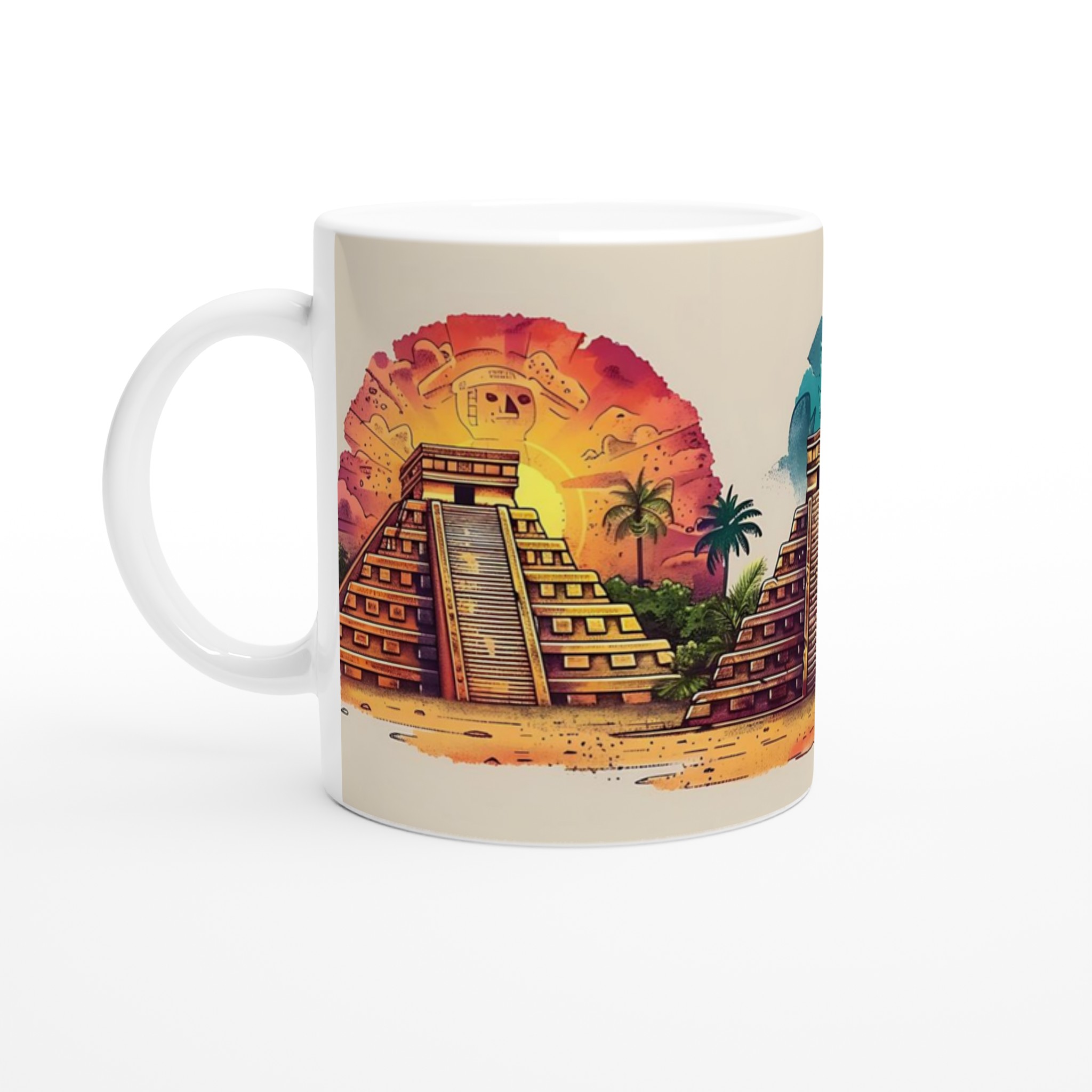 Res tillbaka i tiden med varje klunk från vår premium keramikmugg, prydd med majestätiska Maya-tempel som tar din fantasi på äventyr.