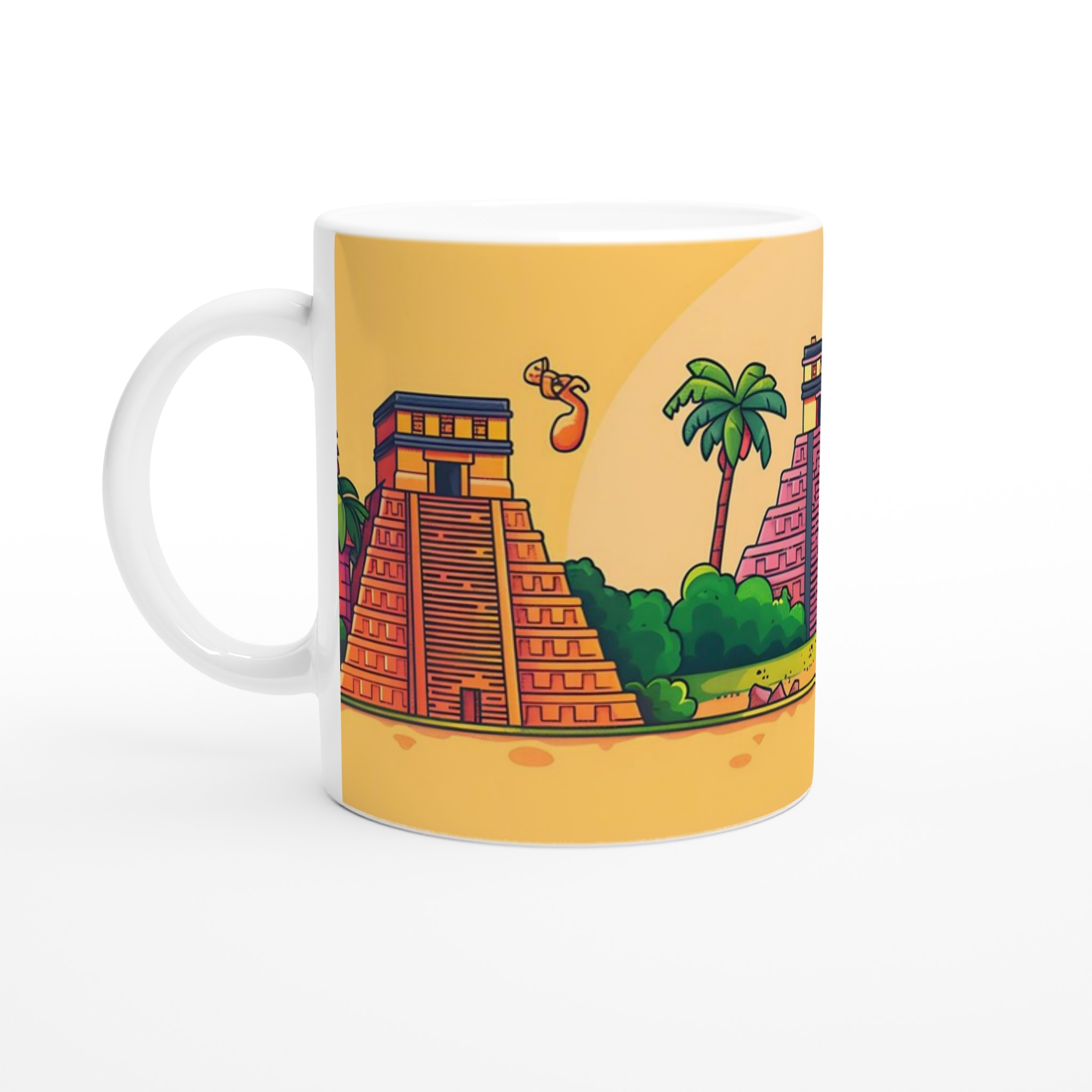 Denna unika mugg med motiv av majestätiska Maya-tempel tar dig med på en resa till forntida civilisationer och tropiska landskap med varje sipp. Den blanka vita ytan ger ett skarpt och levande tryck som verkligen sticker ut, oavsett om det är en personlig design, ett roligt citat eller en present till någon du tycker om.