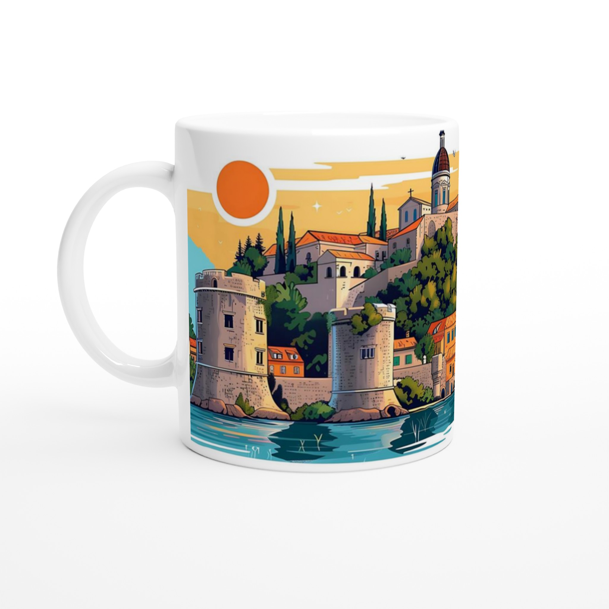 Inspirerad av den solkyssta Medelhavskusten, med dess charmiga arkitektur och rofyllda atmosfär, ger denna mugg en känsla av lugn och äventyr till din dag. Den blanka vita ytan ger ett skarpt och levande tryck som verkligen sticker ut, oavsett om det är en personlig design, ett roligt citat eller en present till någon du tycker om.