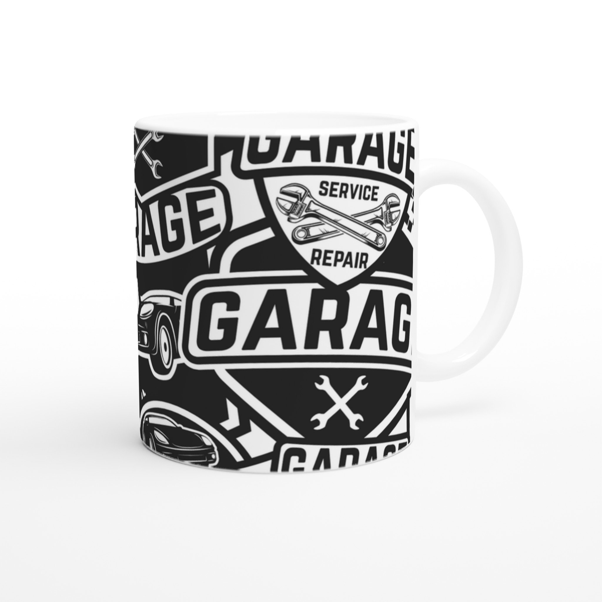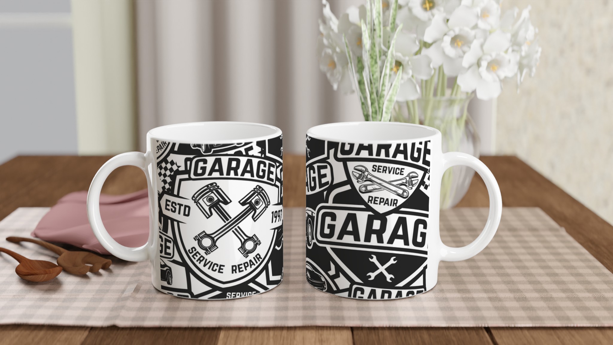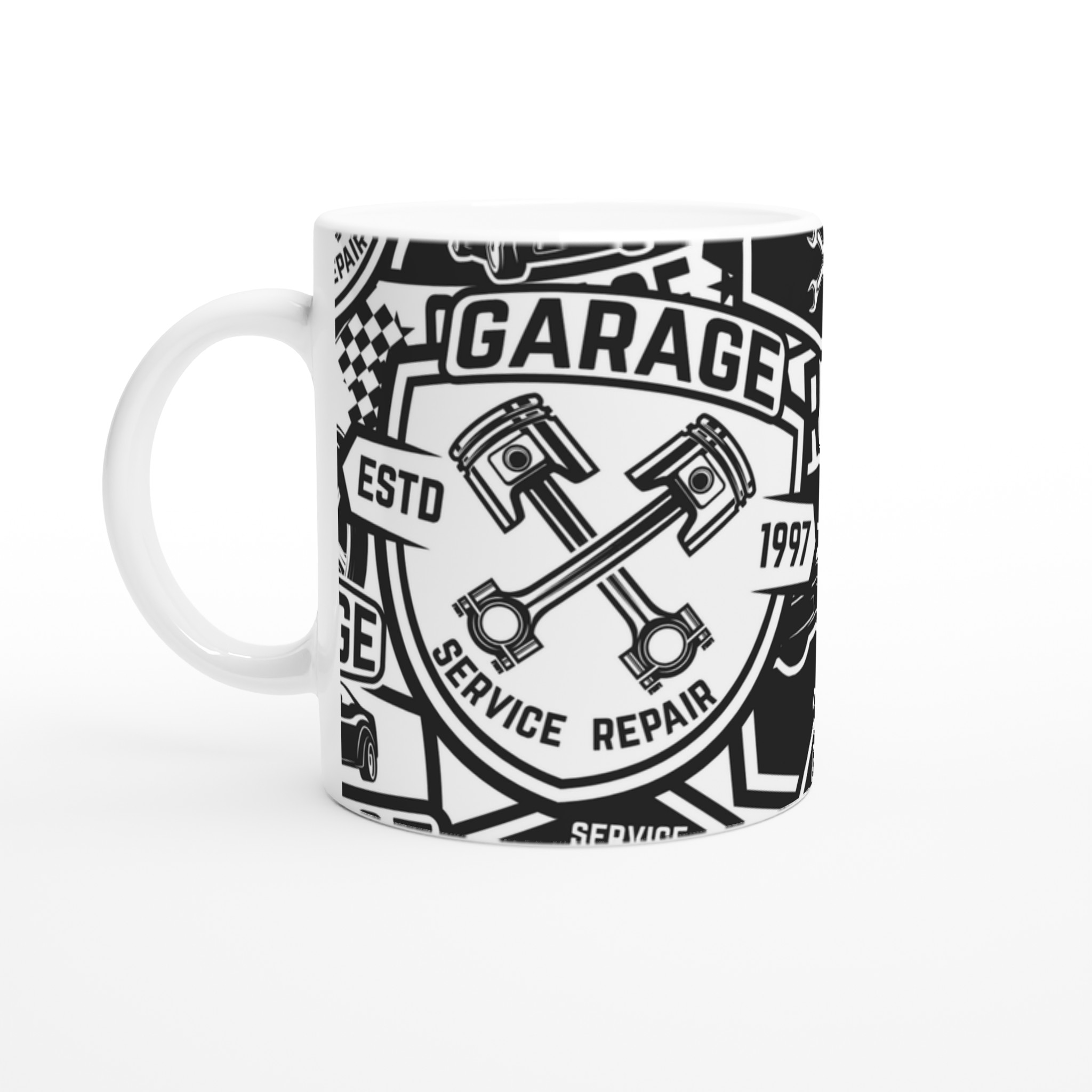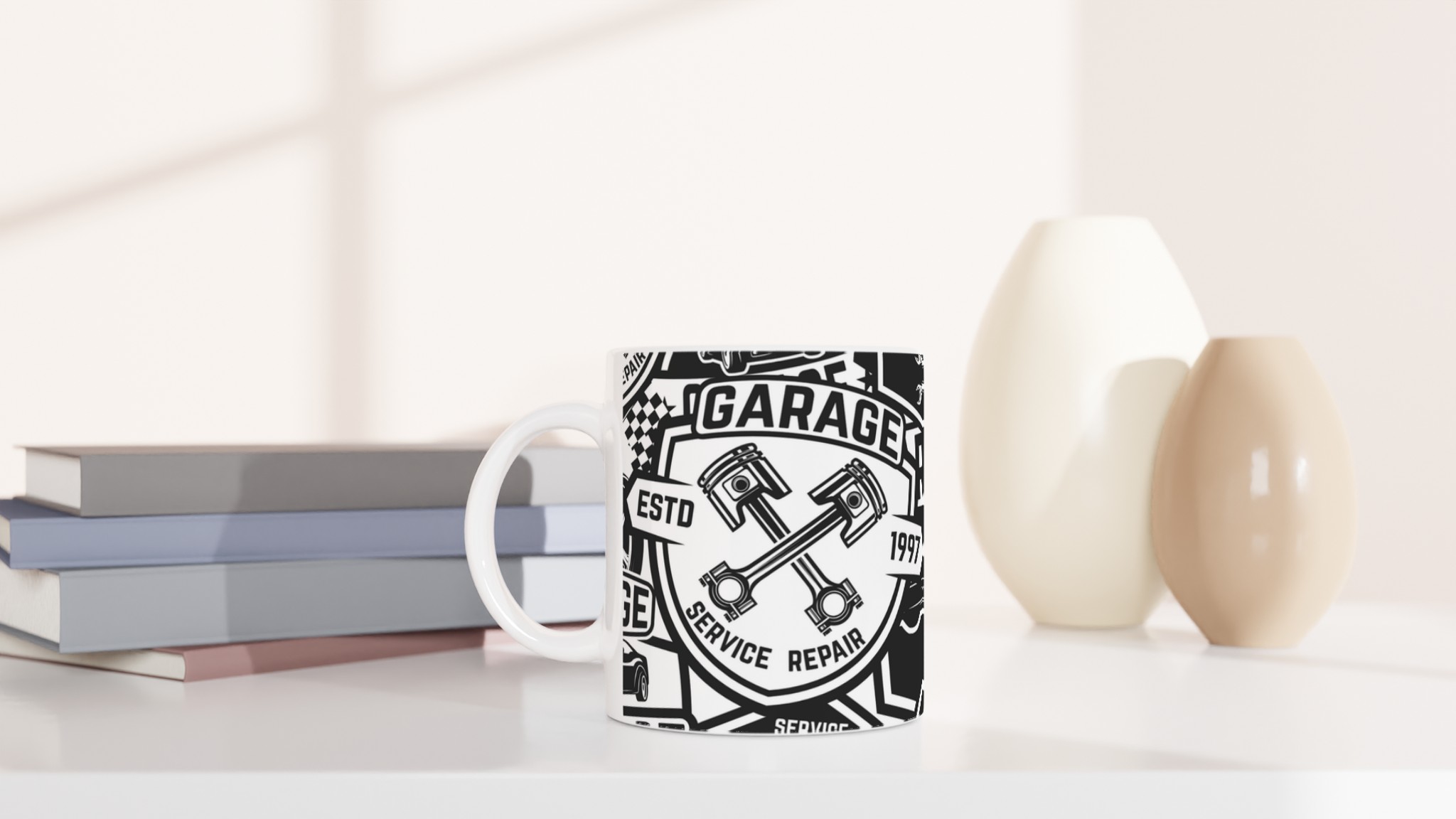 Denna robusta keramiska mugg är den ultimata hyllningen till alla bilälskare, mekaniker och motorhuvsentusiaster. Med sitt coola, svartvita garage-tema, fyllt med verktyg, bildelar och sportbilar, blir den snabbt en favorit för morgonkaffet, kvällens varma choklad eller när du bara vill njuta av en kopp te medan du drömmer om nästa projekt. Den blanka ytan framhäver trycken med klara och levande färger som håller sig fina, även efter många turer i mikron och diskmaskinen – precis som en klassisk bil, byggd för att hålla.