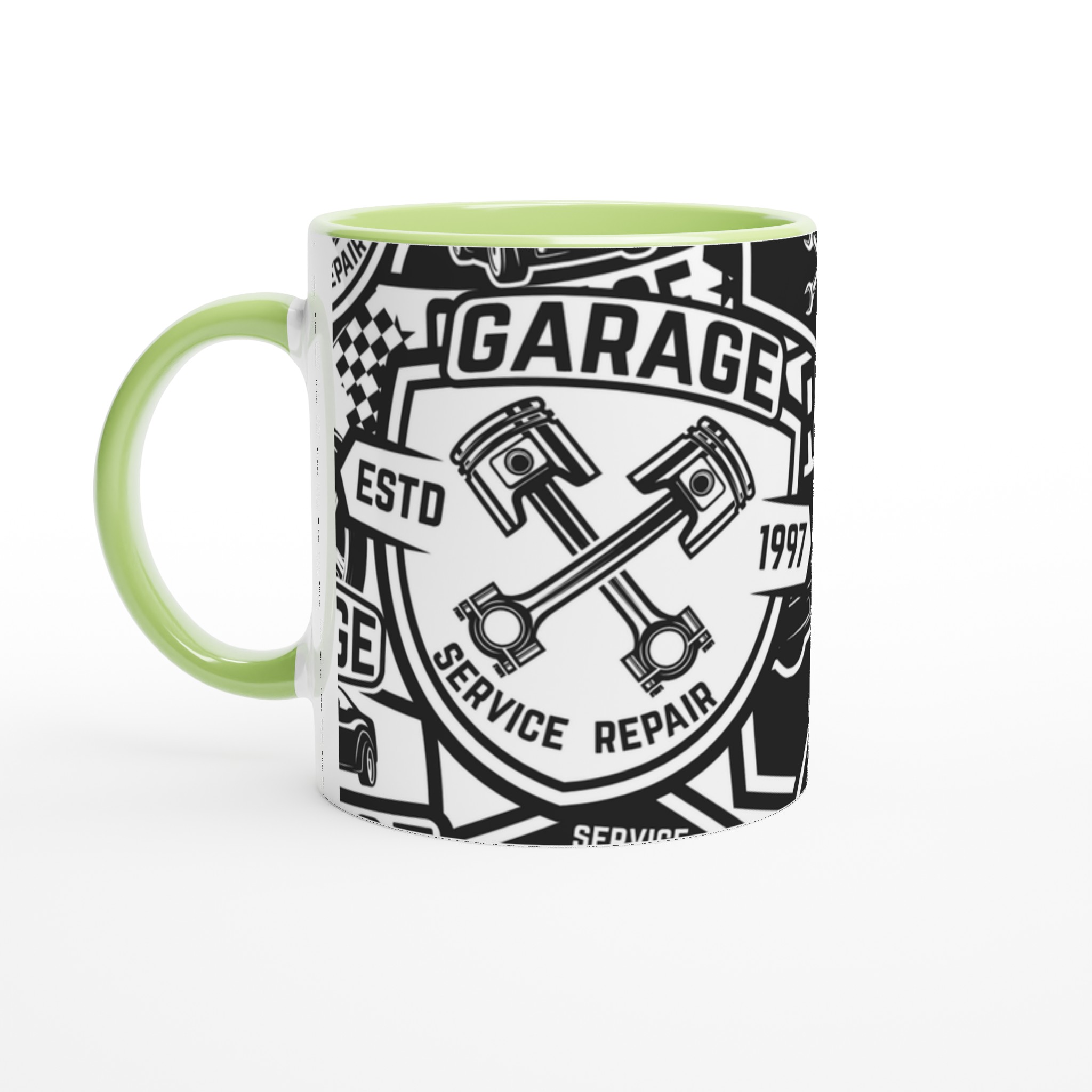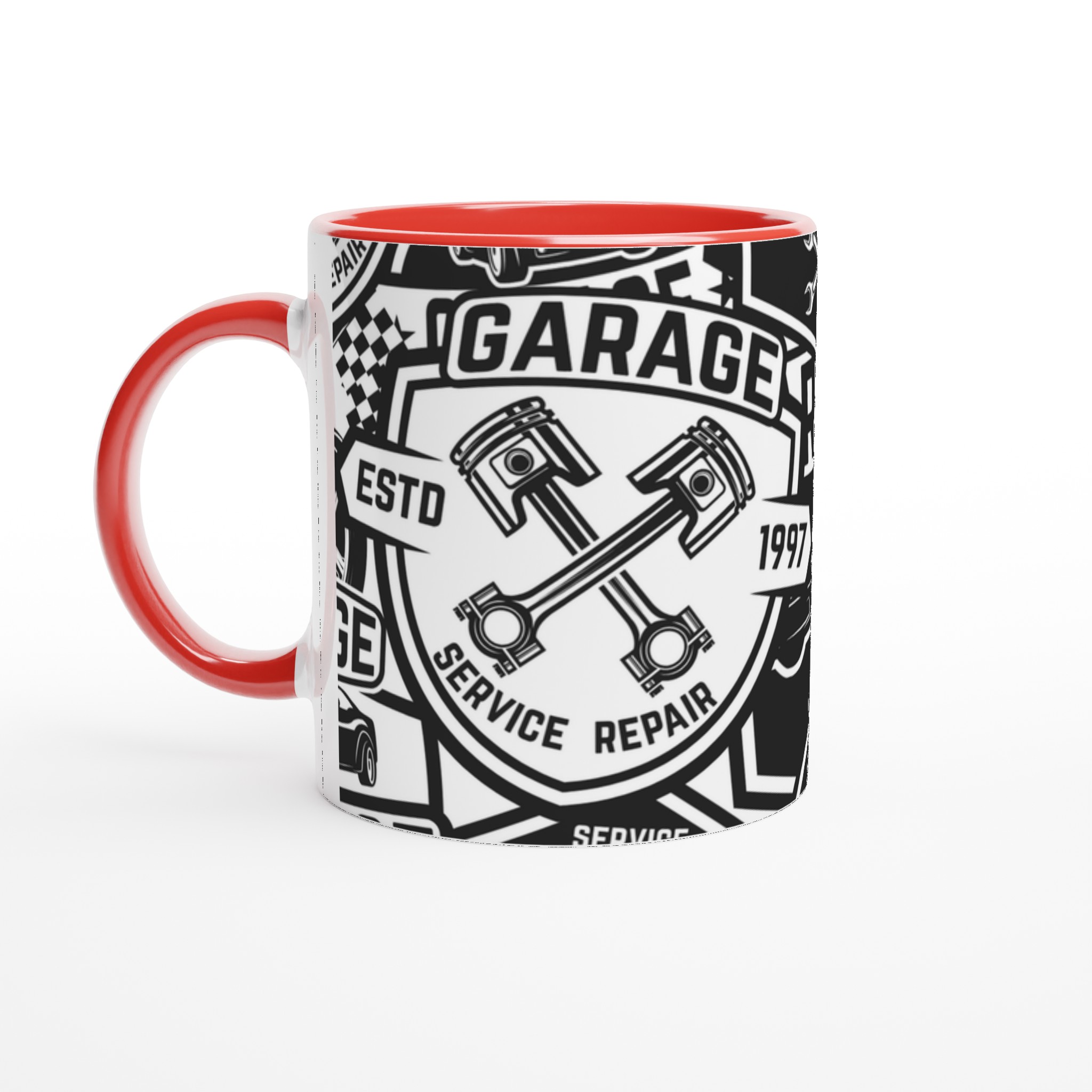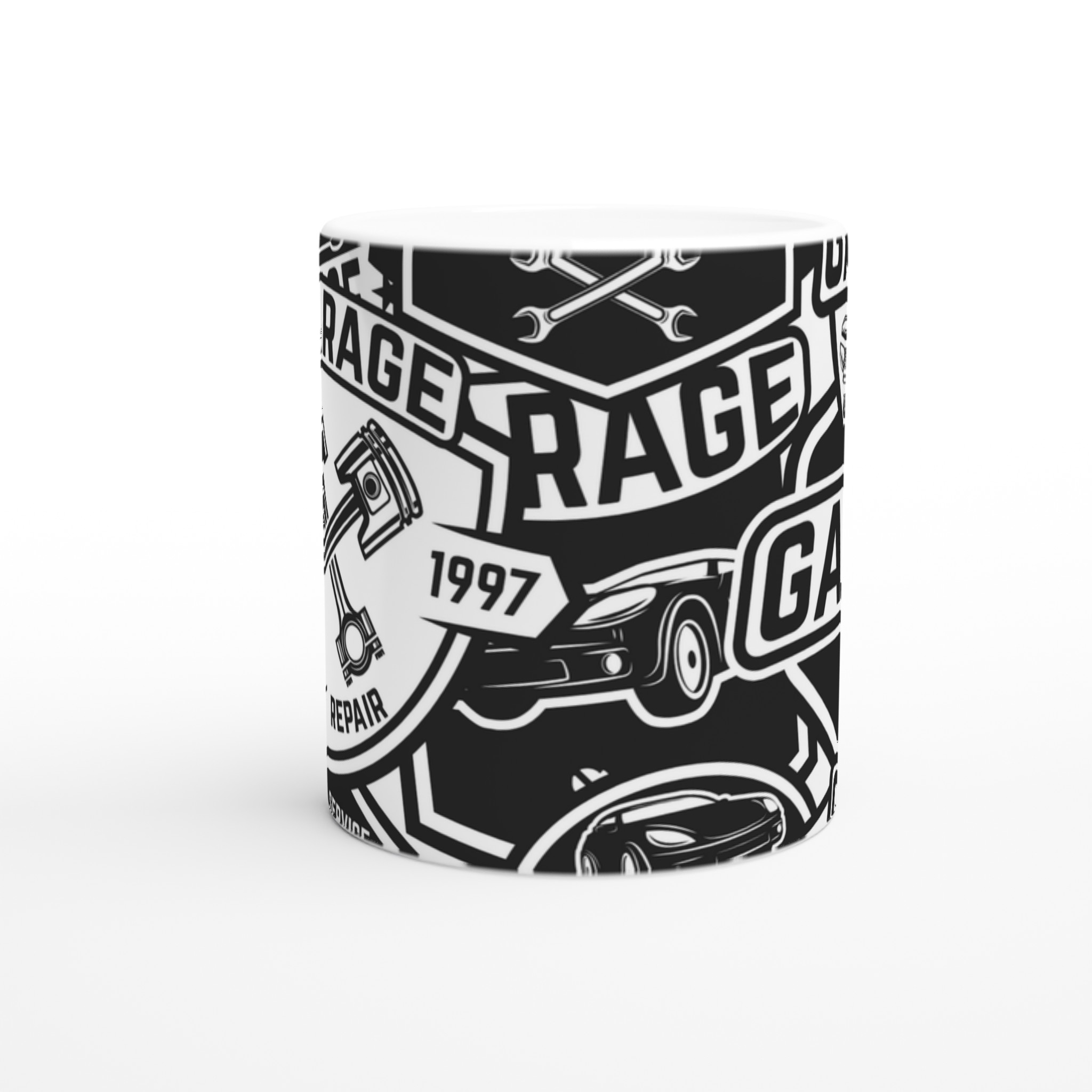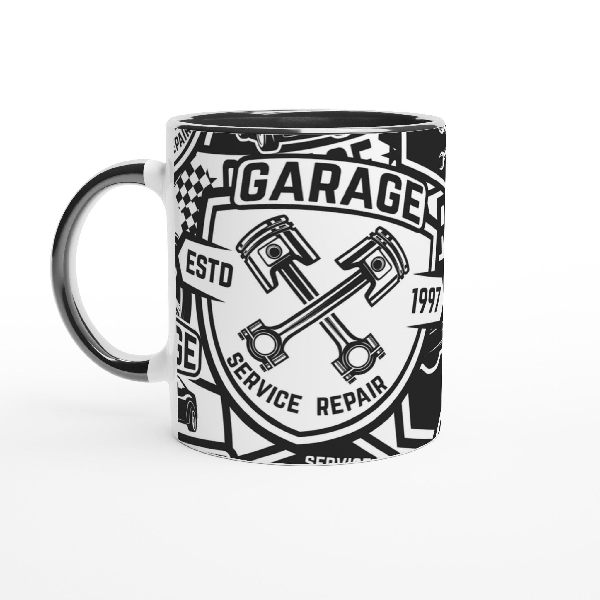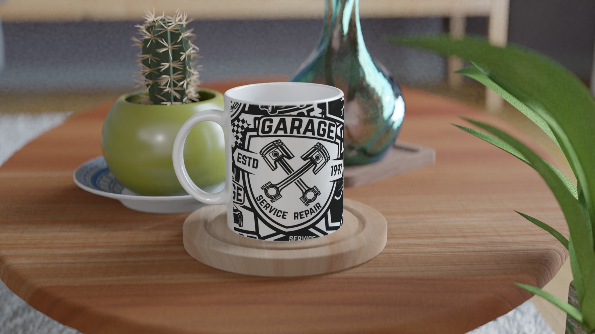 Denna robusta keramiska mugg är den ultimata hyllningen till alla bilälskare, mekaniker och motorhuvsentusiaster. Med sitt coola, svartvita garage-tema, fyllt med verktyg, bildelar och sportbilar, blir den snabbt en favorit för morgonkaffet, kvällens varma choklad eller när du bara vill njuta av en kopp te medan du drömmer om nästa projekt. Den blanka ytan framhäver trycken med klara och levande färger som håller sig fina, även efter många turer i mikron och diskmaskinen – precis som en klassisk bil, byggd för att hålla.