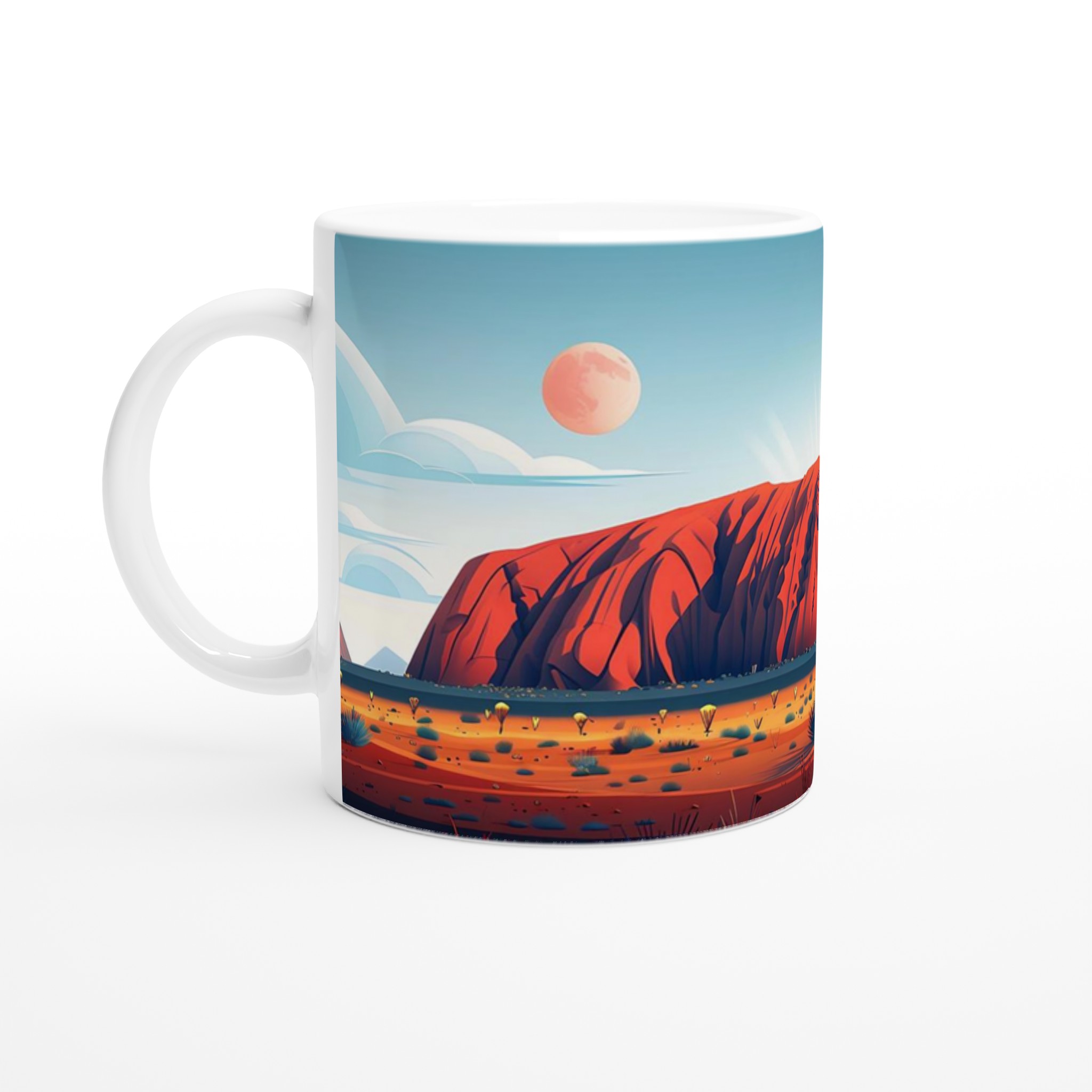 Inspirerad av den lugna skönheten i en minimalistisk ökenvy, med dess mjuka linjer och varma, inbjudande färger, fångar denna mugg essensen av stillhet och modern design. Den blanka ytan ger ett skarpt och levande tryck, oavsett om det är en personlig design, ett roligt citat eller en present till någon du tycker om.