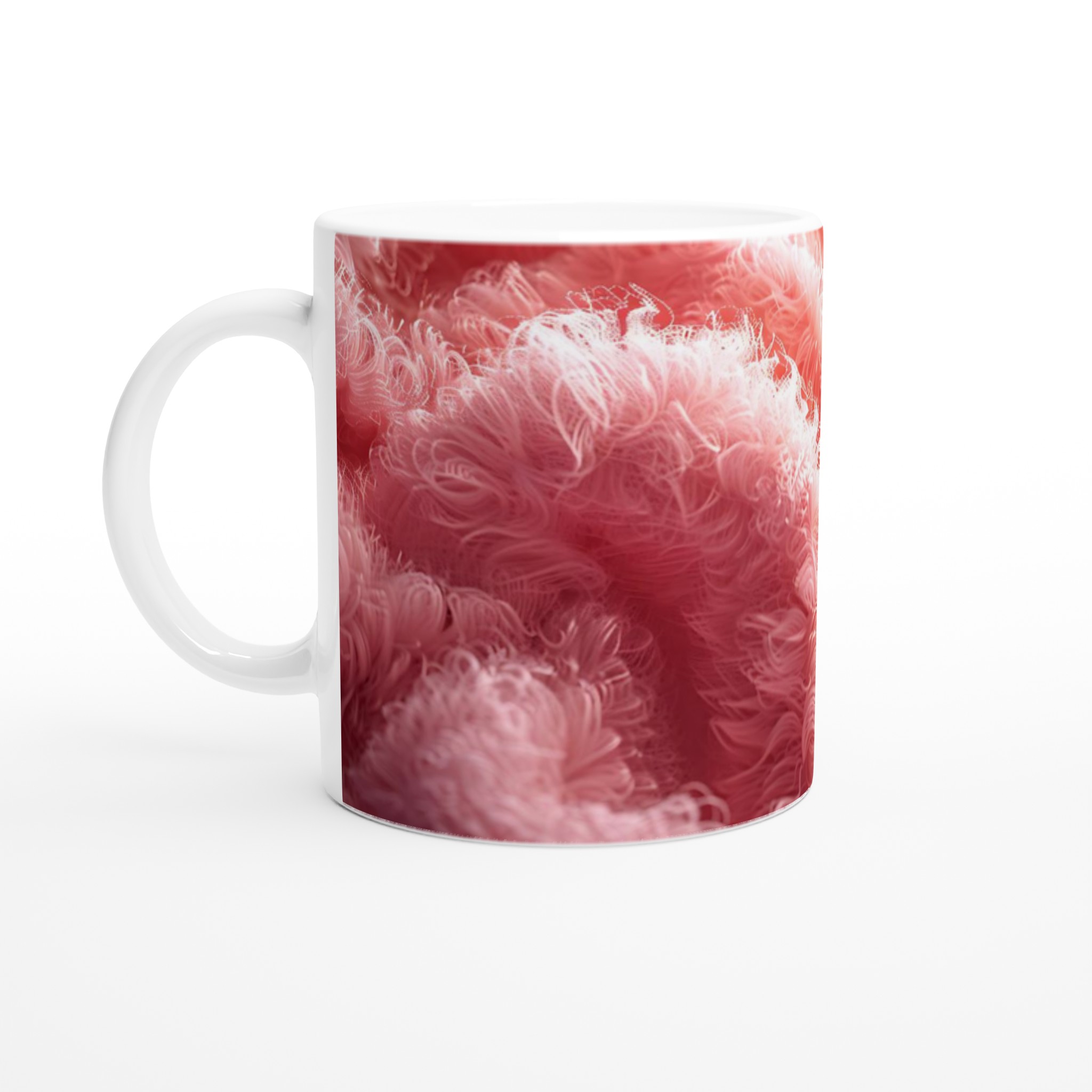 Föreställ dig den mjuka, nästan taktil känslan av ett fluffigt moln, fångad i designen av din dagliga kaffemugg. Denna mugg för tankarna till en drömlik makrotextur i lugnande rosa nyanser, vilket gör varje klunk till en sinnlig upplevelse. Oavsett om du vill ha en personlig design, ett inspirerande citat eller den perfekta presenten, garanterar den blanka ytan ett skarpt och levande tryck som verkligen sticker ut.