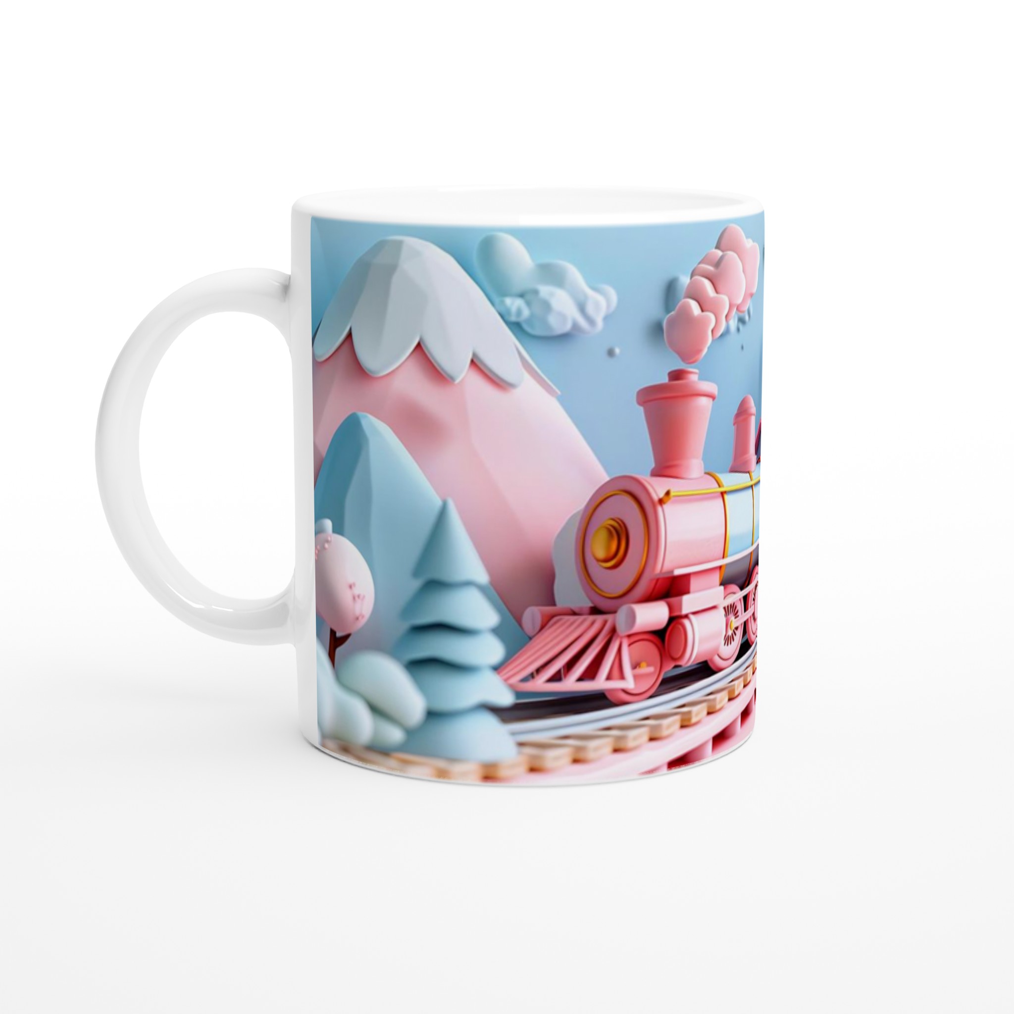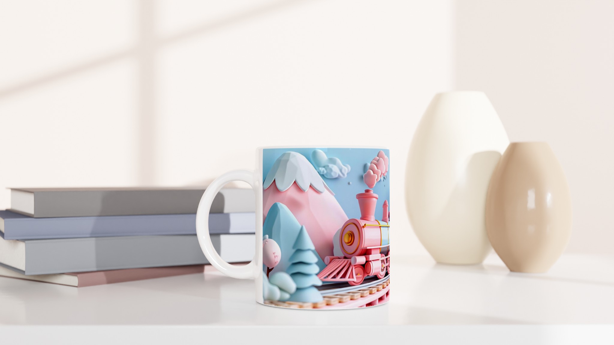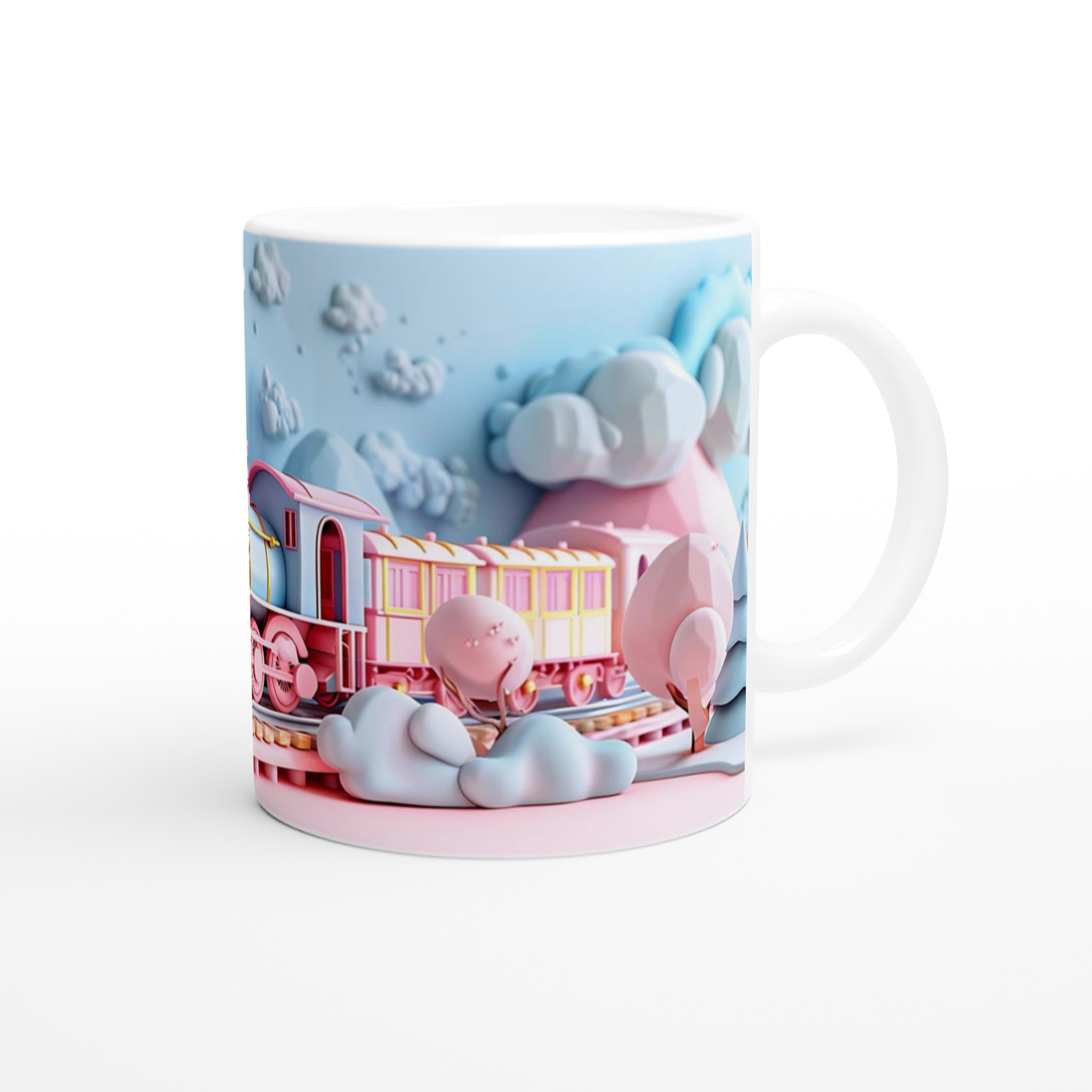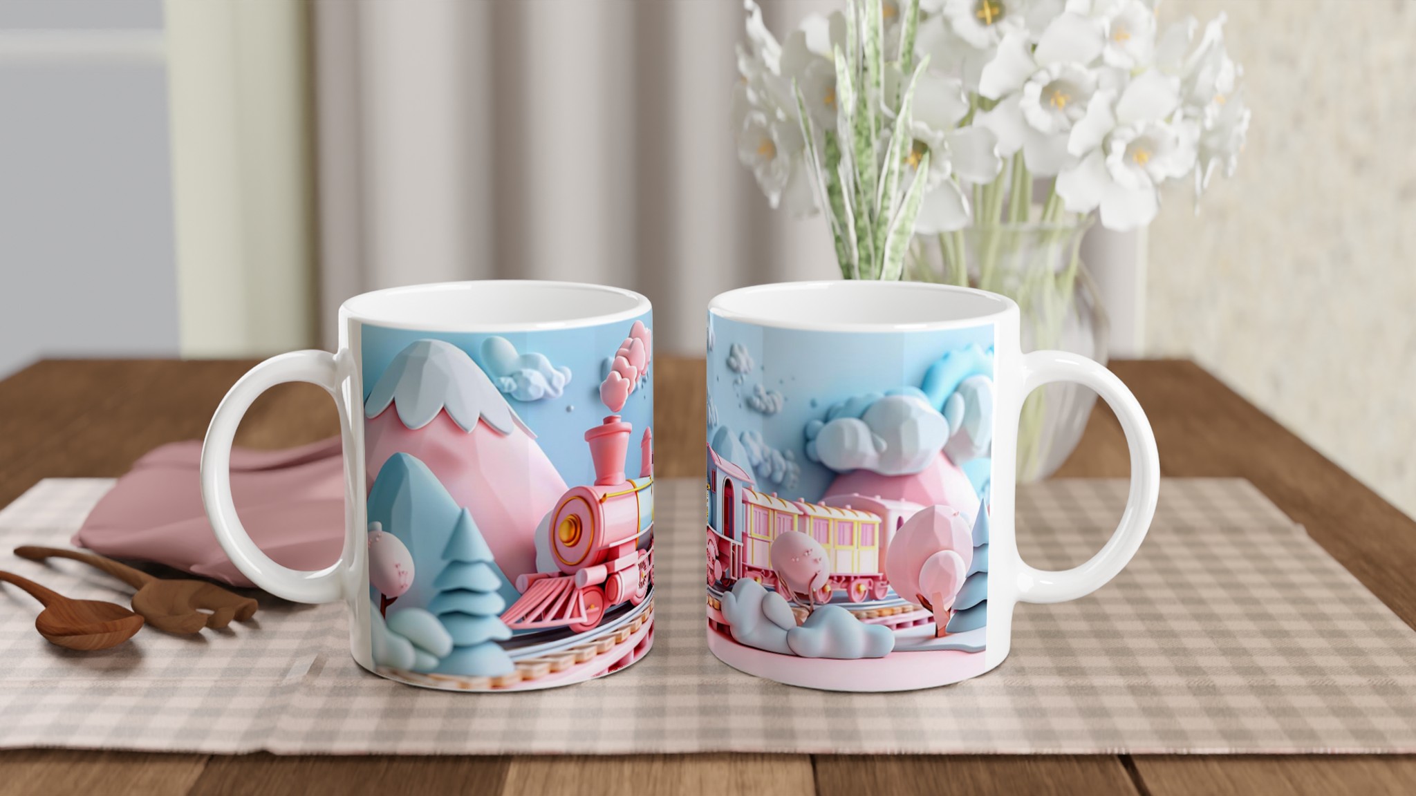 Fånga magin från barndomens drömmar med vår ”Mjuk Pastelldröm” keramiska mugg. Den här stilrena muggen, inspirerad av fantasifulla landskap i sockersöta pastelltoner, blir snabbt en vardagsfavorit. Perfekt för morgonkaffet, kvällens varma choklad eller när du bara vill njuta av en kopp te. Den blanka ytan gör att trycken framhävs med klara och levande färger, som håller sig fina även efter många turer i mikron och diskmaskinen.