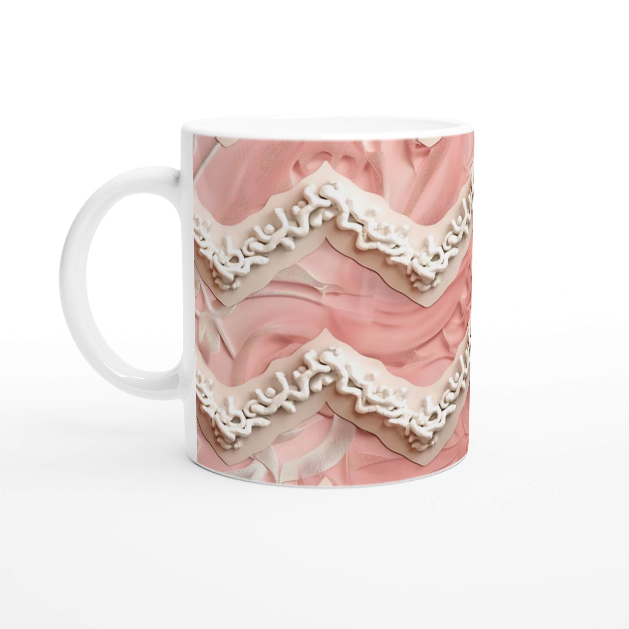 Inspirerad av mjuka vågor och en lugnande rosa palett, erbjuder denna mugg en touch av subtil elegans. Den blanka vita ytan ger ett skarpt och levande tryck som verkligen sticker ut, oavsett om det är en personlig design, ett roligt citat eller en present till någon du tycker om.