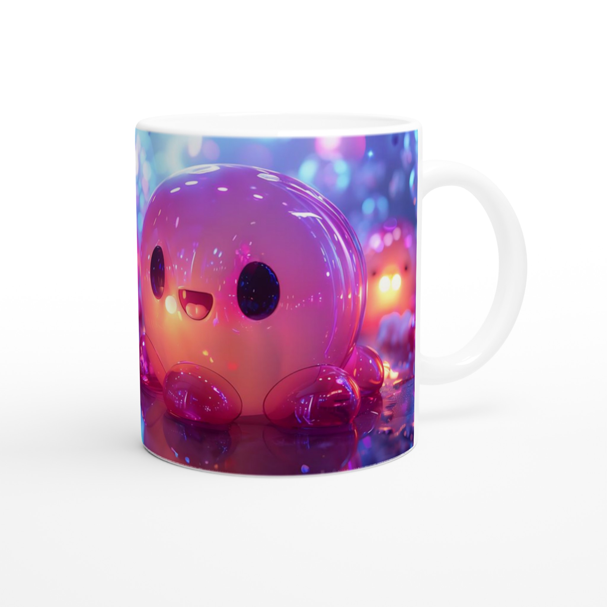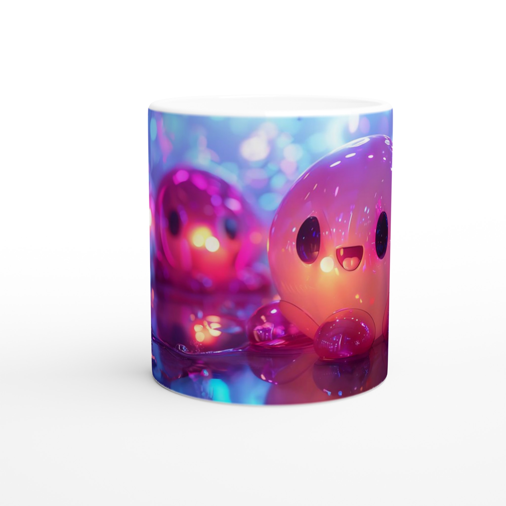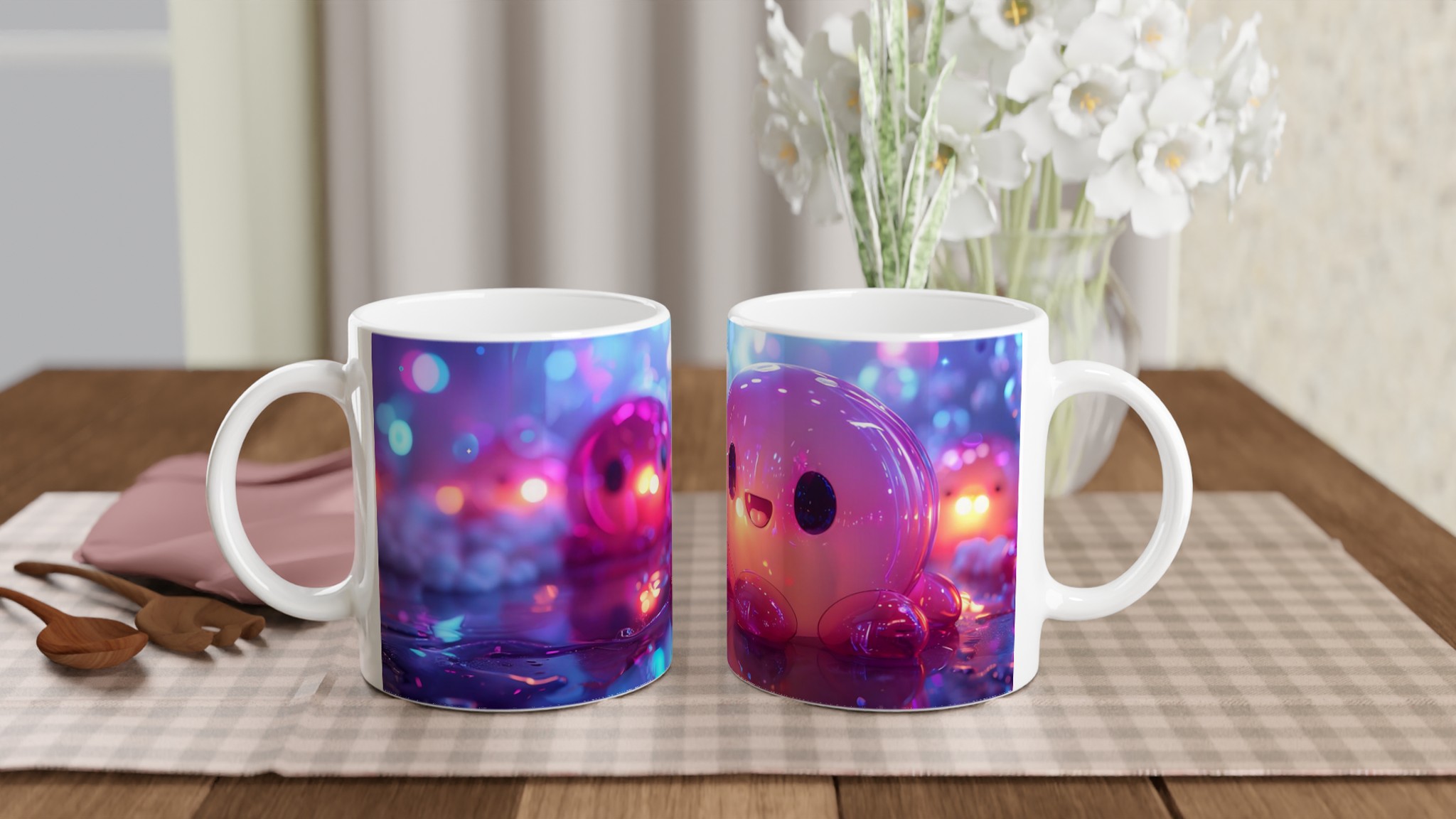 Lys upp din dag med vår mjukglänsande keramiska mugg, en omedelbar favorit för alla tillfällen. Inspirerad av bilden, skapar den lekfulla och nästan godisaktiga lystern en känsla av glädje och munterhet. Perfekt för morgonkaffet, kvällens varma choklad eller när du bara vill njuta av en kopp te i en mugg som får dig att le. Den blanka ytan framhäver trycken med klara och levande färger, som håller sig fina även efter många turer i mikron och diskmaskinen.