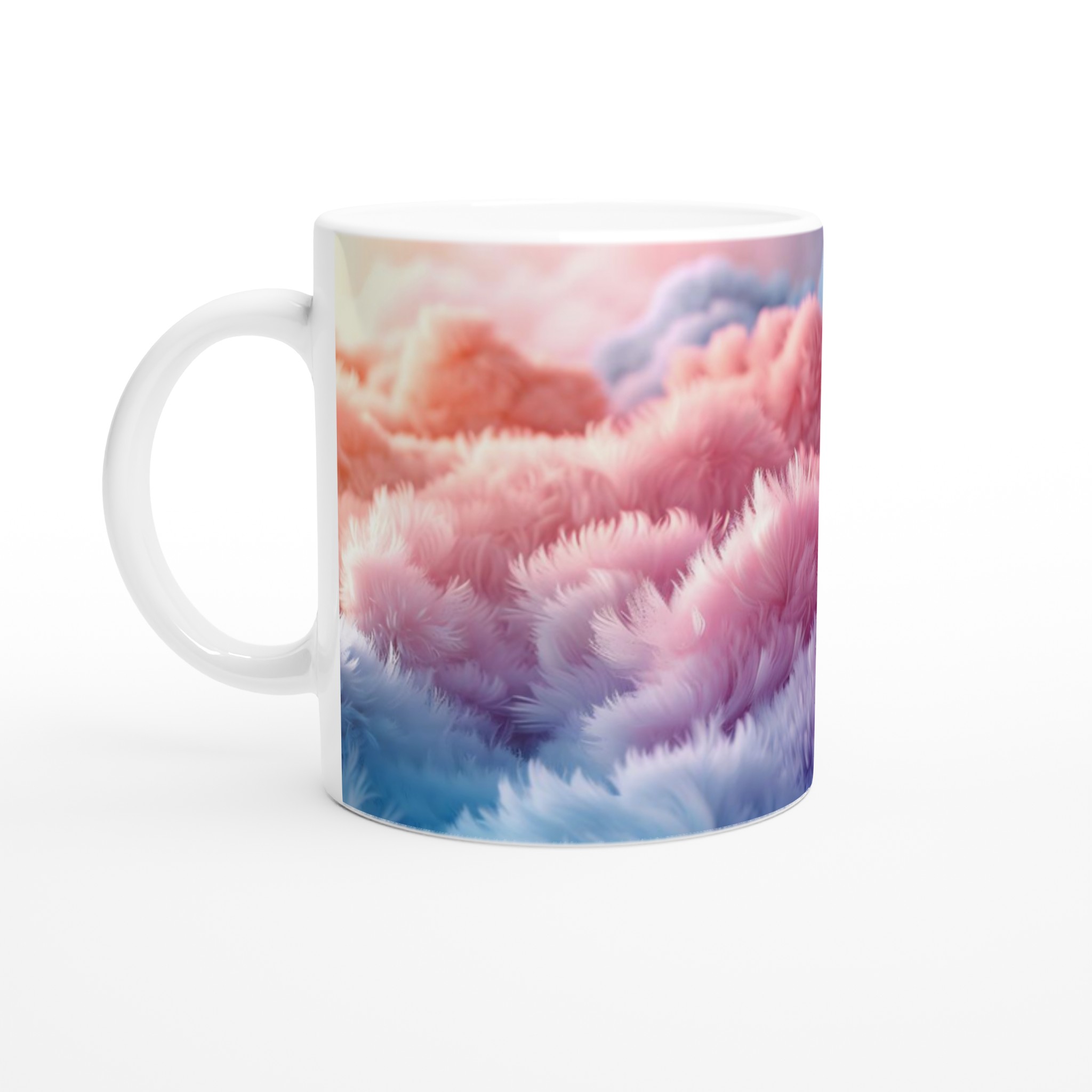 Inspirerad av den mjuka, drömska färgpaletten av rosa och blå moln, är denna mugg mer än bara en dryckesbehållare; den är en inbjudan till en stunds avkoppling. Den blanka vita ytan ger ett skarpt och levande tryck som verkligen sticker ut, oavsett om det är en personlig design, ett roligt citat eller en present till någon du tycker om.