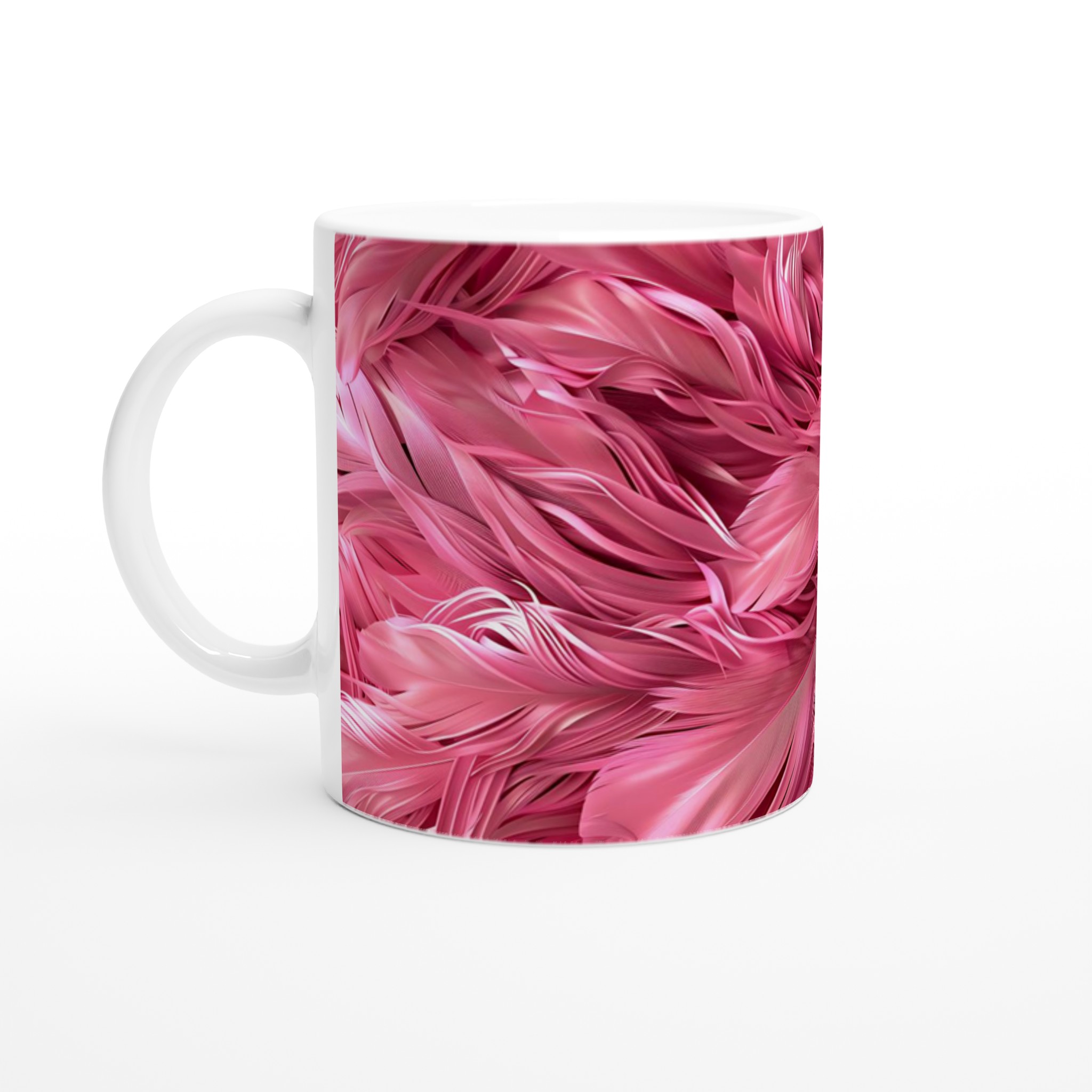 Inspirerad av den mjuka och lyxiga känslan av böljande rosa fjädrar, framkallar denna mugg en känsla av lugn och elegans. Den blanka vita ytan ger ett skarpt och levande tryck som verkligen sticker ut, oavsett om det är en personlig design, ett roligt citat eller en present till någon du tycker om.