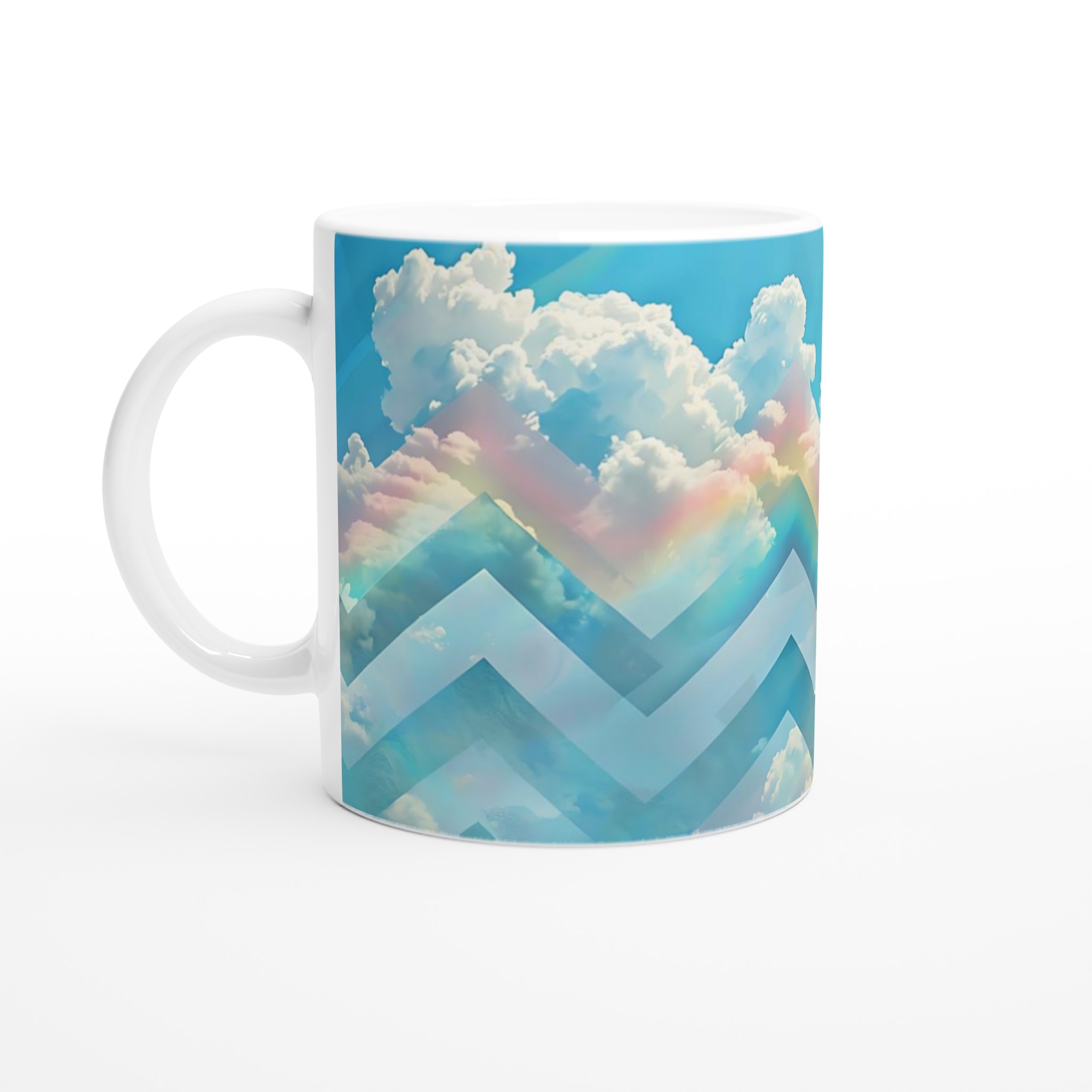 Inspirerad av lugnet hos ett drömskt molnlandskap med subtila regnbågsfärger, ger denna mugg en känsla av lugn och inspiration till din dag. Den blanka vita ytan ger ett skarpt och levande tryck som verkligen sticker ut, oavsett om det är en personlig design, ett roligt citat eller en present till någon du tycker om.