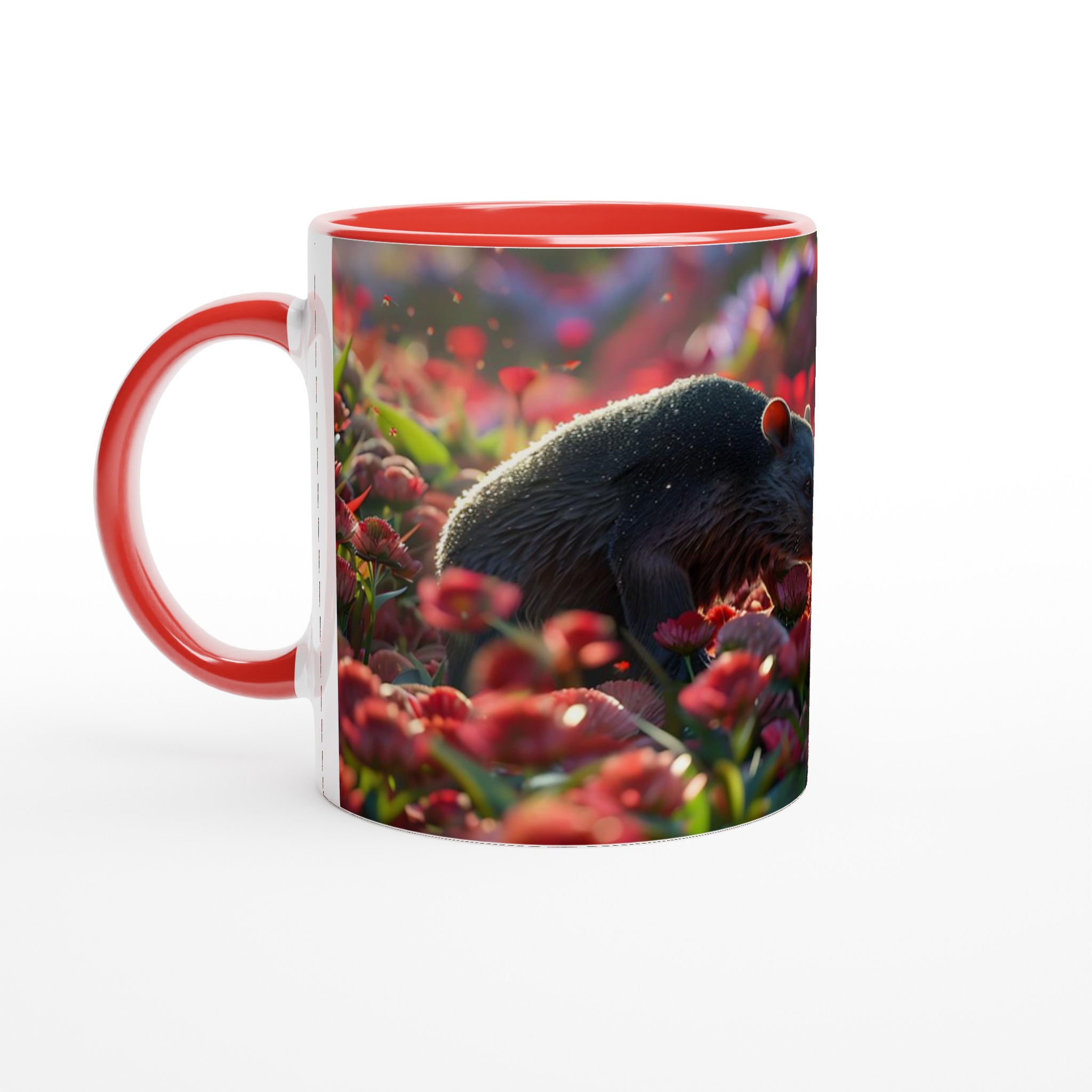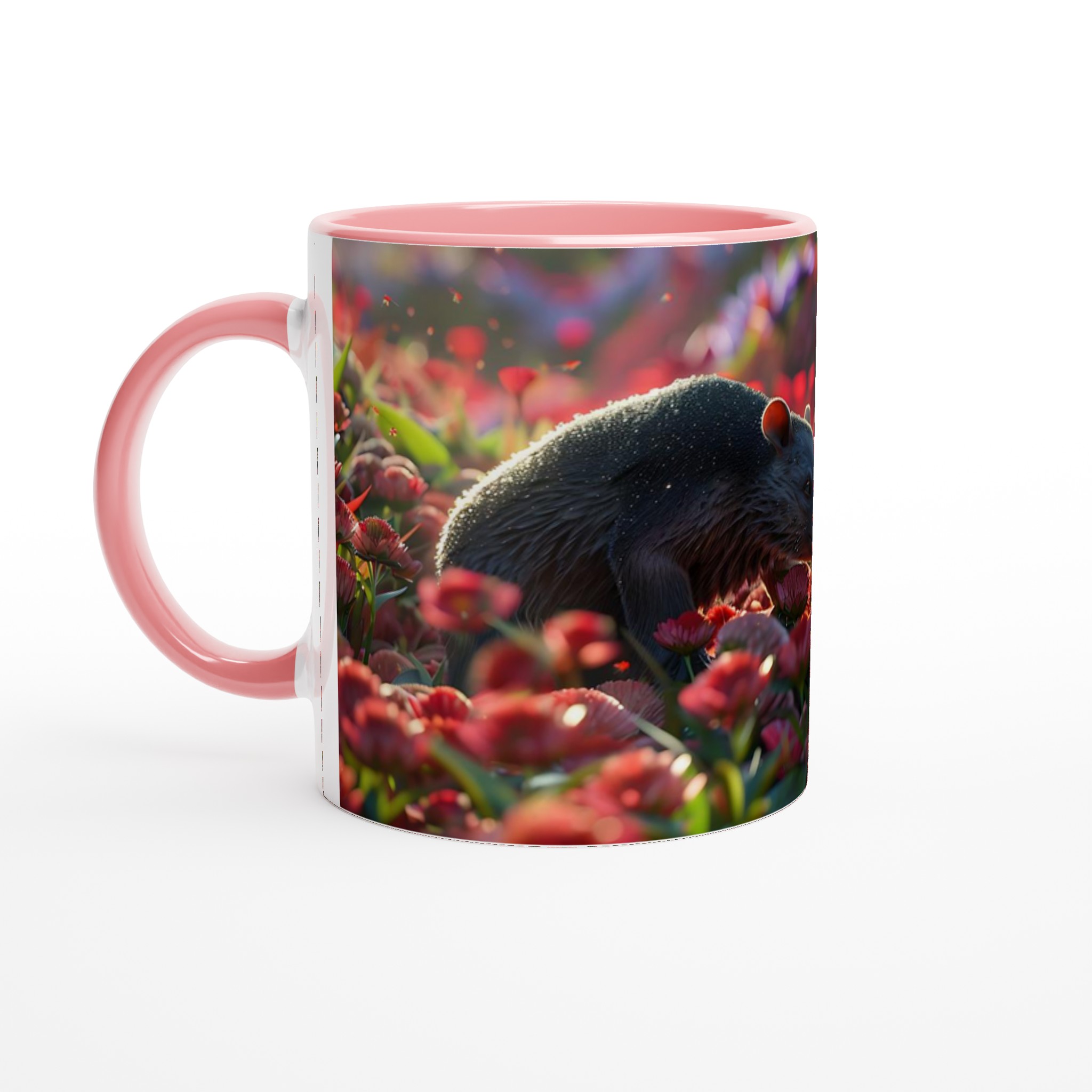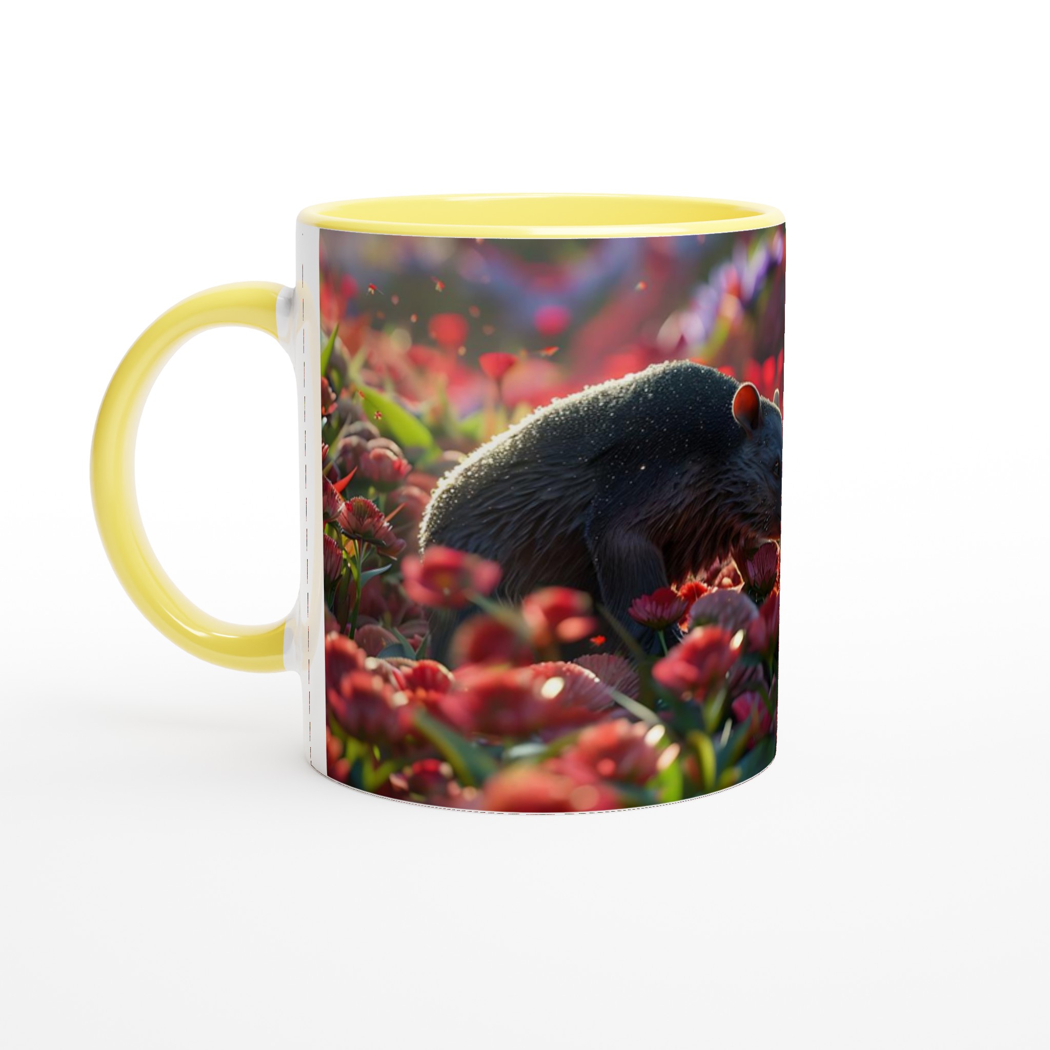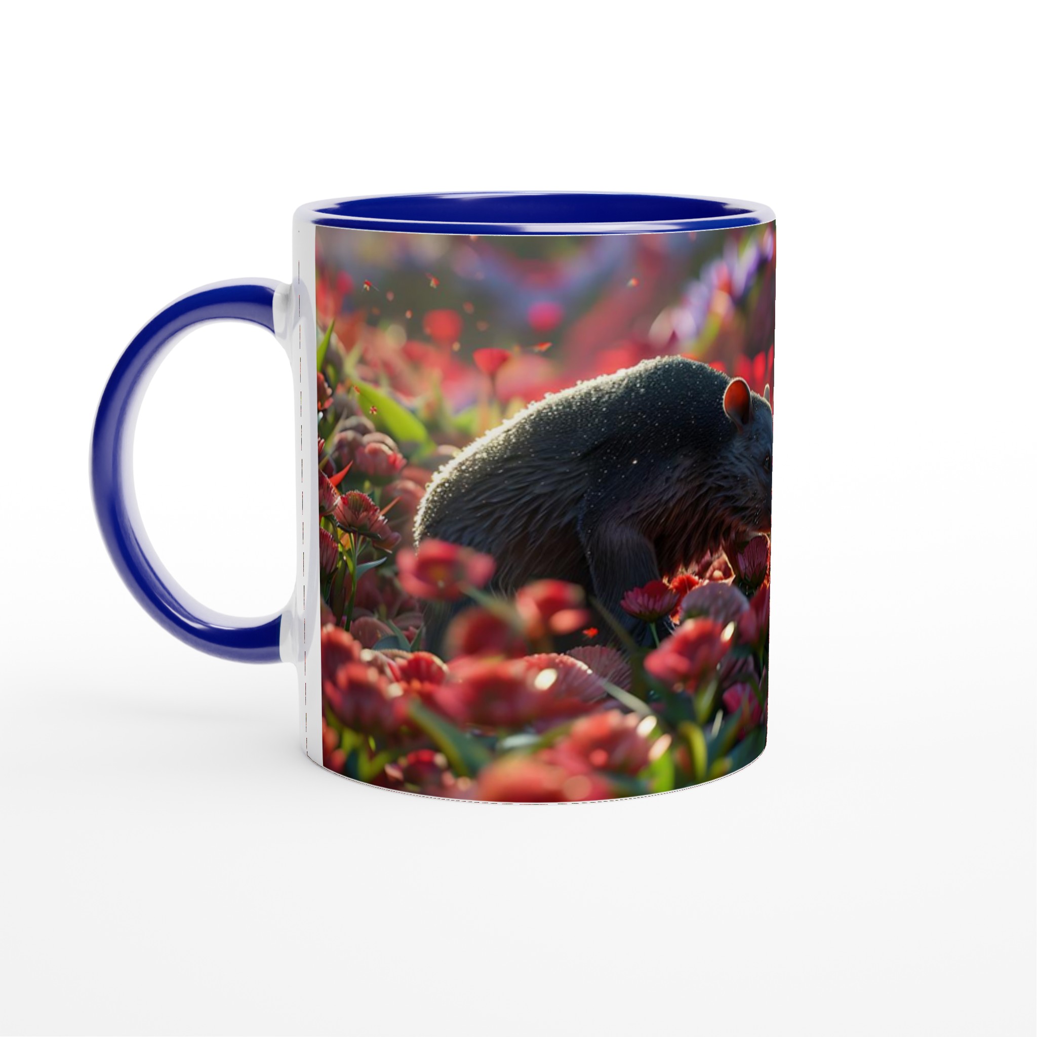 Föreställ dig en lugn morgon, när daggen glimmar och naturen vaknar till liv. Vår ”Morgondagg” keramikmugg fångar den känslan med sitt levande och drömska motiv av en liten tapir bland daggfriska blommor, insekter och en blommande äng i fantastiska, dämpade färger. Den här stilrena keramiska muggen blir snabbt en vardagsfavorit. Perfekt för morgonkaffet, kvällens varma choklad eller när du bara vill njuta av en kopp te. Den blanka ytan framhäver trycken med klara och levande färger, som håller sig fina även efter många turer i mikron och diskmaskinen.