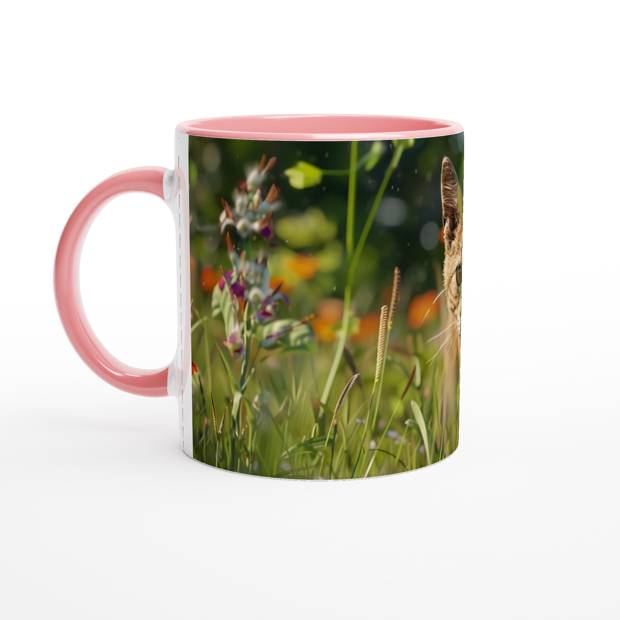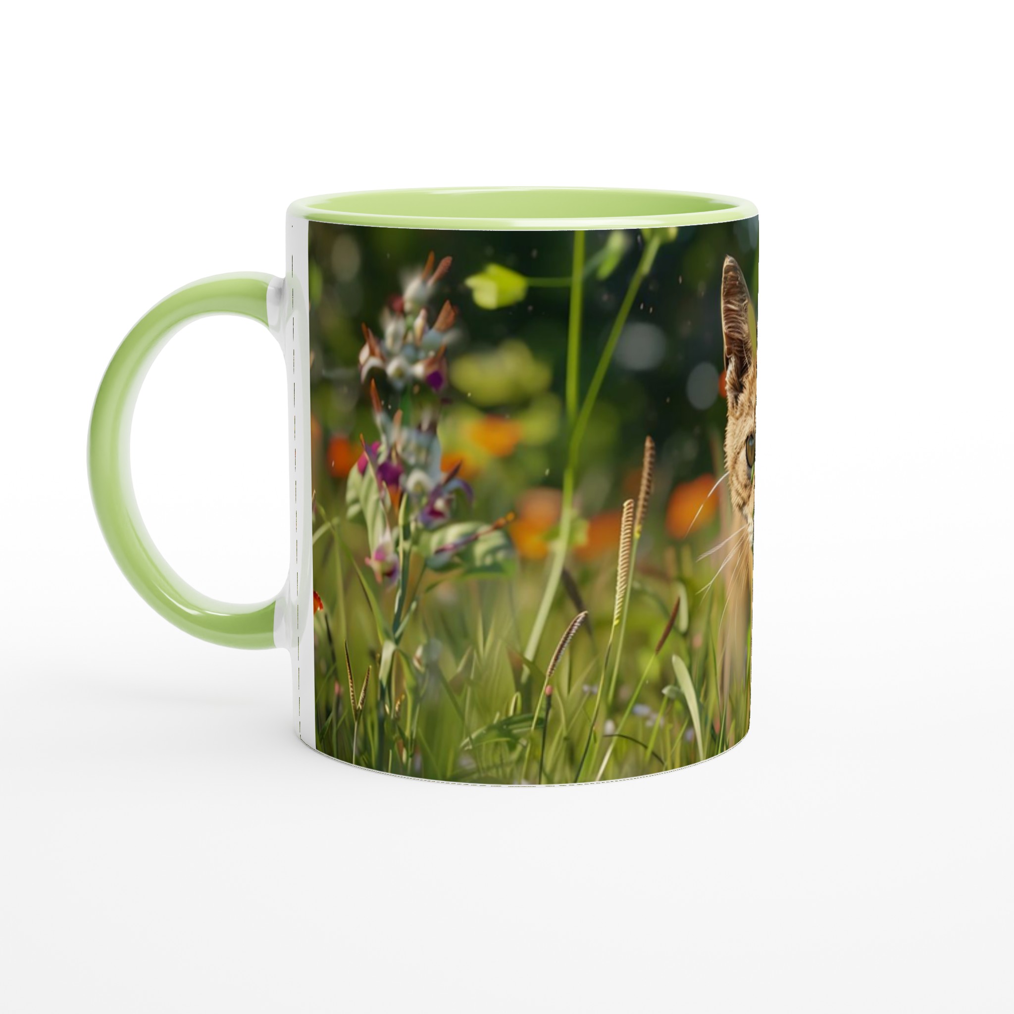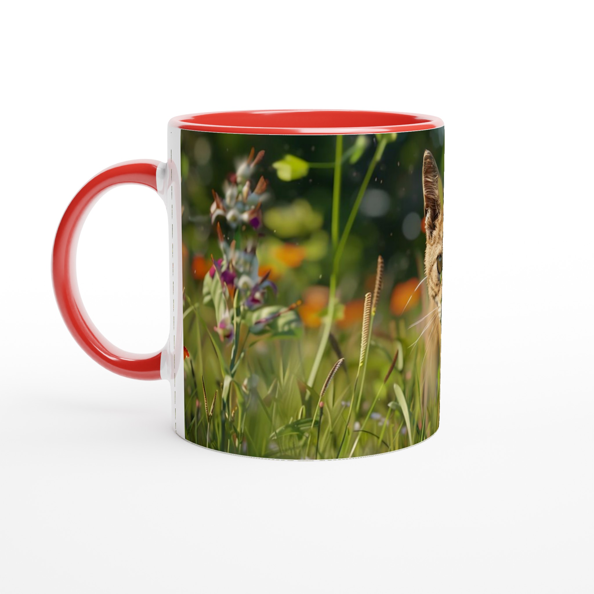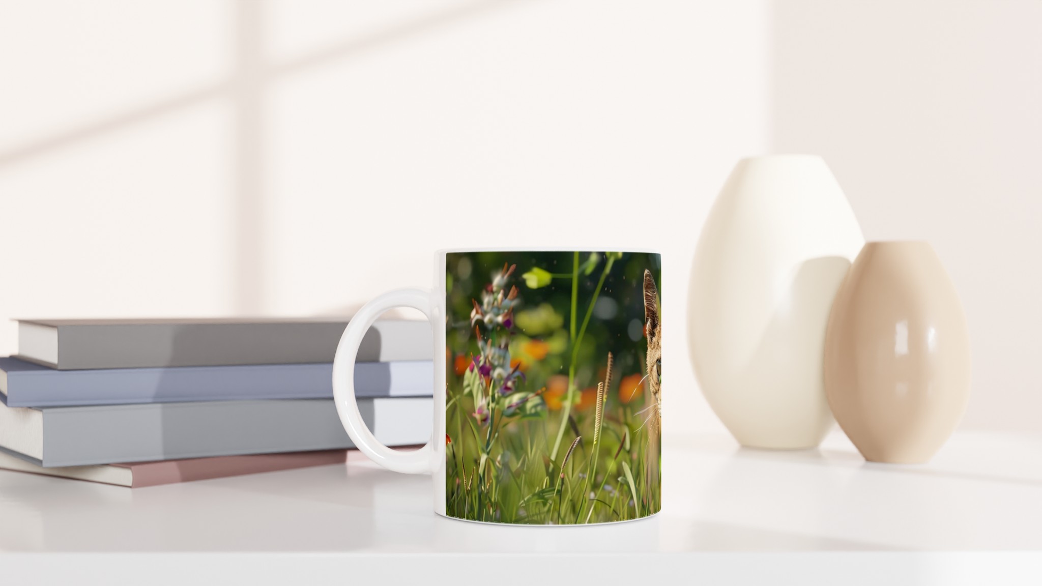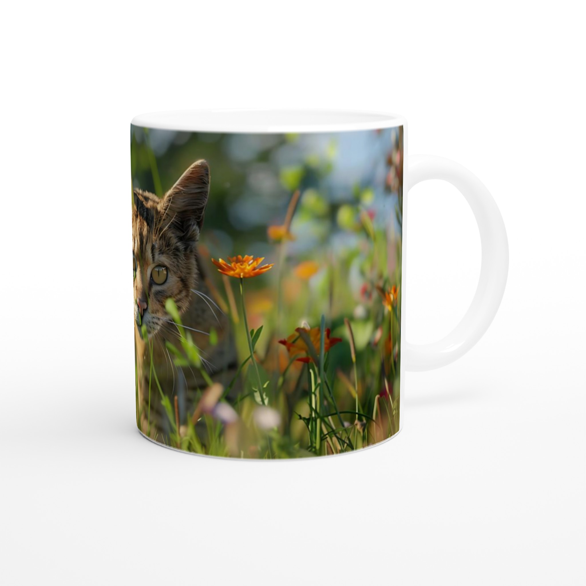 Föreställ dig att starta dagen med en värmande dryck i en mugg som fångar den lugna charmen hos en kattunge bland sommarblommor. Denna stilrena keramiska mugg blir snabbt en vardagsfavorit, perfekt för morgonkaffet, kvällens varma choklad eller när du bara vill njuta av en kopp te. Den blanka ytan lyfter fram den detaljrika bilden med klara och levande färger, som håller sig fina även efter många turer i mikron och diskmaskinen.