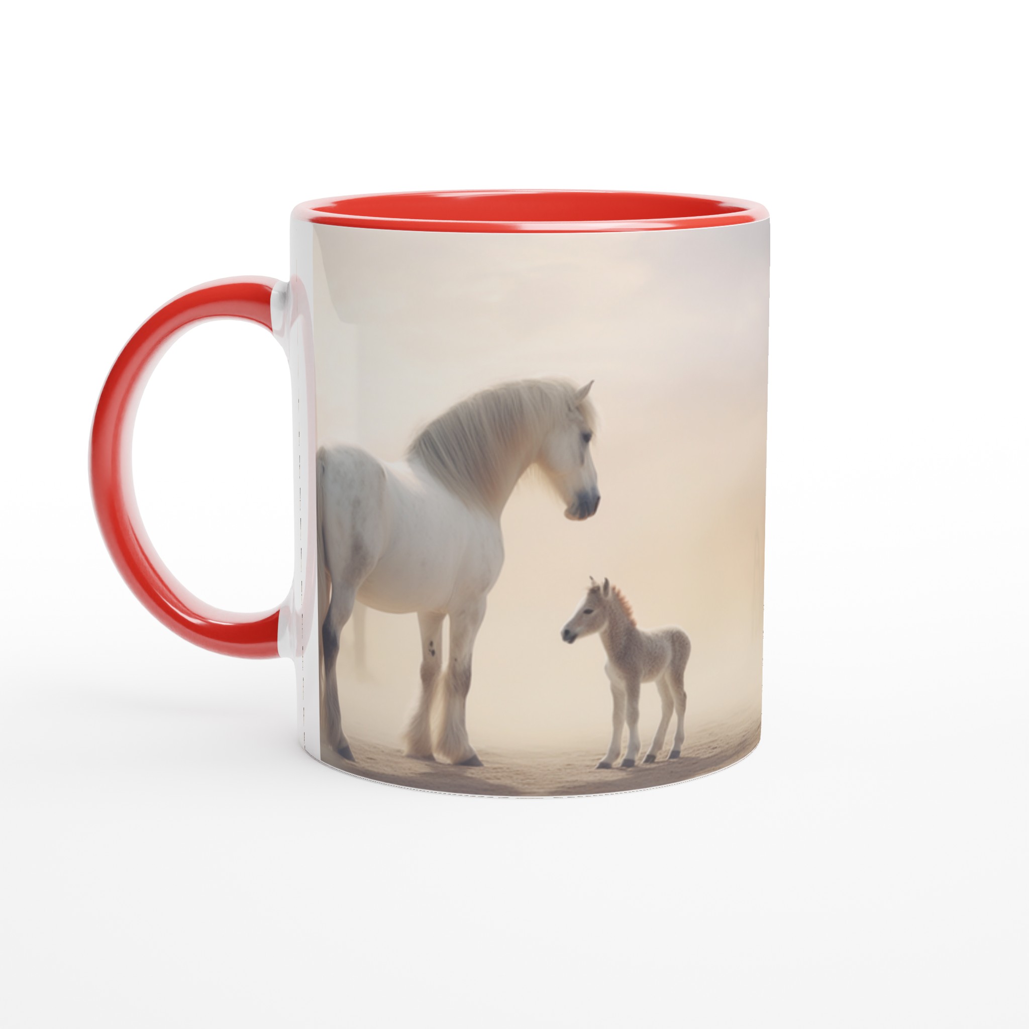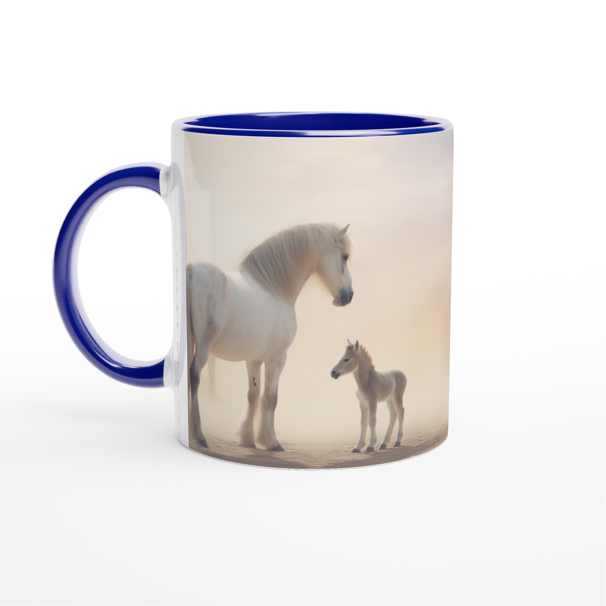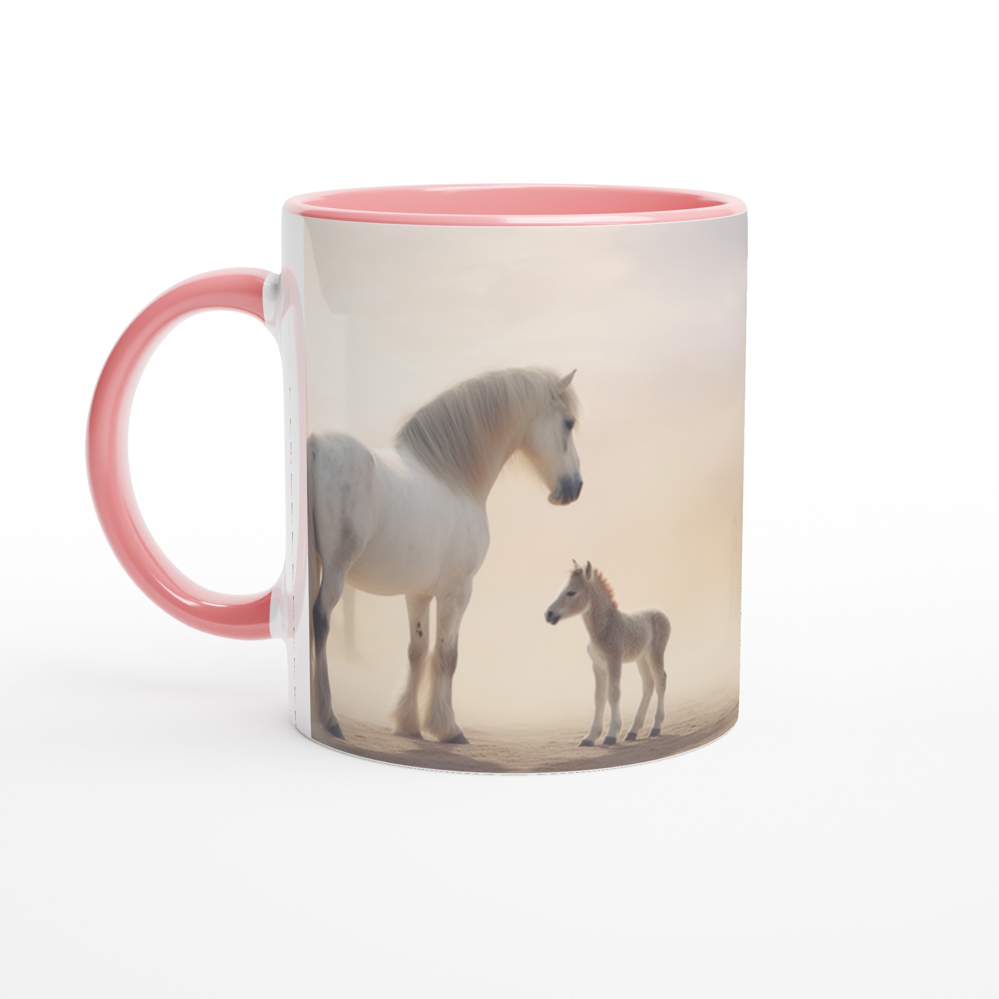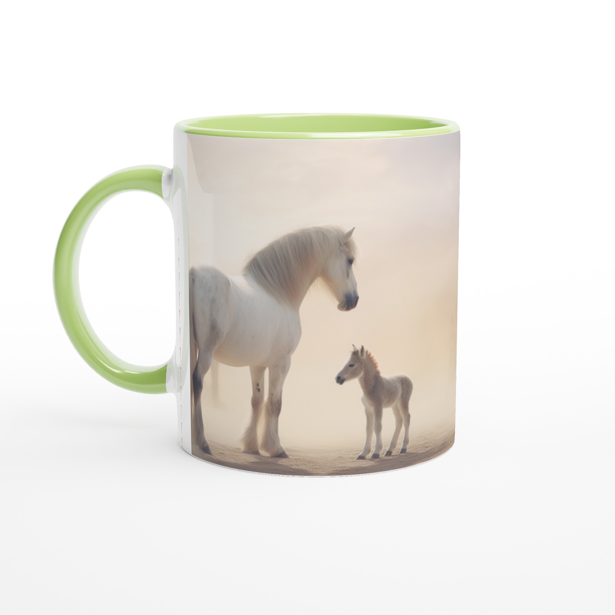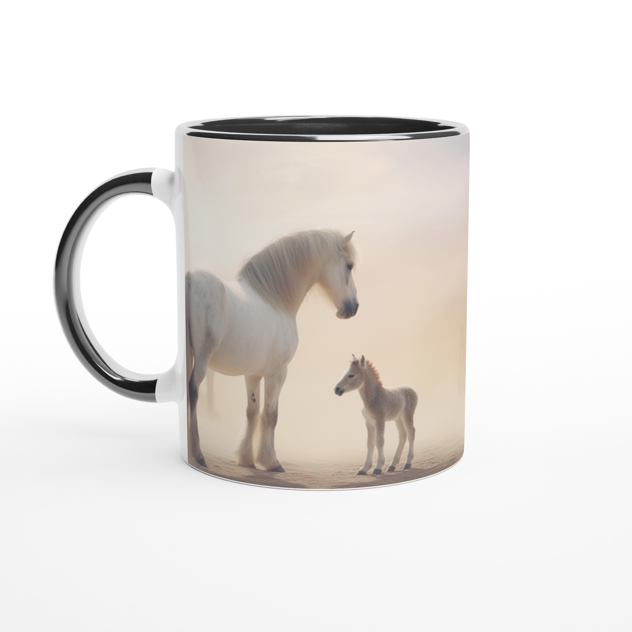 Gör denna mugg till din egen genom att välja bland en regnbåge av färger: Klassisk Ceramic White, solig Ceramic Yellow, charmig Ceramic Pink, lugnande Ceramic Green, passionerad Ceramic Red, elegant Ceramic Black eller djupblå Ceramic Blue. Varje färgval förstärker det vackra hästmotivet på sitt unika sätt. Välj din favoritfärg och beställ denna unika mugg idag för att addera en touch av magi till dina fikastunder!