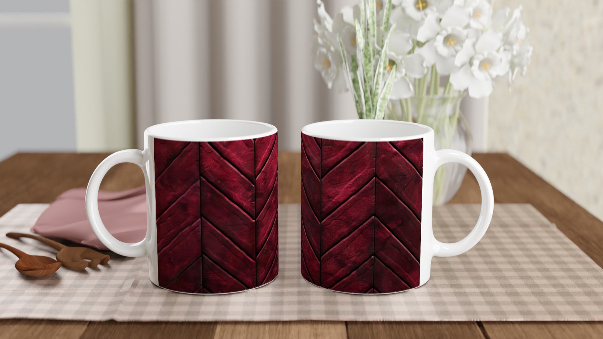 Fånga känslan av lyx och värme med denna djupt körsbärsröda keramikmugg. Inspirerad av en rik, matt textur med eleganta vinklar, ger den en sofistikerad touch till varje fikastund. Perfekt för morgonkaffet, en värmande kopp te eller en härlig varm choklad, blir denna mugg snabbt en favorit som lyfter din dag med sin unika karaktär.