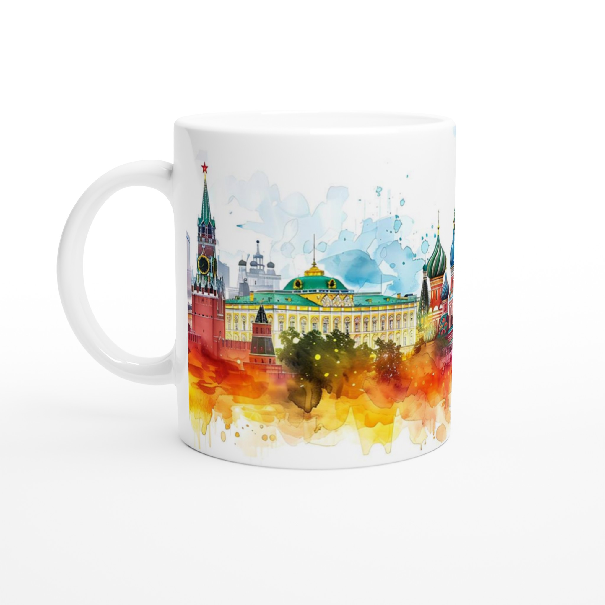 Denna förtrollande mugg fångar Moskvas ikoniska arkitektur i en explosion av akvarellfärger, från den gyllene värmen av solnedgången till den svala lugnet av blå skymning. Den blanka vita ytan ger ett skarpt och levande tryck som verkligen sticker ut, oavsett om det är en personlig design, ett roligt citat eller en present till någon du tycker om.