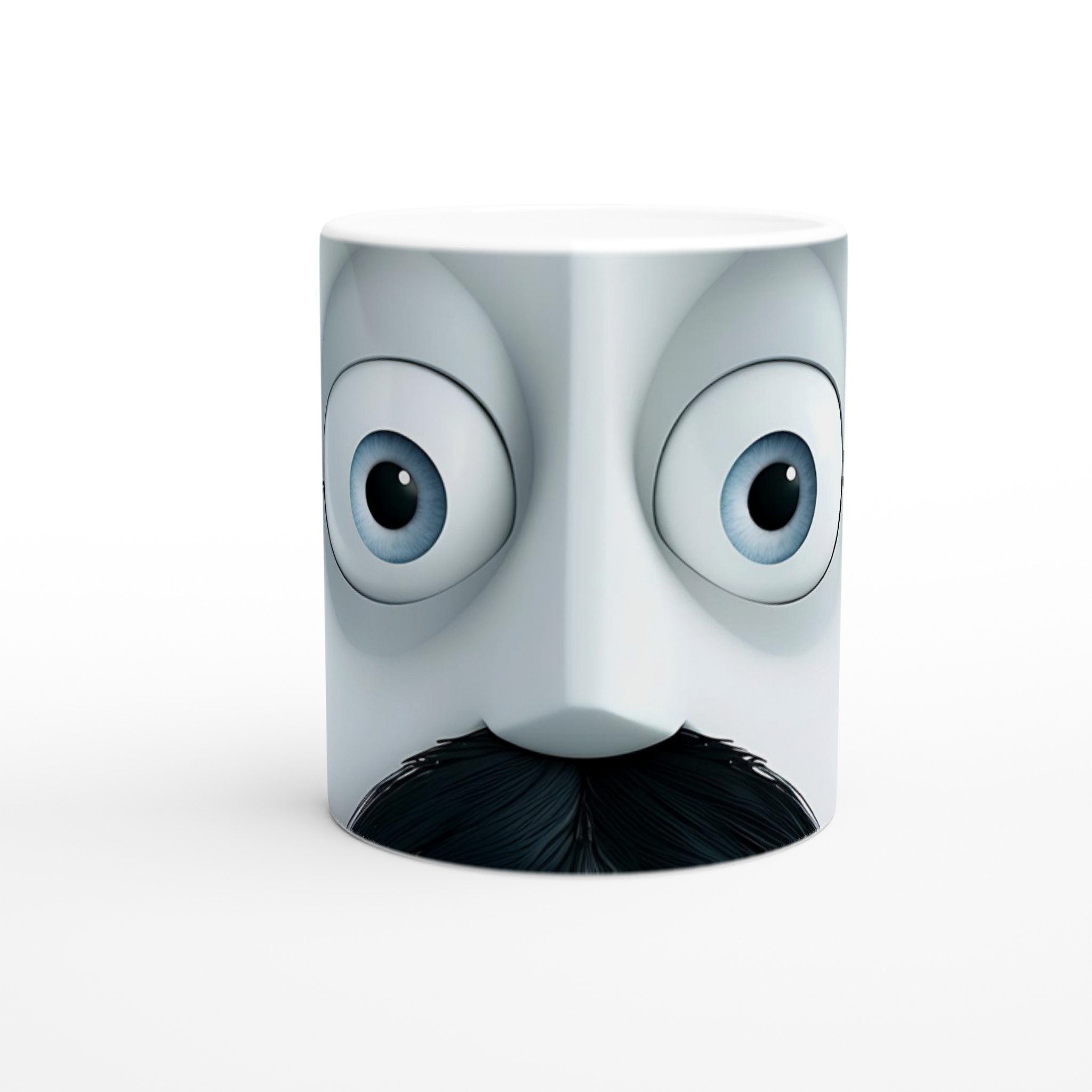 Denna charmiga mugg med ett humoristiskt ”Mr. Moustache”-ansikte är perfekt för att sprida glädje varje morgon. Med sina stora blå ögon och eleganta svarta mustasch ger den varje dryck en touch av personlighet. Den blanka vita ytan ger ett skarpt och levande tryck som verkligen sticker ut, oavsett om det är en personlig design, ett roligt citat eller en present till någon du tycker om.