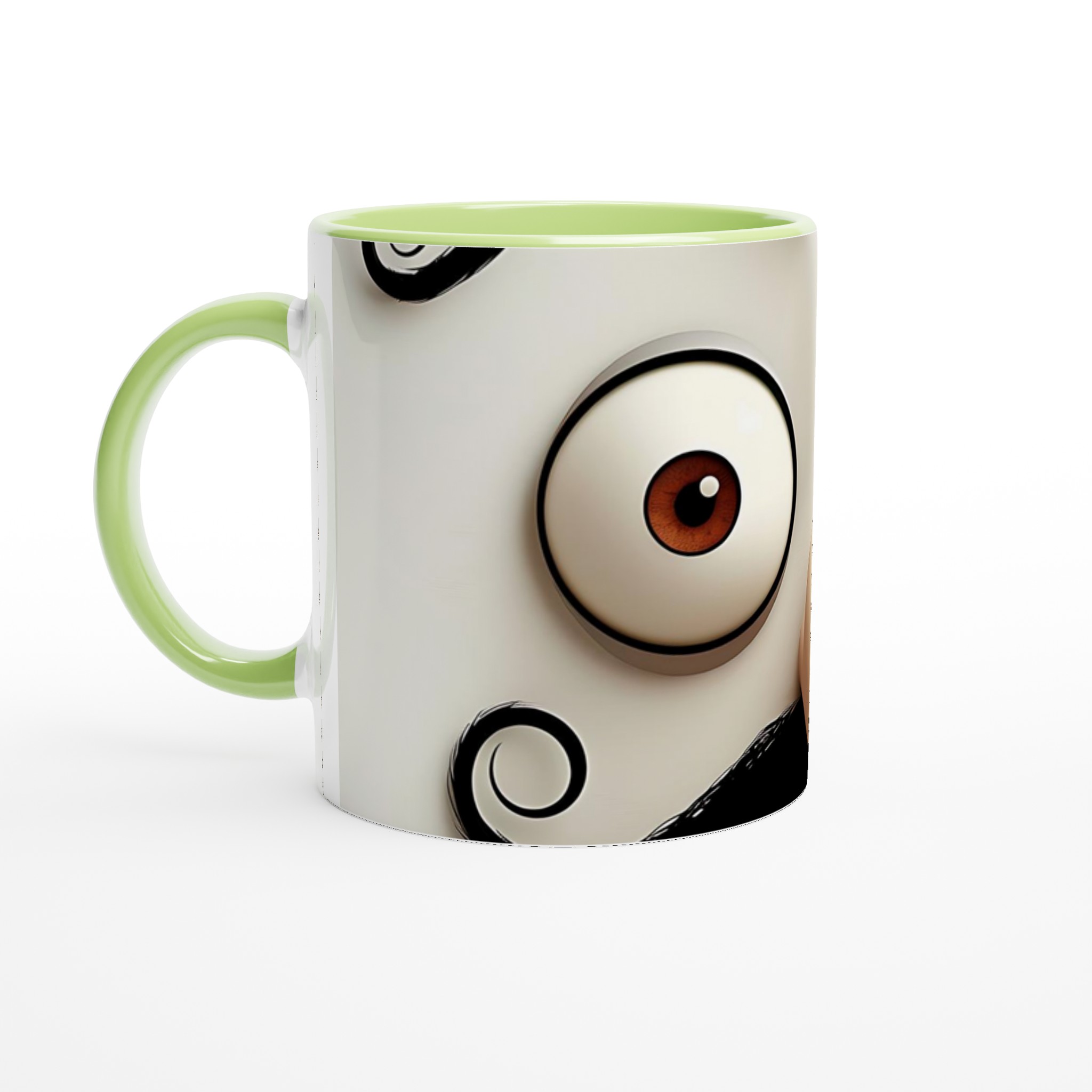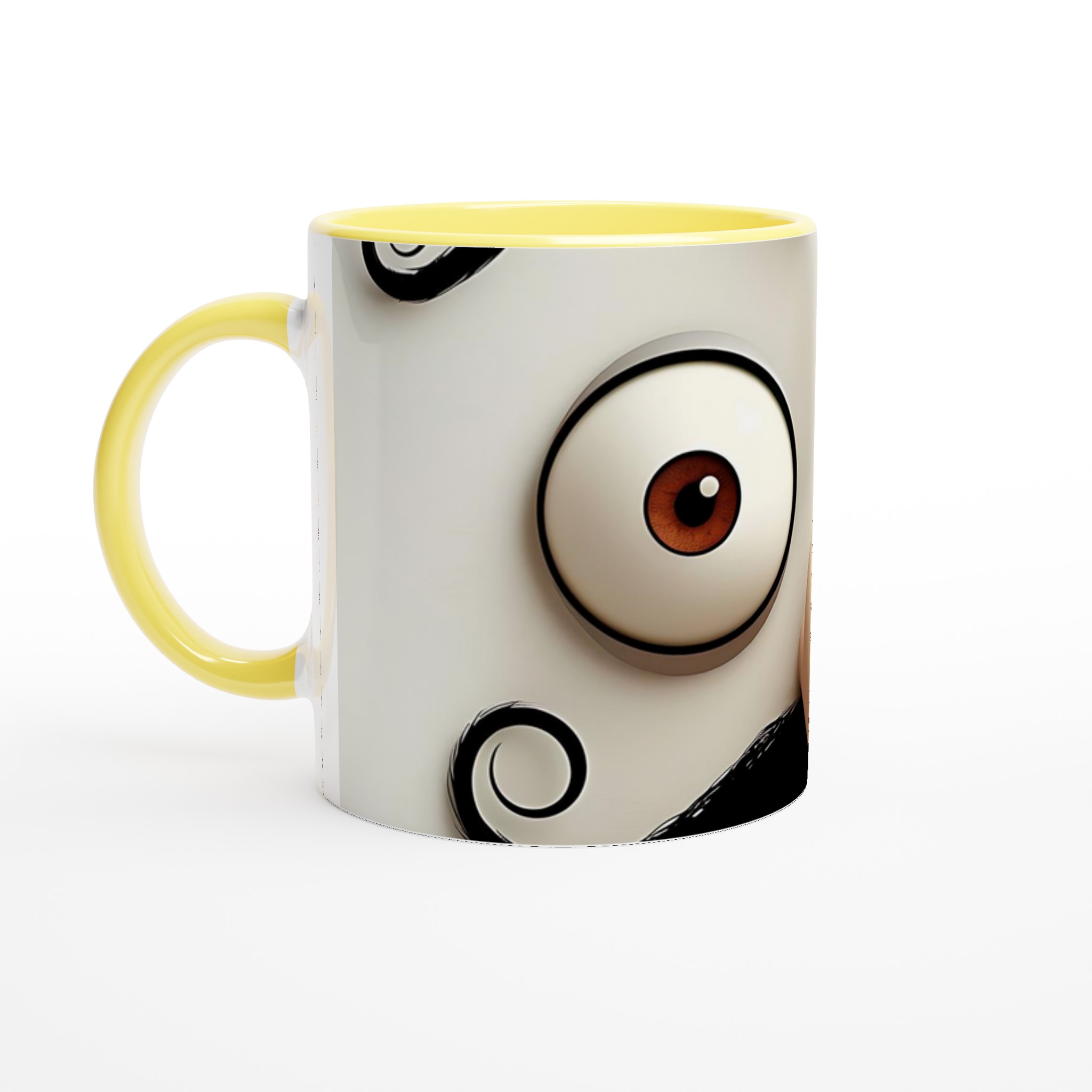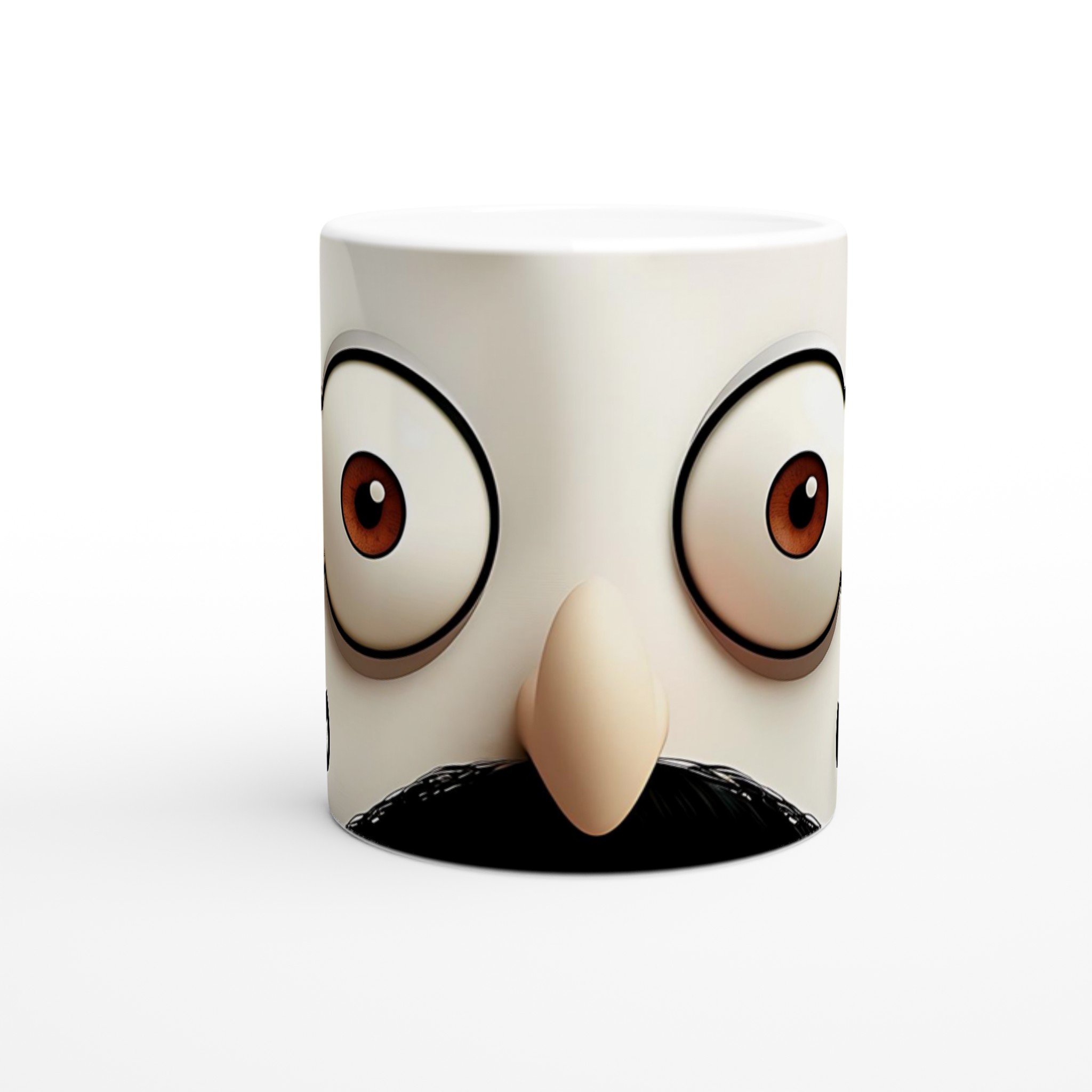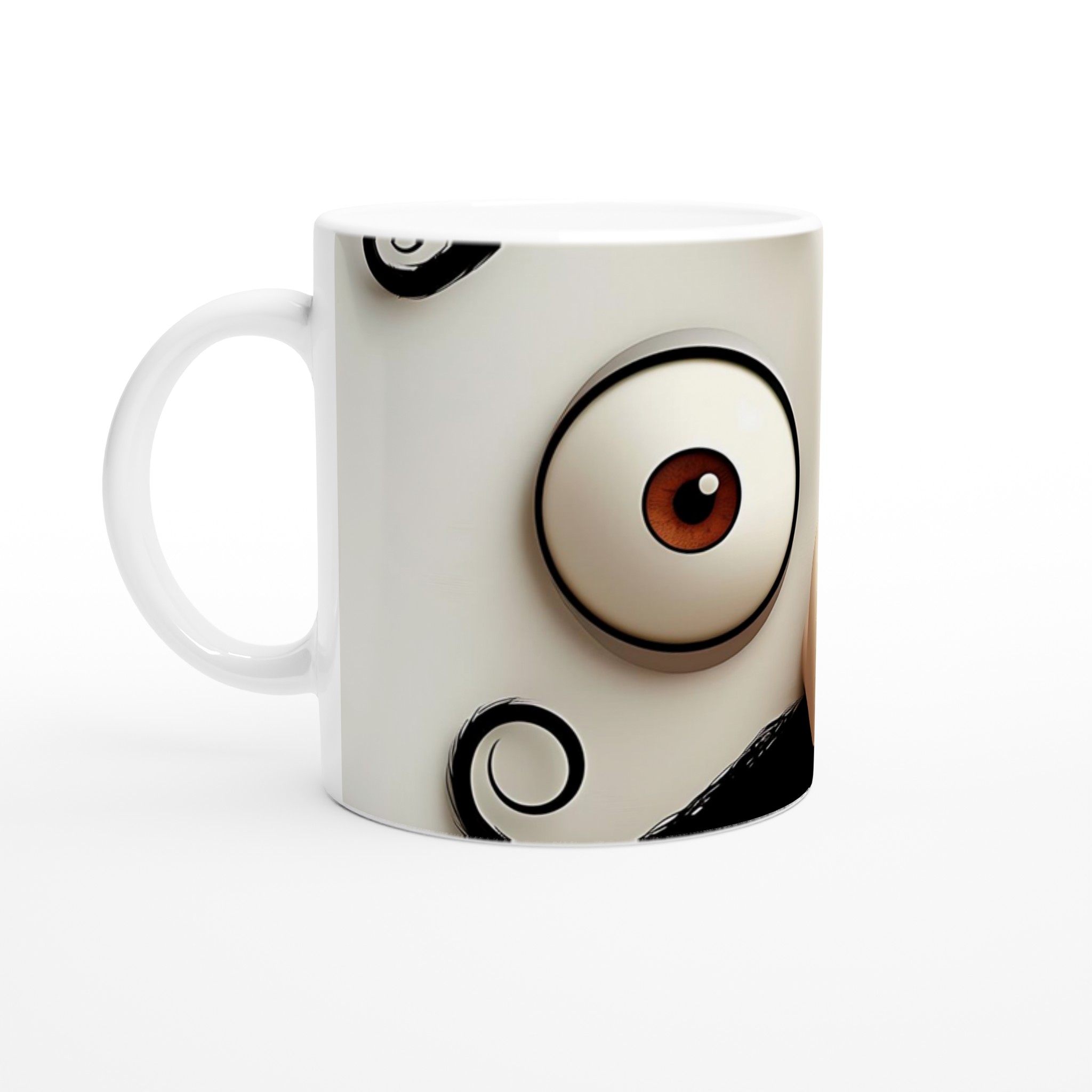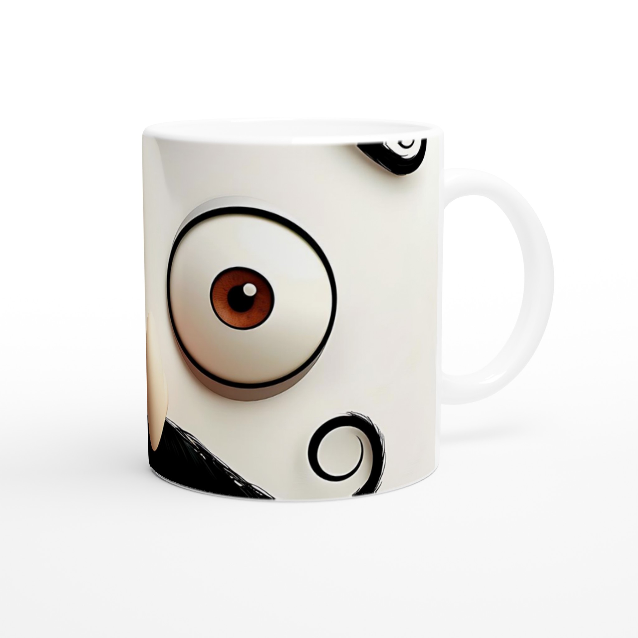 Denna lekfulla mugg, med sin charmerande mustasch- och ögondesign, är perfekt för dig som uppskattar en touch av humor i vardagen. Den blanka vita ytan ger ett skarpt och levande tryck som verkligen sticker ut, oavsett om det är en personlig design, ett roligt citat eller en present till någon du tycker om.