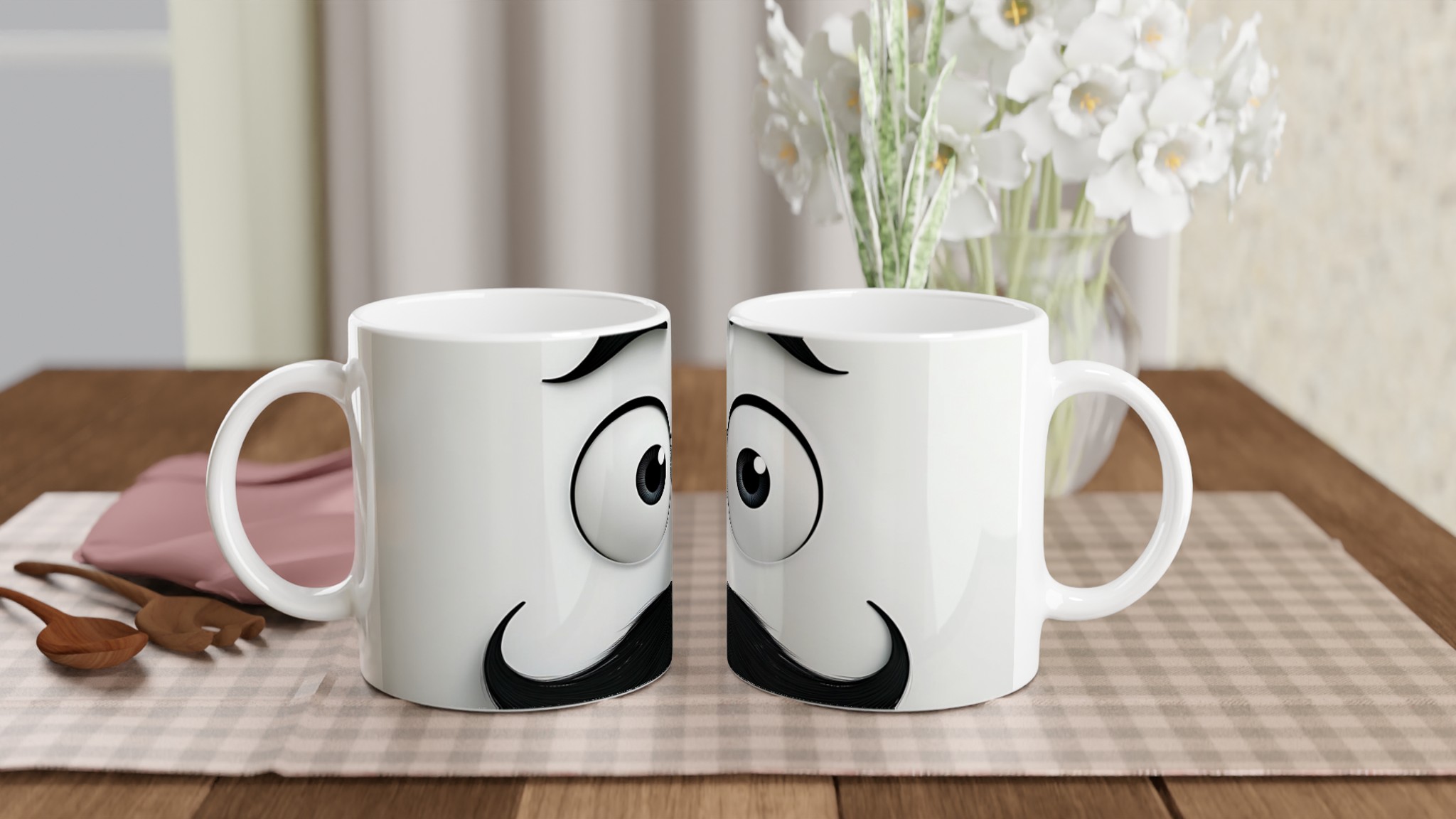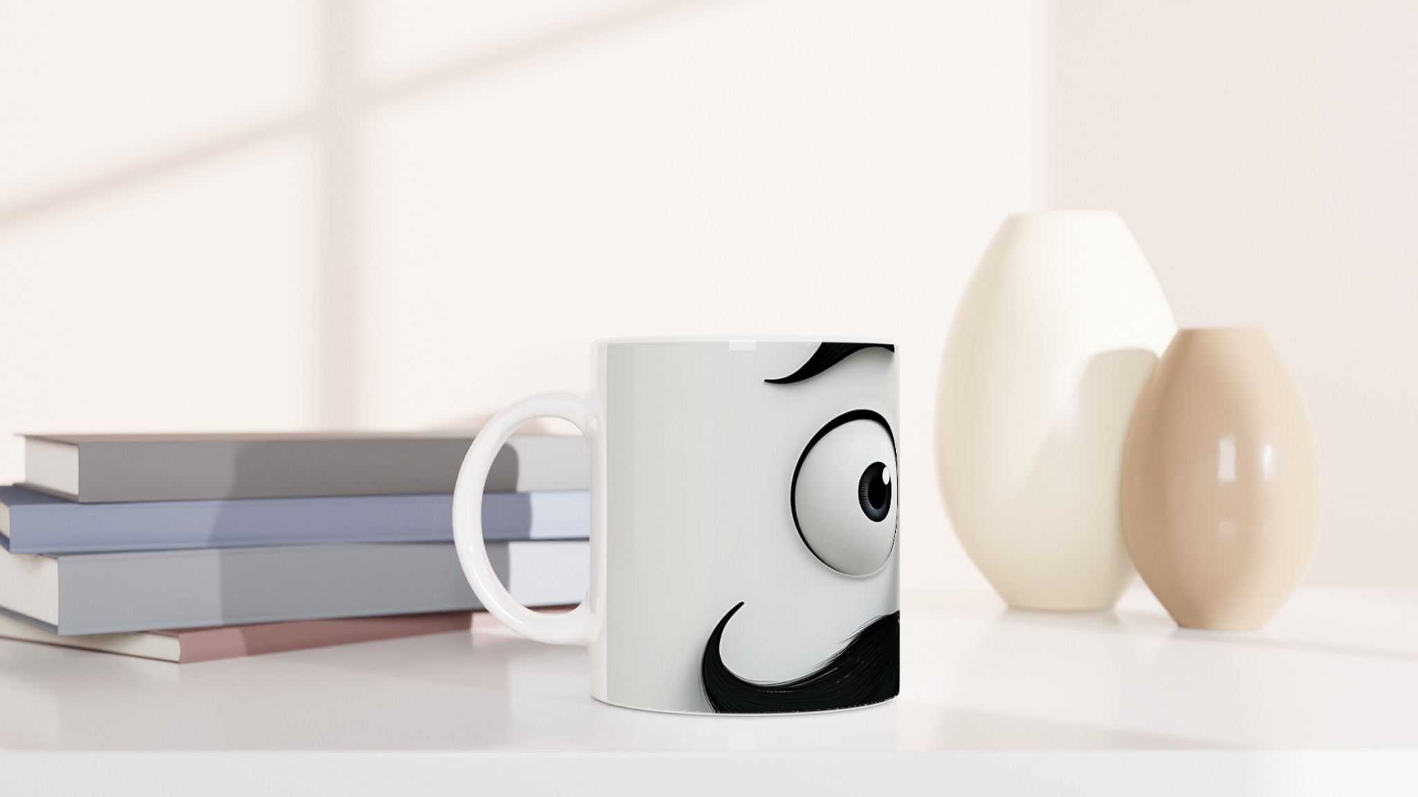 Vår ”Mr. Moustache” keramikmugg förvandlar din fikapaus till en rolig och stilfull upplevelse. Den lekfulla karaktären med de stora ögonen och den eleganta mustaschen är en garanterad konversationsstartare och ger din dag en extra dos charm. Den blanka vita ytan ger ett skarpt och levande tryck som verkligen sticker ut, oavsett om det är en personlig design, ett roligt citat eller en present till någon du tycker om.