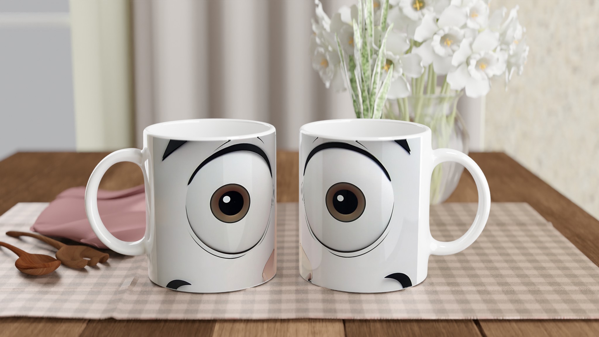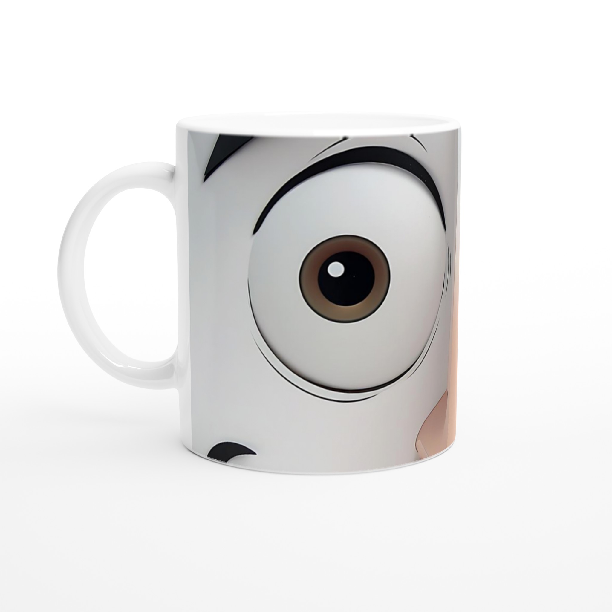 Denna charmiga mugg med ett humoristiskt Mr. Whiskers-ansikte är designad för att väcka ett leende vid varje användning. Den blanka vita ytan ger ett skarpt och levande tryck som verkligen sticker ut, oavsett om det är en personlig design, ett roligt citat eller en present till någon du tycker om.