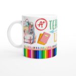 Den blanka vita ytan framhäver de glada färgerna och texten med klara och levande nyanser, som håller sig fina även efter många turer i mikron och diskmaskinen. Perfekt för morgonkaffet, kvällens varma choklad eller när läraren bara vill njuta av en kopp te efter en lång dag i klassrummet. Denna mugg är inte bara praktisk – den är också en hjärtlig och personlig gåva som garanterat kommer att sprida glädje och uppskattning.