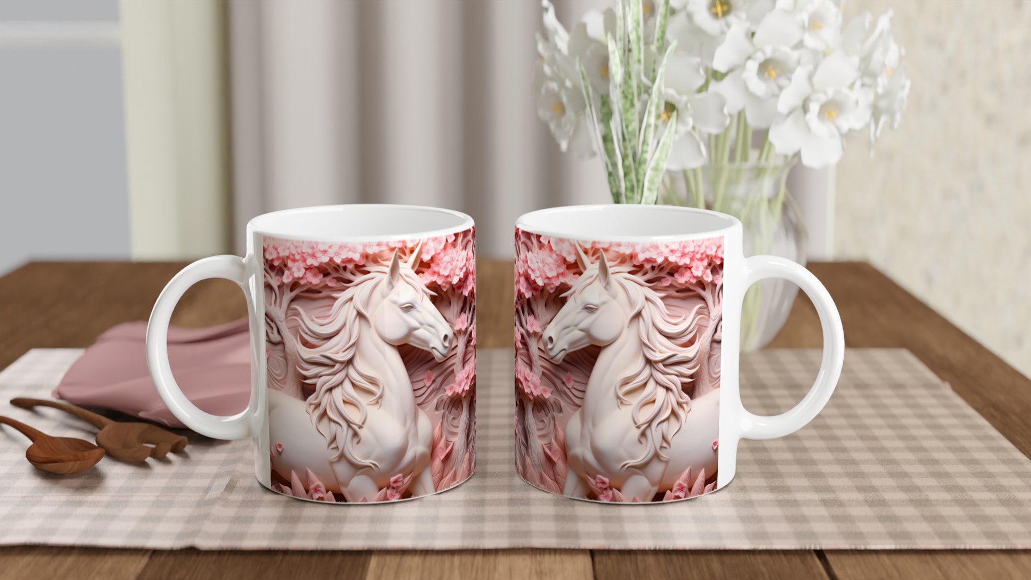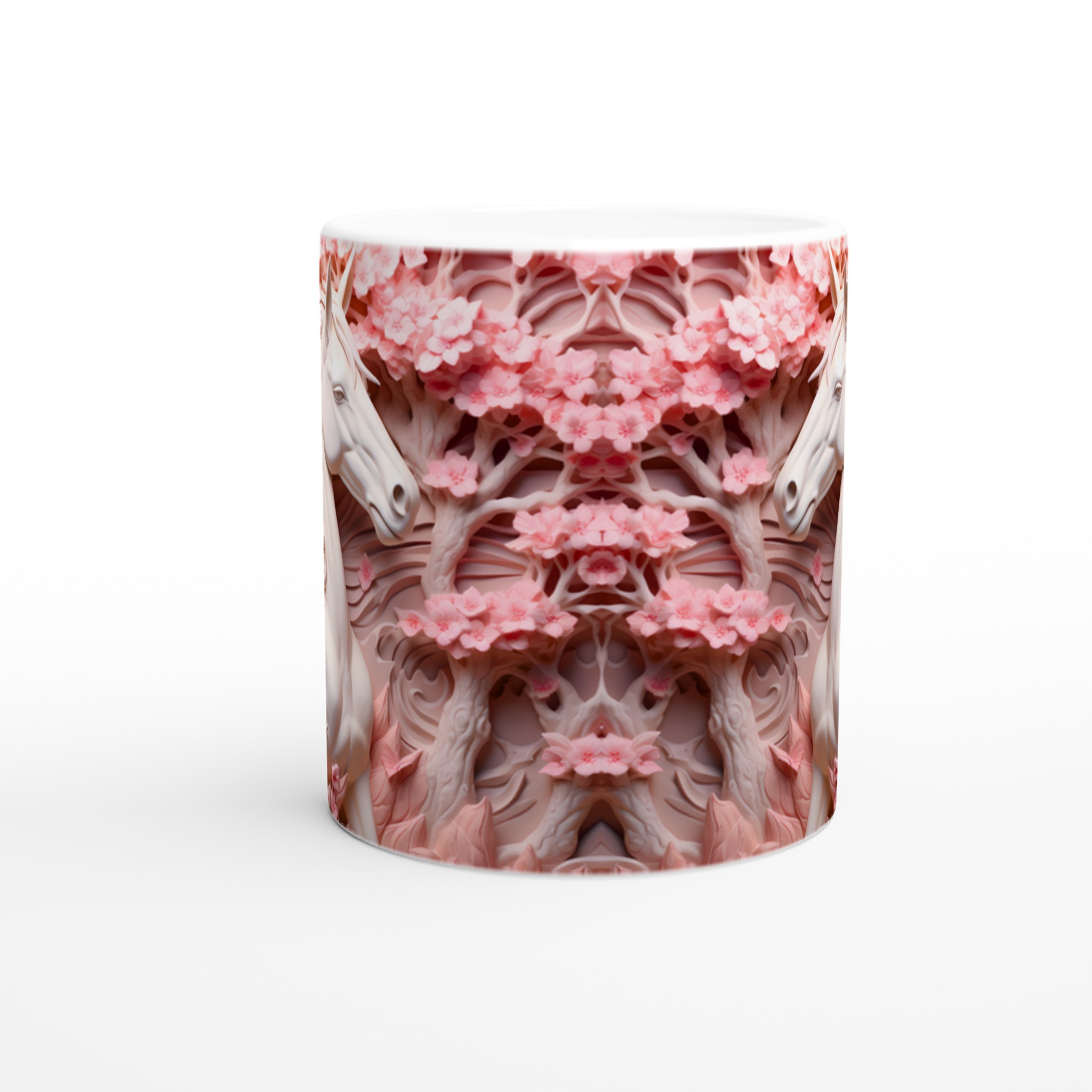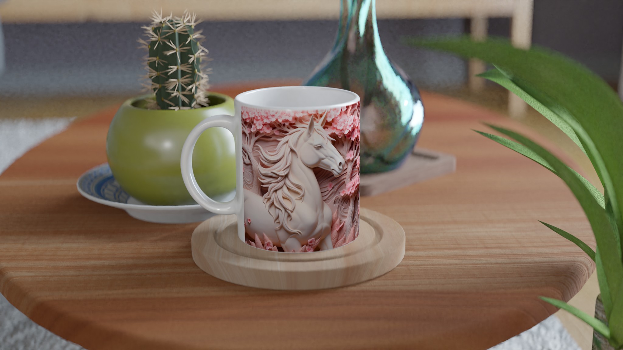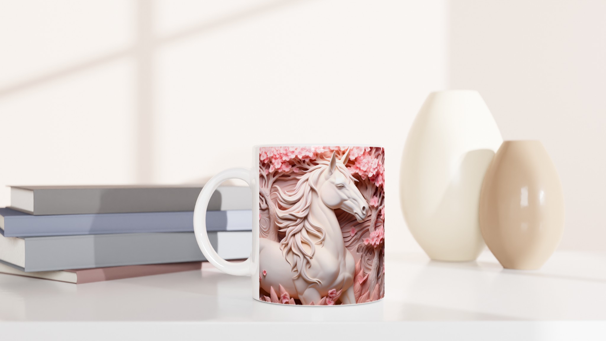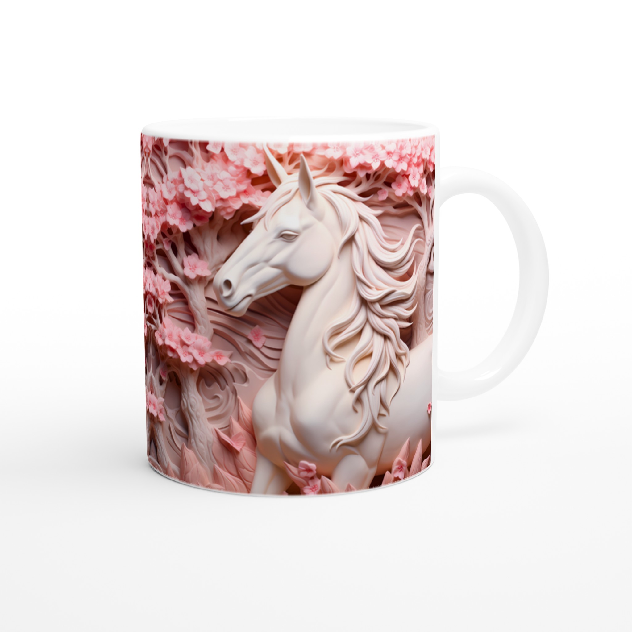 Föreställ dig en drömvärld där vita hästar galopperar genom ett blomstrande paradis. Den här underbara keramiska muggen fångar den känslan perfekt, med en detaljerad relief-inspirerad design i mjuka pastellrosa och gräddvita toner. Den blir snabbt en vardagsfavorit och en lugnande detalj under morgonkaffet, kvällens varma choklad, eller när du bara vill njuta av en kopp te i lugn och ro.