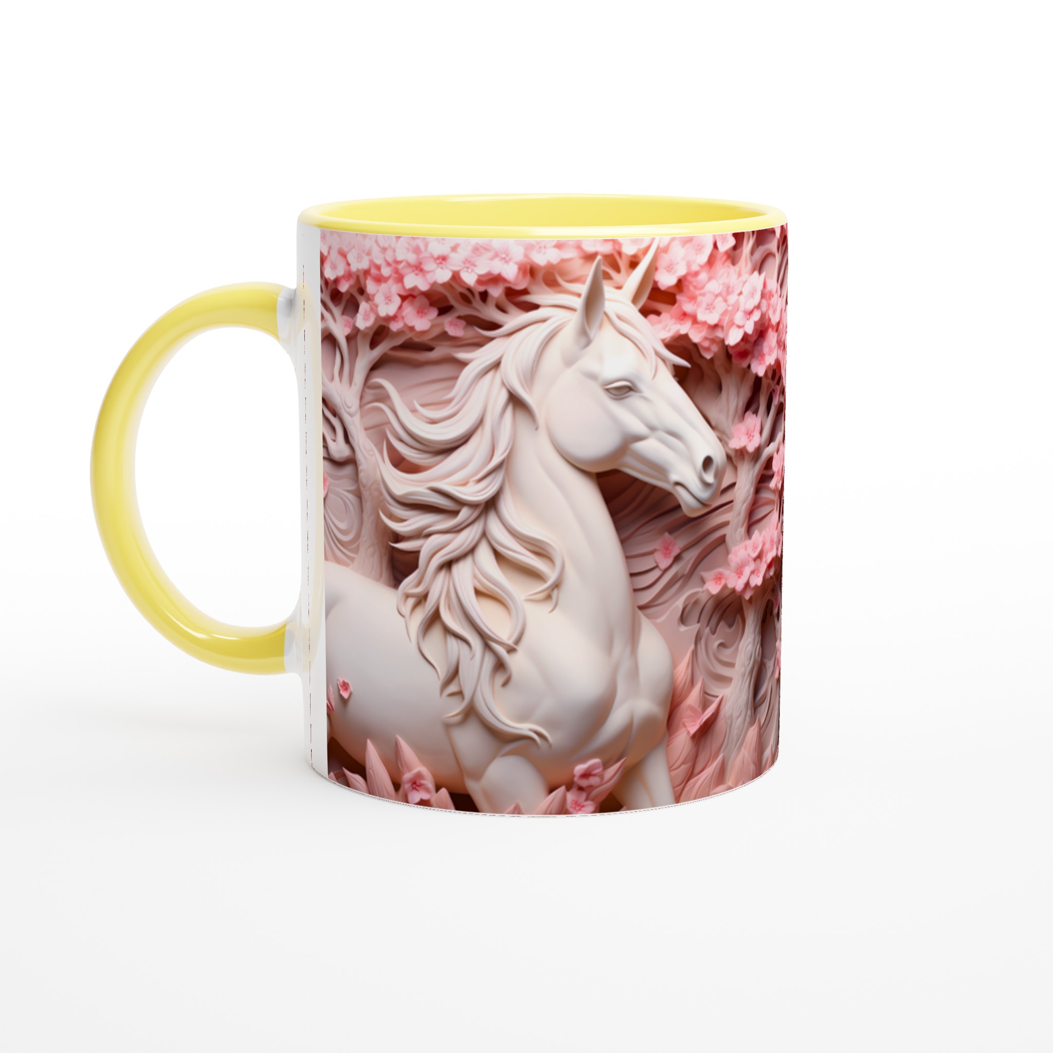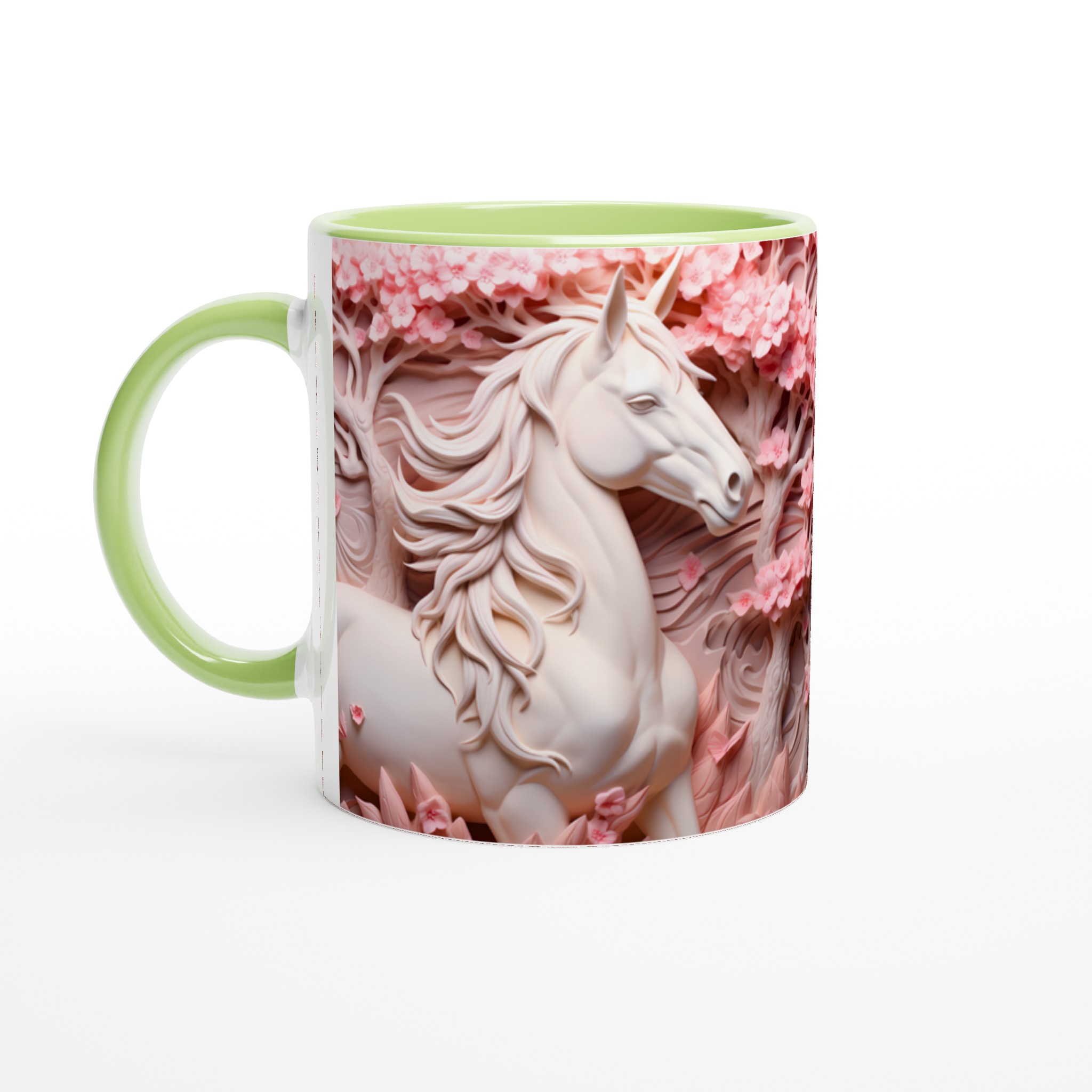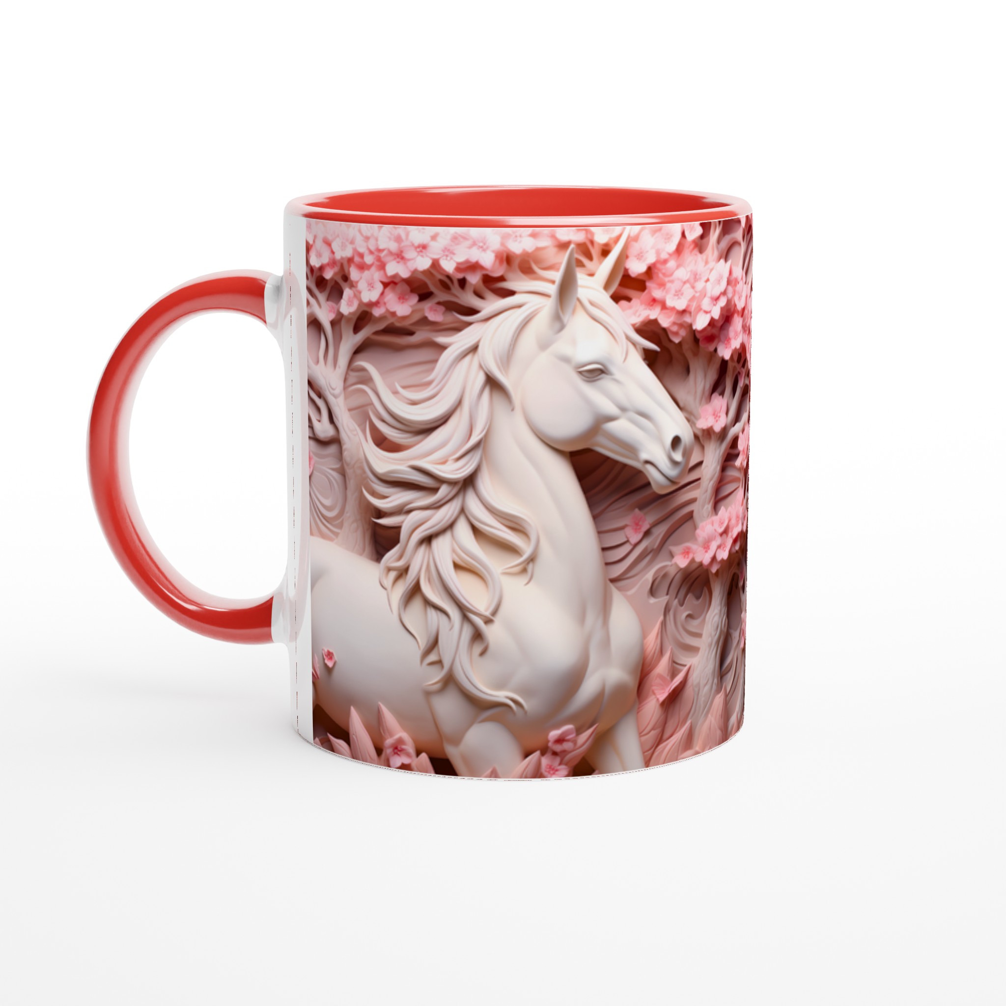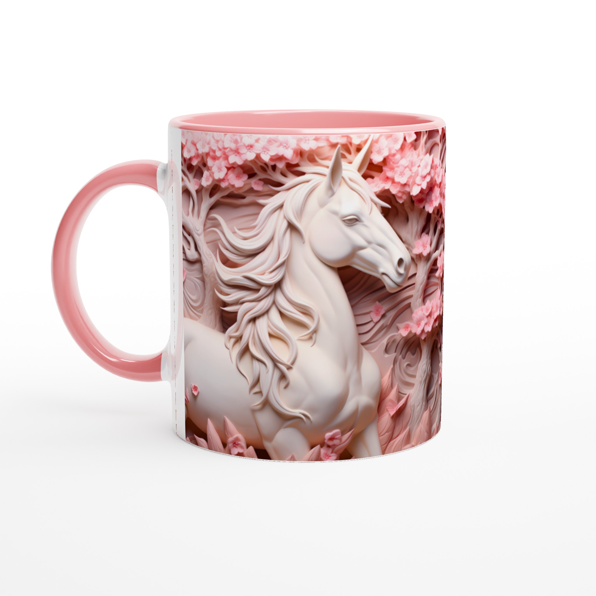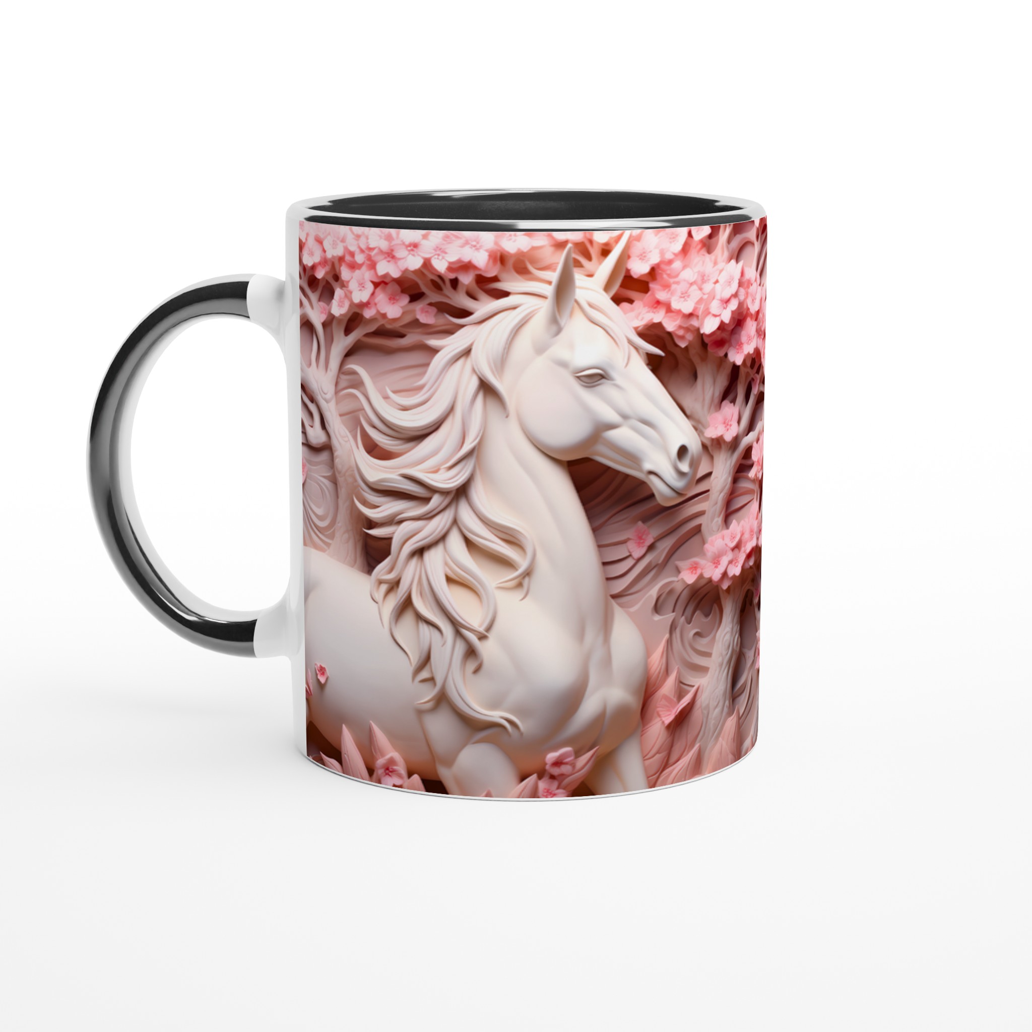 Föreställ dig en drömvärld där vita hästar galopperar genom ett blomstrande paradis. Den här underbara keramiska muggen fångar den känslan perfekt, med en detaljerad relief-inspirerad design i mjuka pastellrosa och gräddvita toner. Den blir snabbt en vardagsfavorit och en lugnande detalj under morgonkaffet, kvällens varma choklad, eller när du bara vill njuta av en kopp te i lugn och ro.