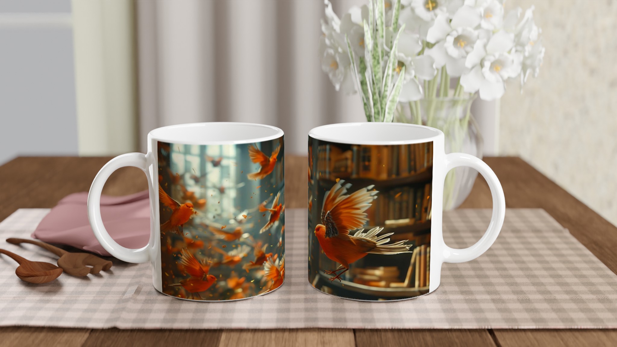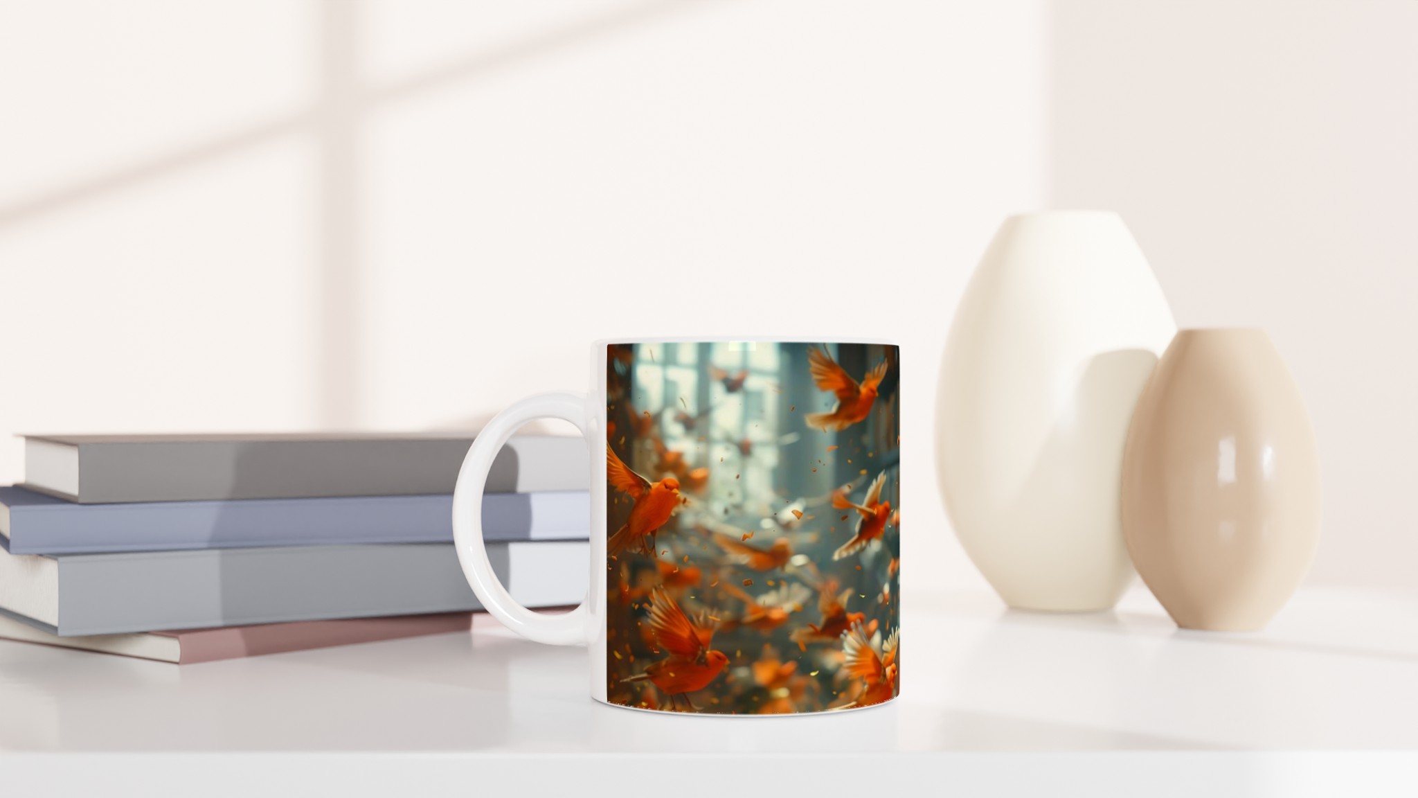Låt dig svepas med av fantasin varje gång du tar en klunk ur denna magiska keramikmugg, prydd med ett förtrollande motiv av flygande orangea fåglar. Denna mugg är mer än bara ett kärl för din dryck – den är en daglig påminnelse om frihet och skönhet, perfekt för att starta morgonen med kaffe, mysa med varm choklad på kvällen, eller njuta av en lugn te-stund.