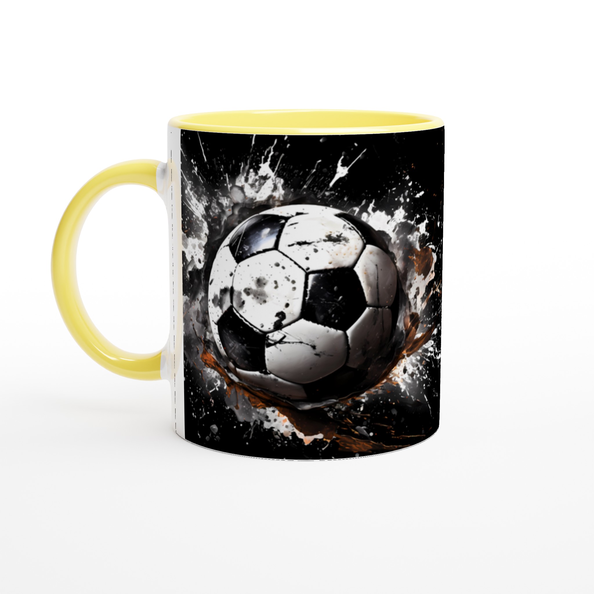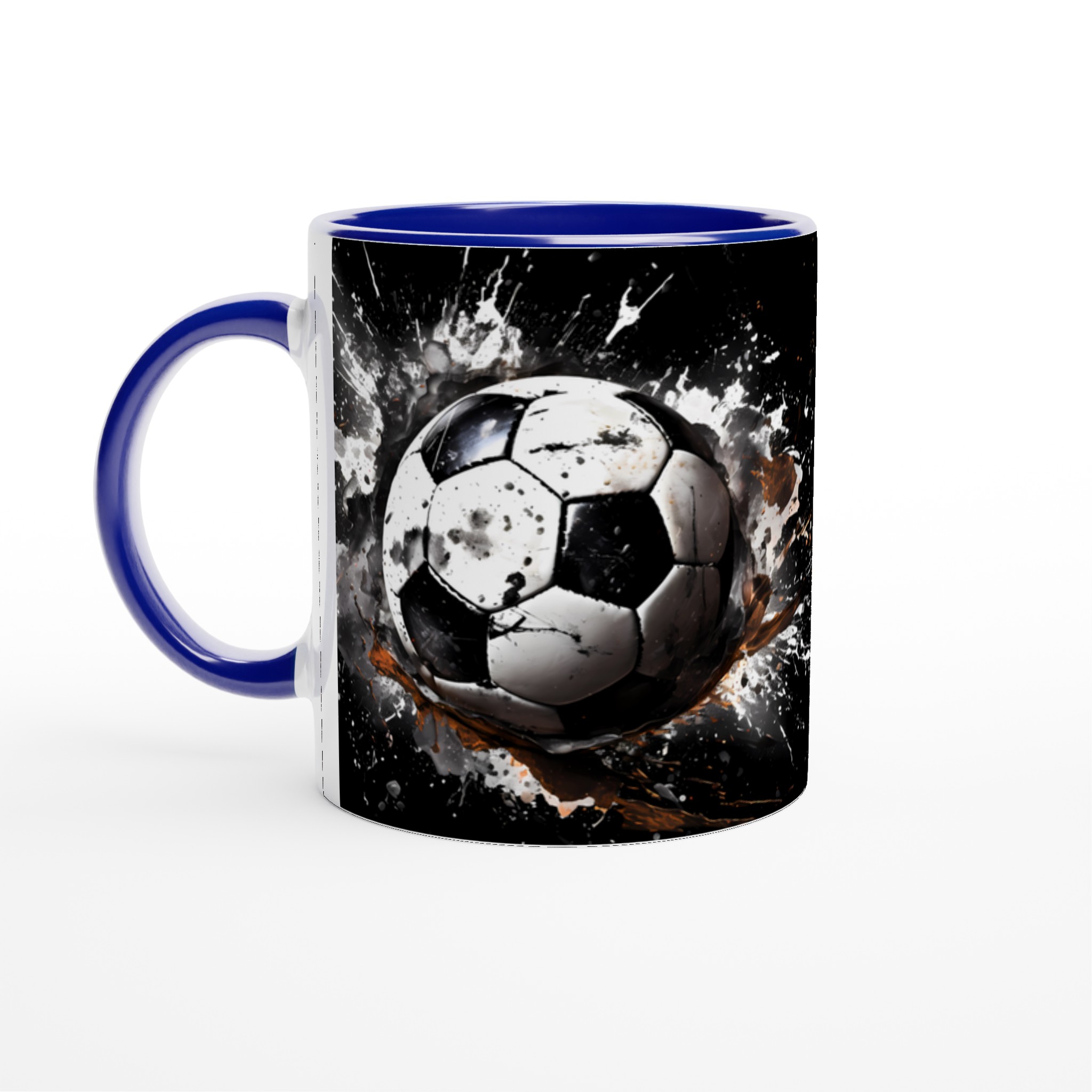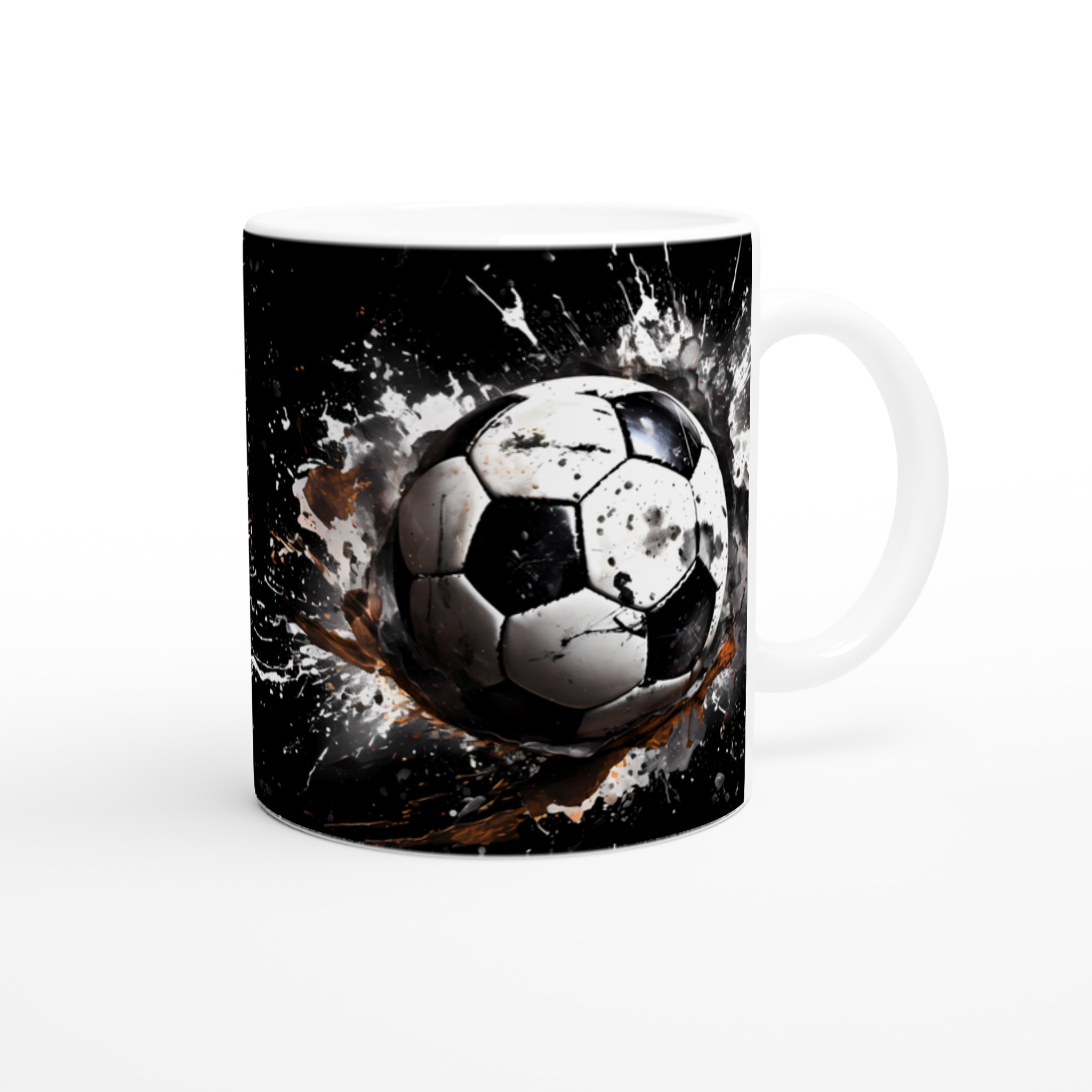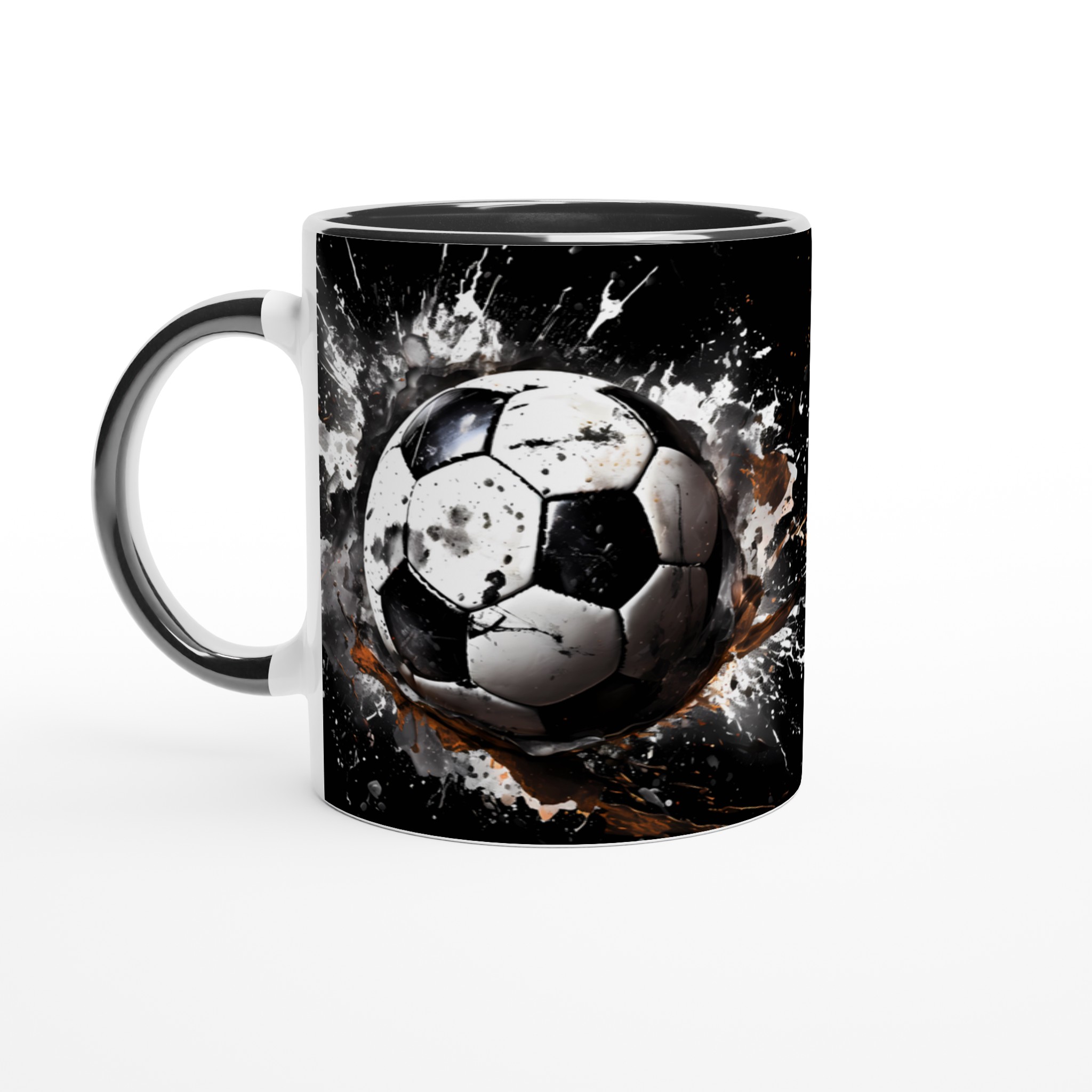 Fånga sportens spänning med vår ”Fotbollsfeber” keramiska mugg! Denna mugg är designad för alla fotbollsfans och den fångar den råa energin från en match med sitt dynamiska tryck av en fotboll som exploderar i ett stänk av färg. Det är den perfekta följeslagaren för morgonkaffet, kvällens varma choklad, eller när du vill ladda upp inför nästa stora match.