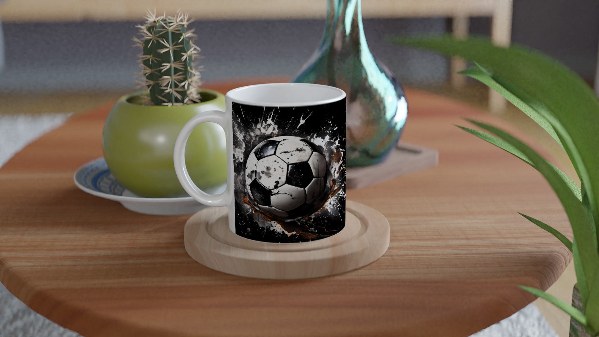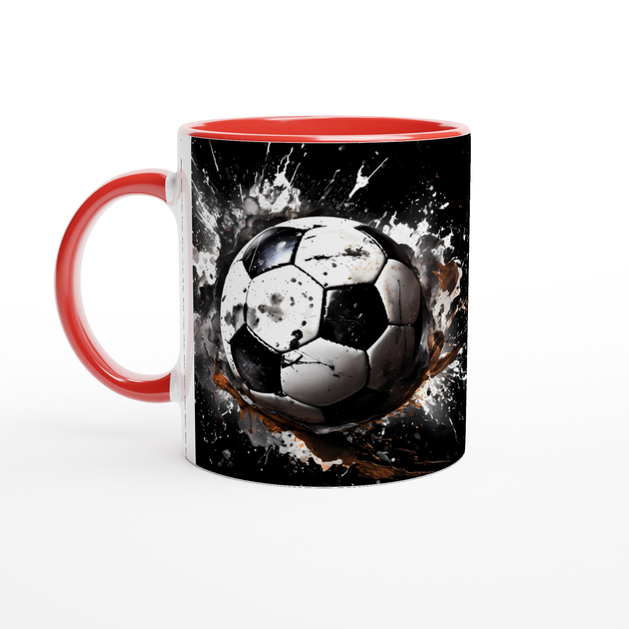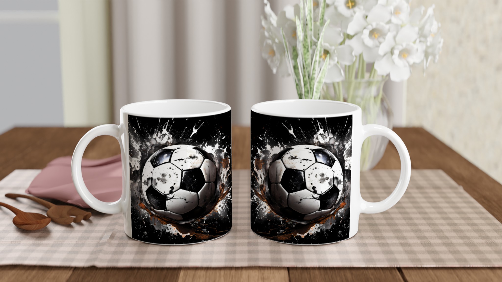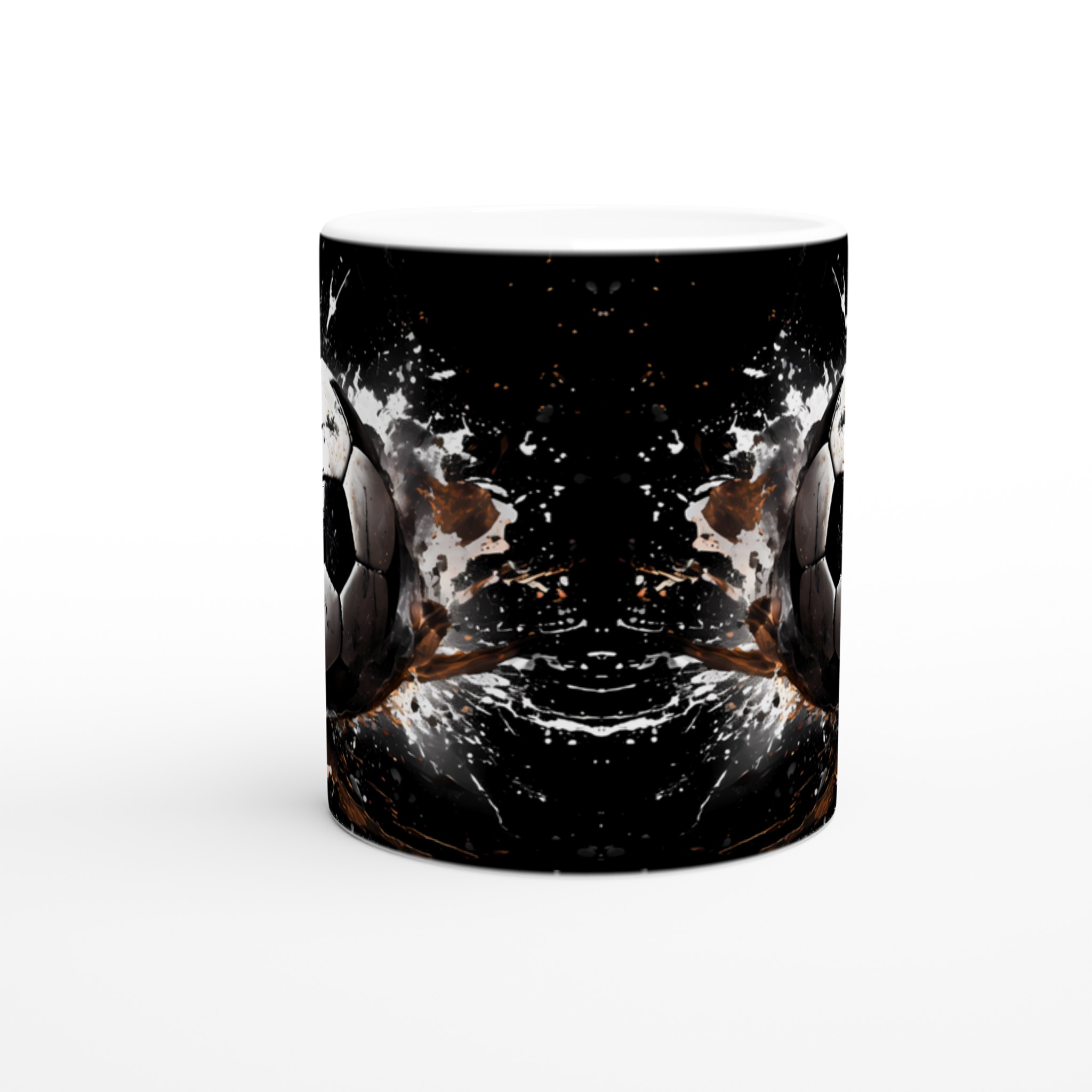 Fånga sportens spänning med vår ”Fotbollsfeber” keramiska mugg! Denna mugg är designad för alla fotbollsfans och den fångar den råa energin från en match med sitt dynamiska tryck av en fotboll som exploderar i ett stänk av färg. Det är den perfekta följeslagaren för morgonkaffet, kvällens varma choklad, eller när du vill ladda upp inför nästa stora match.