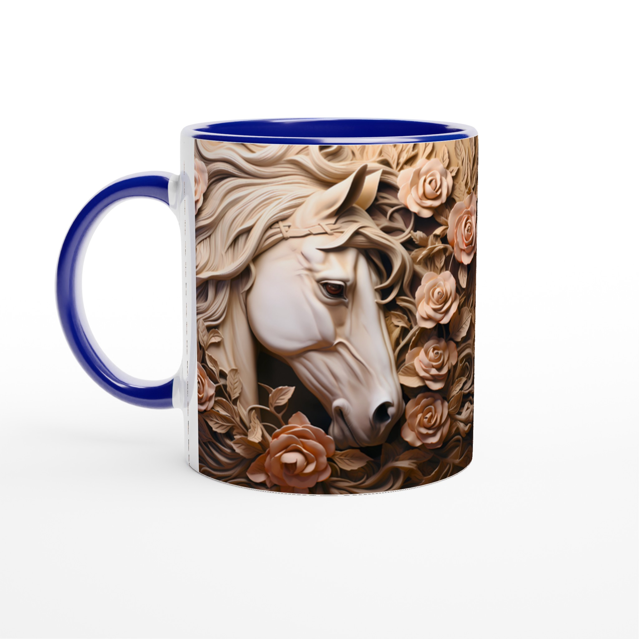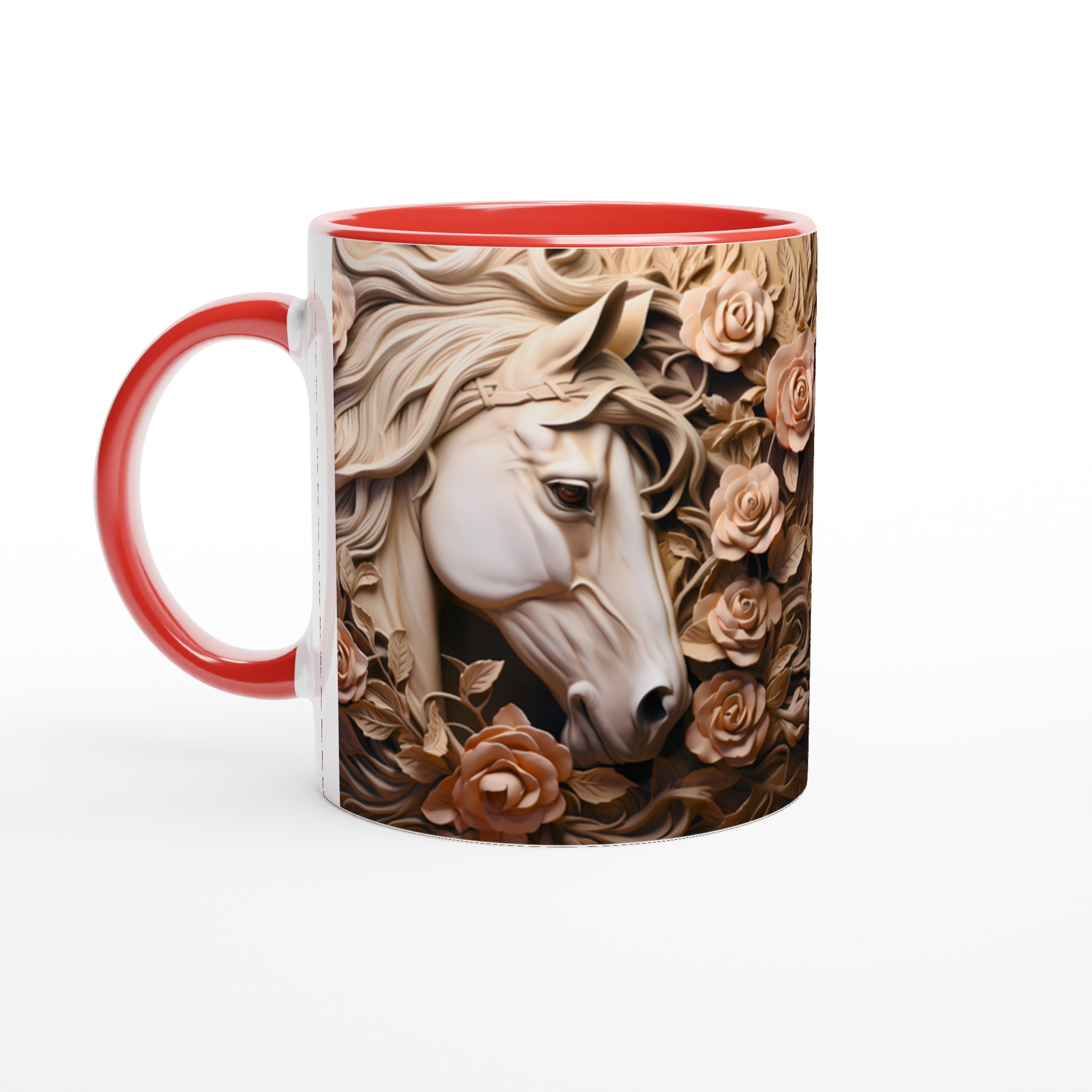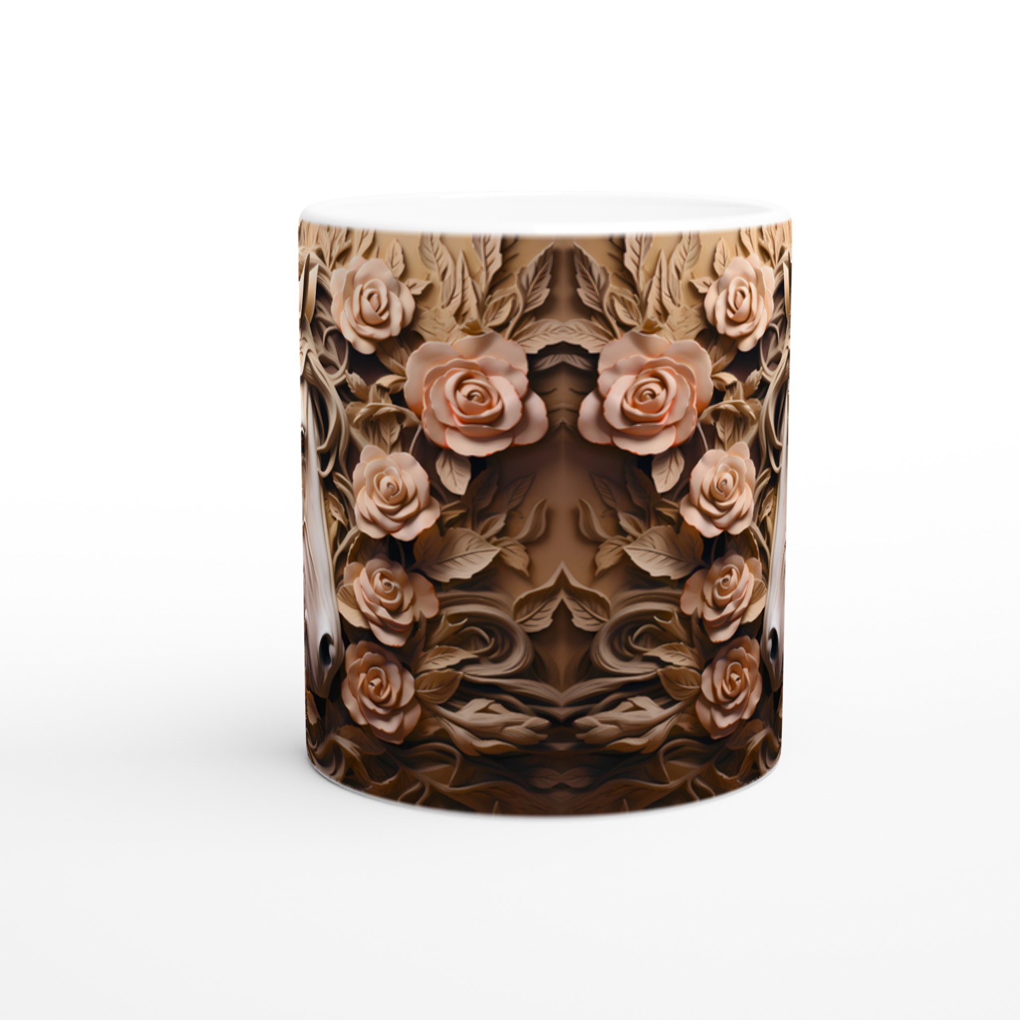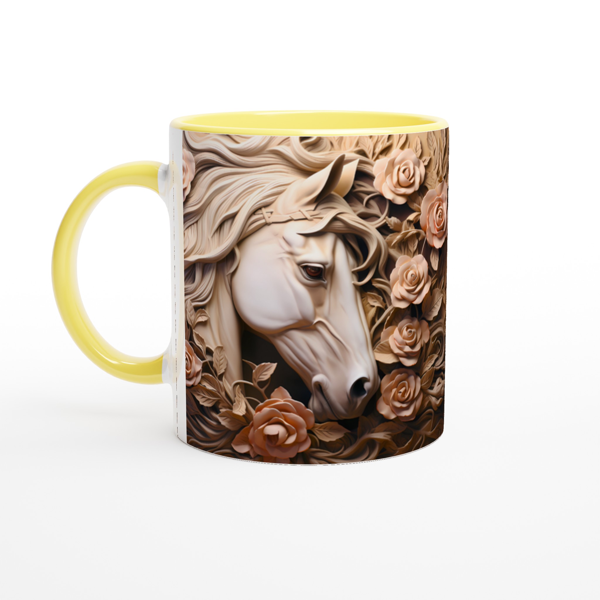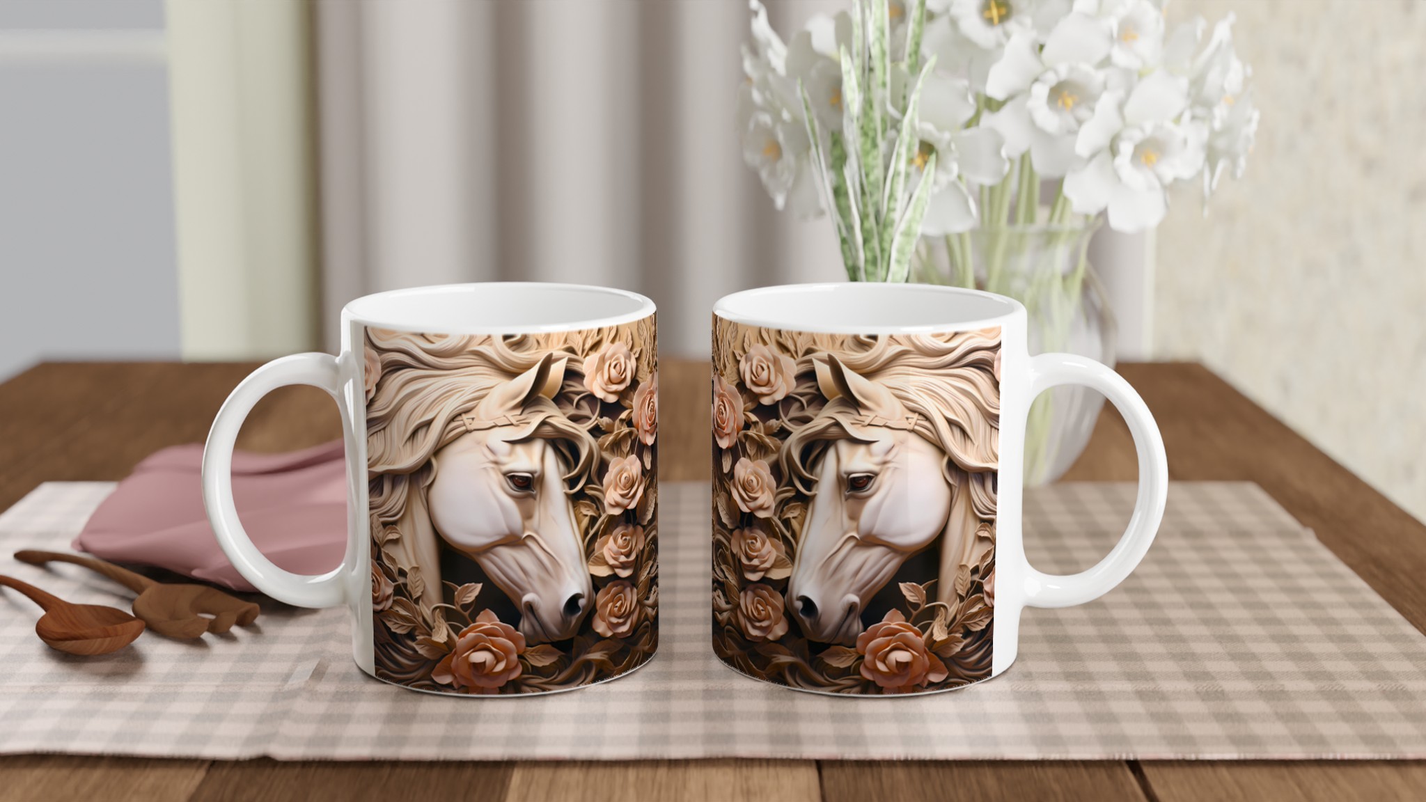 Lyft din fikastund till en konstupplevelse med denna gudomligt vackra keramiska mugg, inspirerad av den lugnande skönheten hos marmorskulpturer och rosenträdgårdar. Den mjuka paletten av neutrala toner och den intrikata designen av hästhuvuden och blommor skapar en känsla av tidlös elegans som kompletterar varje hem eller kontor.