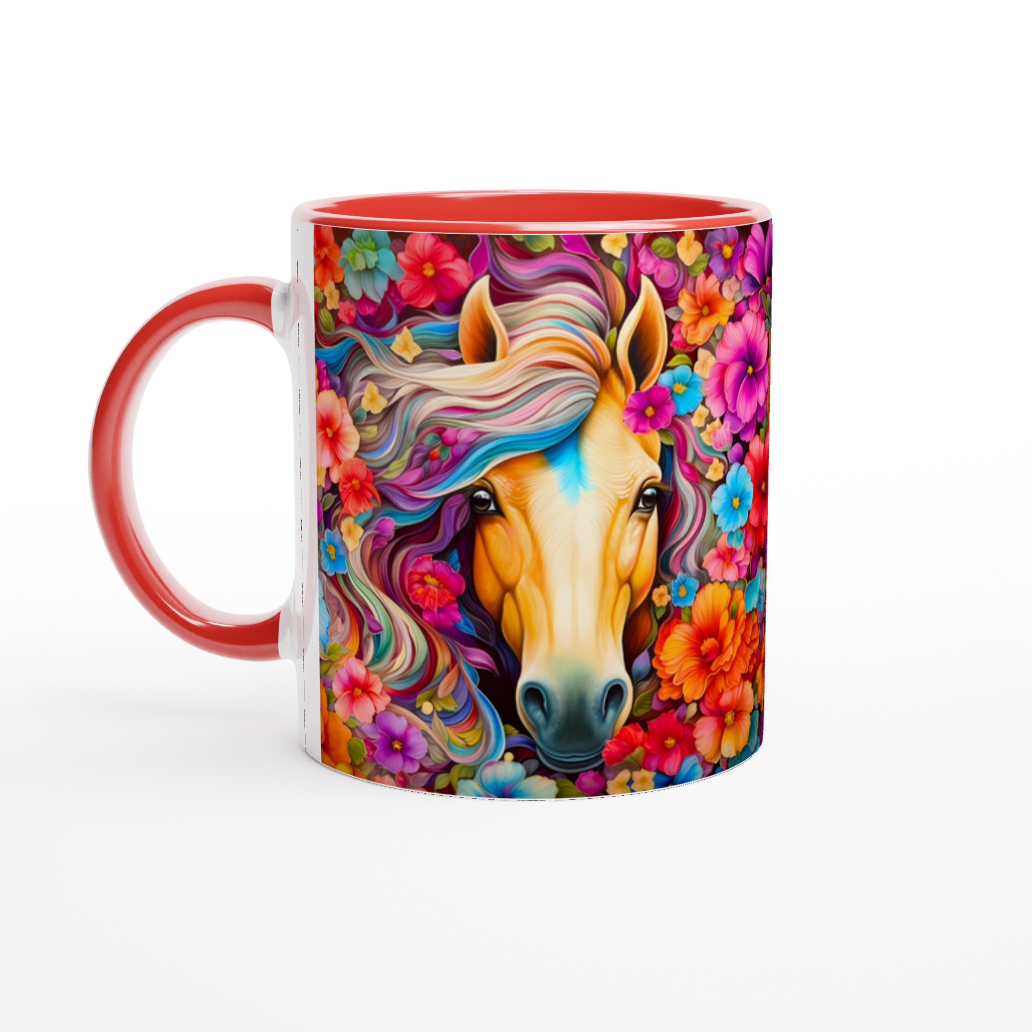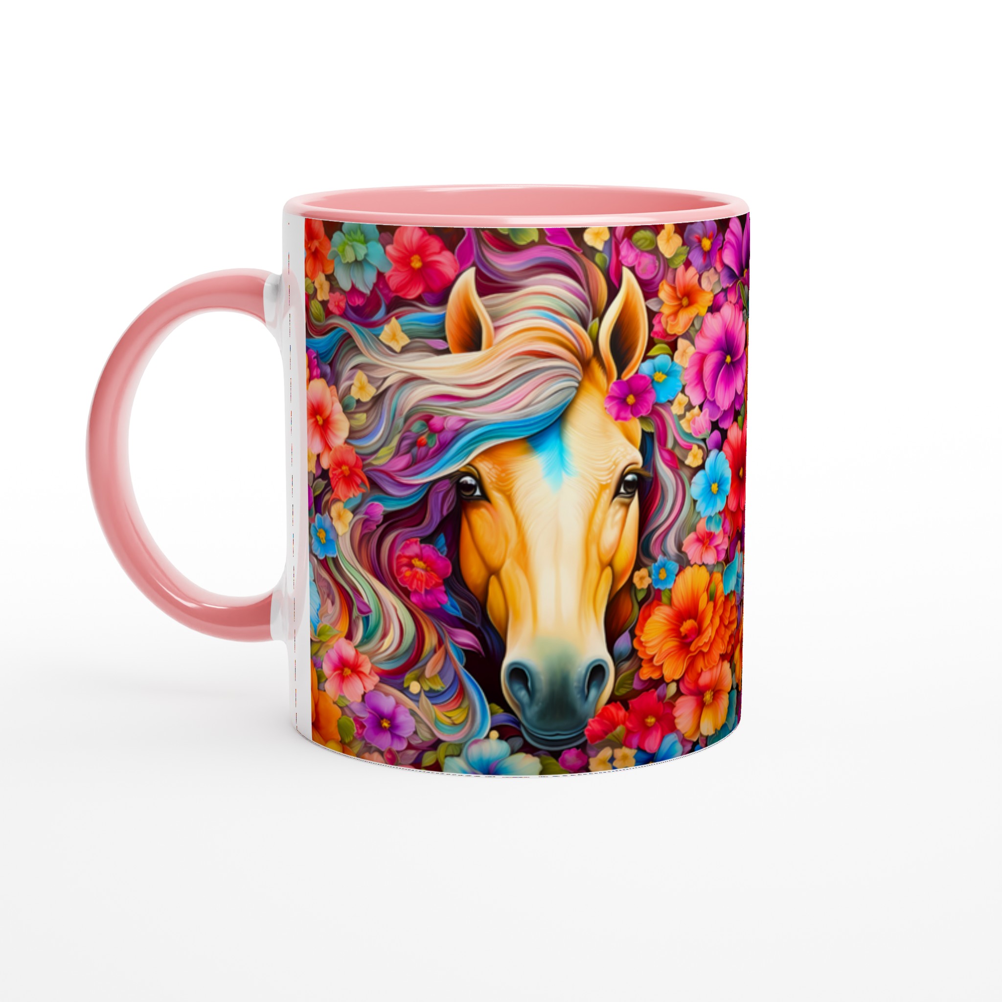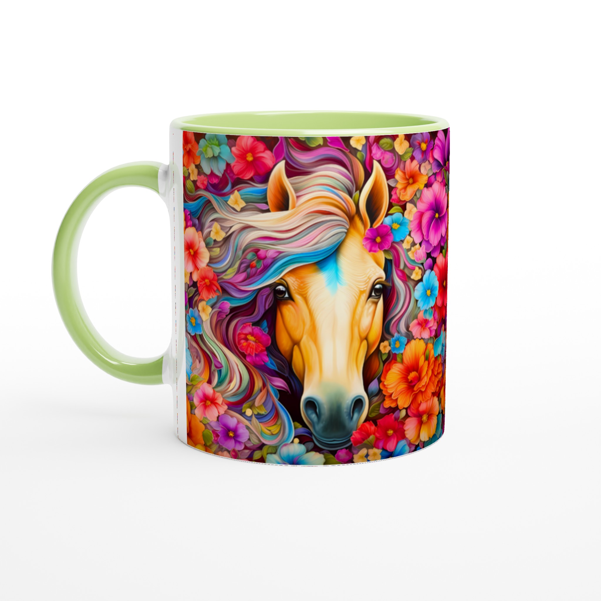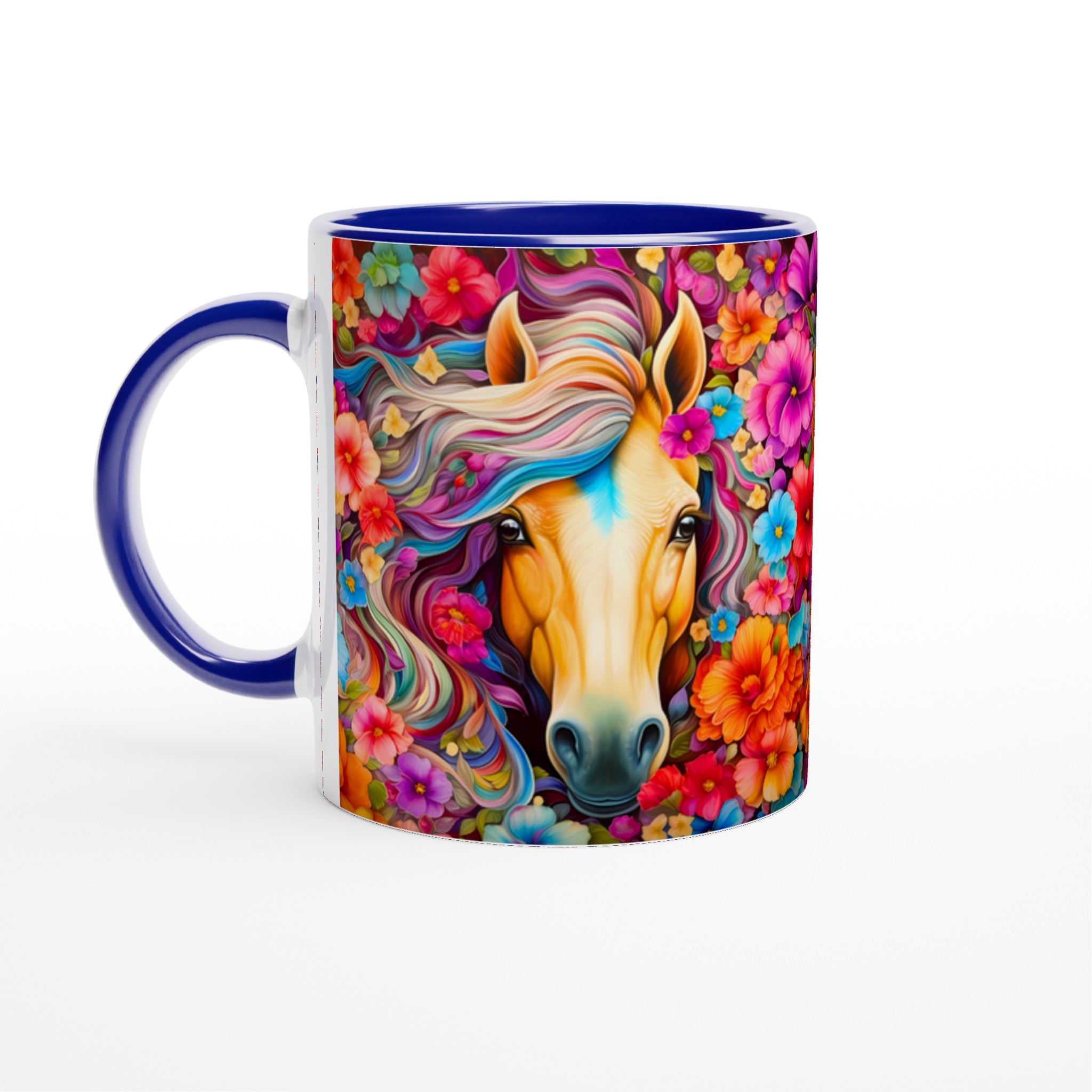 Låt varje klunk bli en resa in i en värld av färg och fantasi med denna förtrollande keramiska mugg. Smyckad med en drömlik illustration av vackra hästar omgivna av en överdådig blomsterprakt i en explosion av livfulla färger, är denna mugg mer än bara en dryckesbehållare – den är ett konstverk. Den blanka vita ytan ser till att trycken framhävs med klara och levande färger, som håller sig fina även efter många turer i mikron och diskmaskinen.