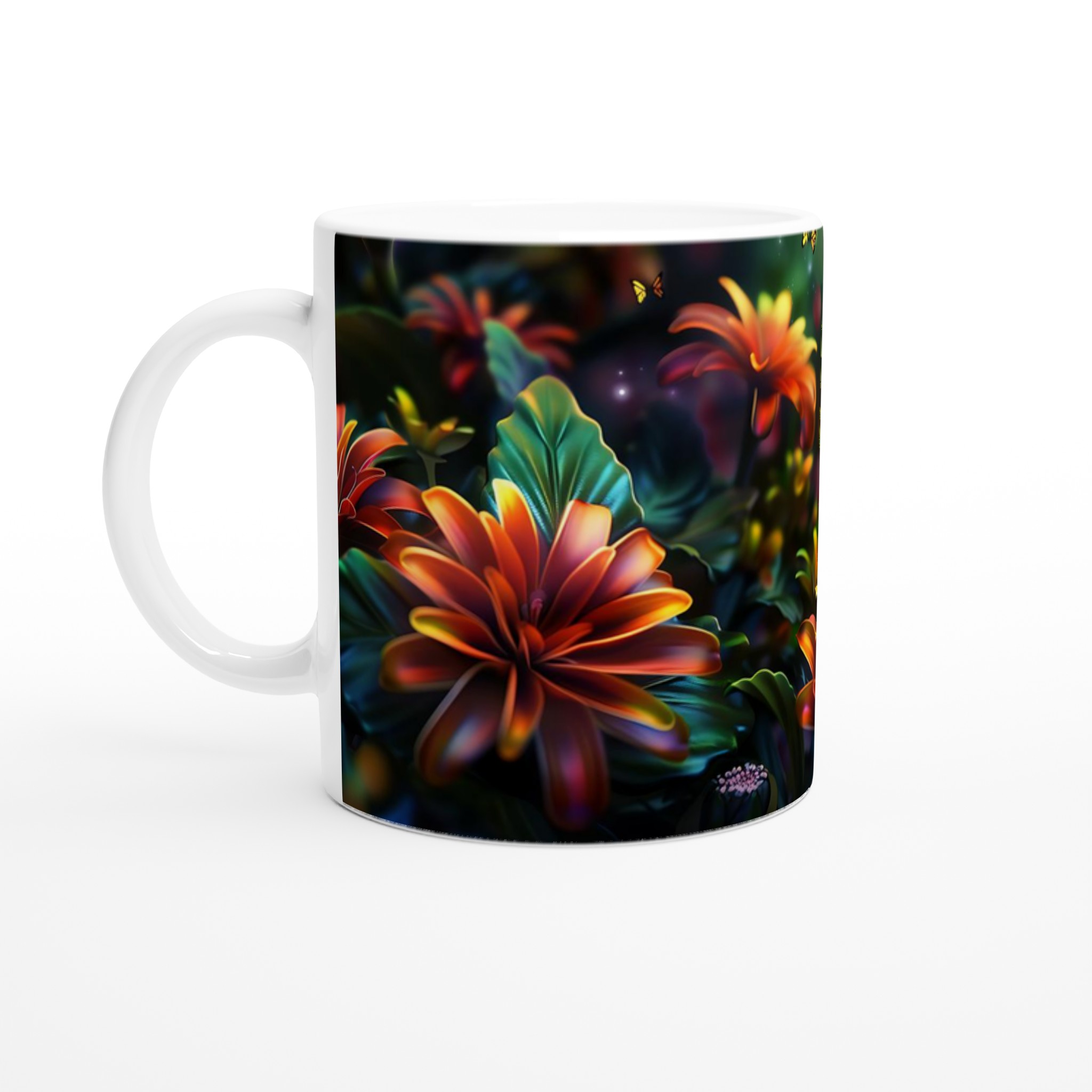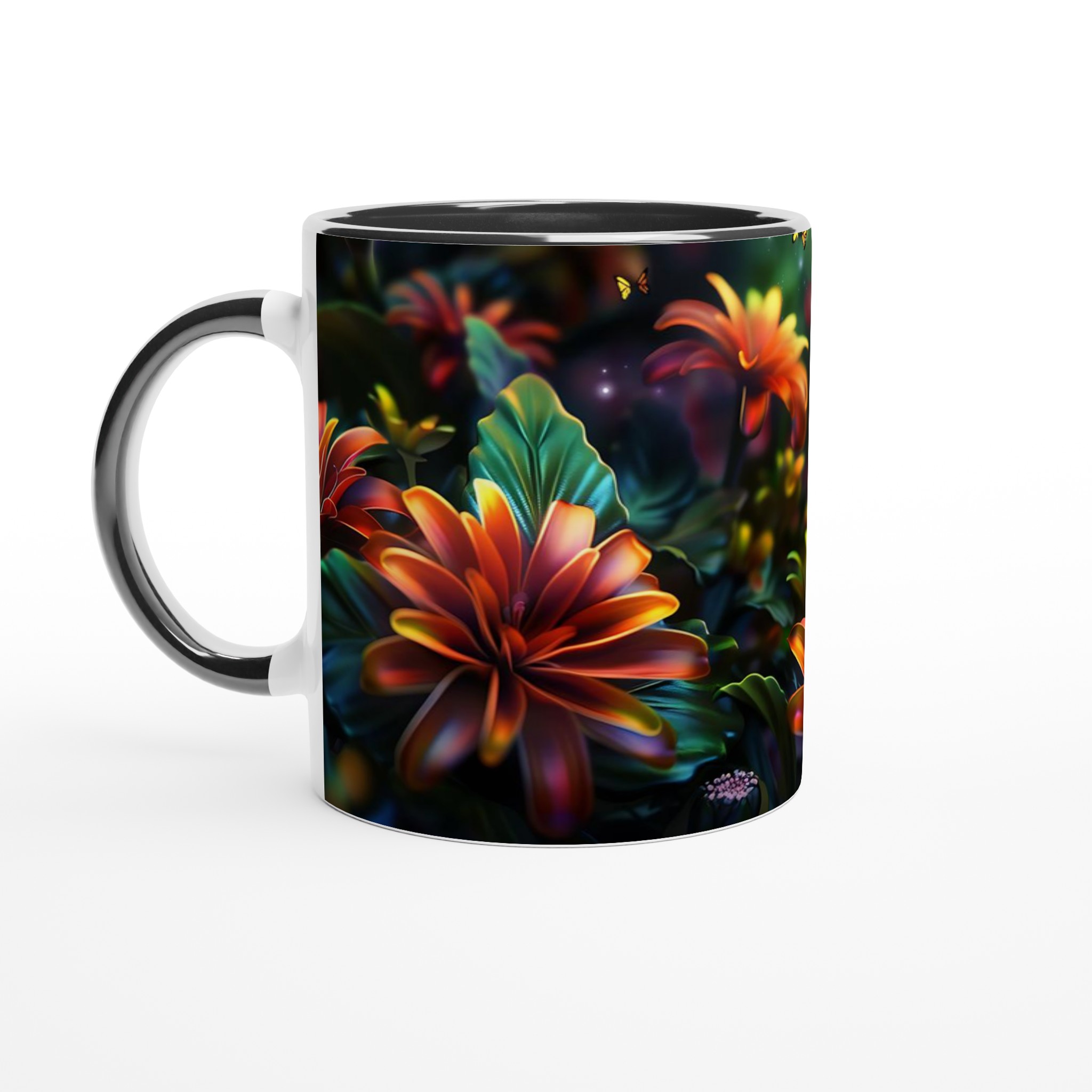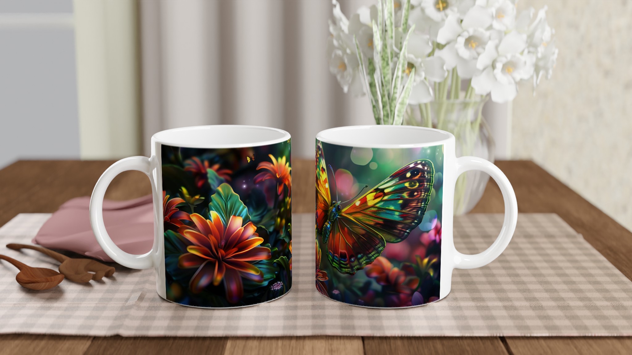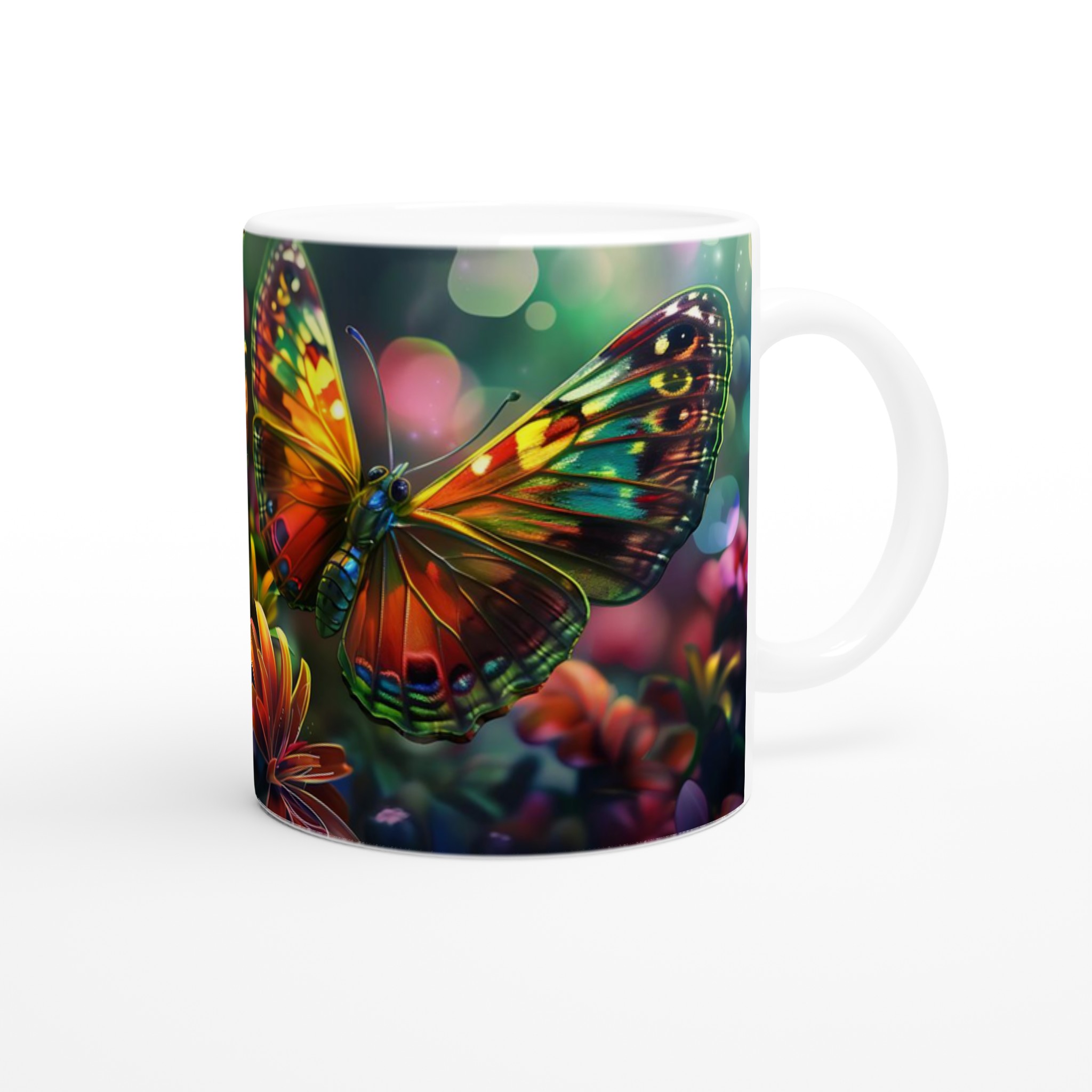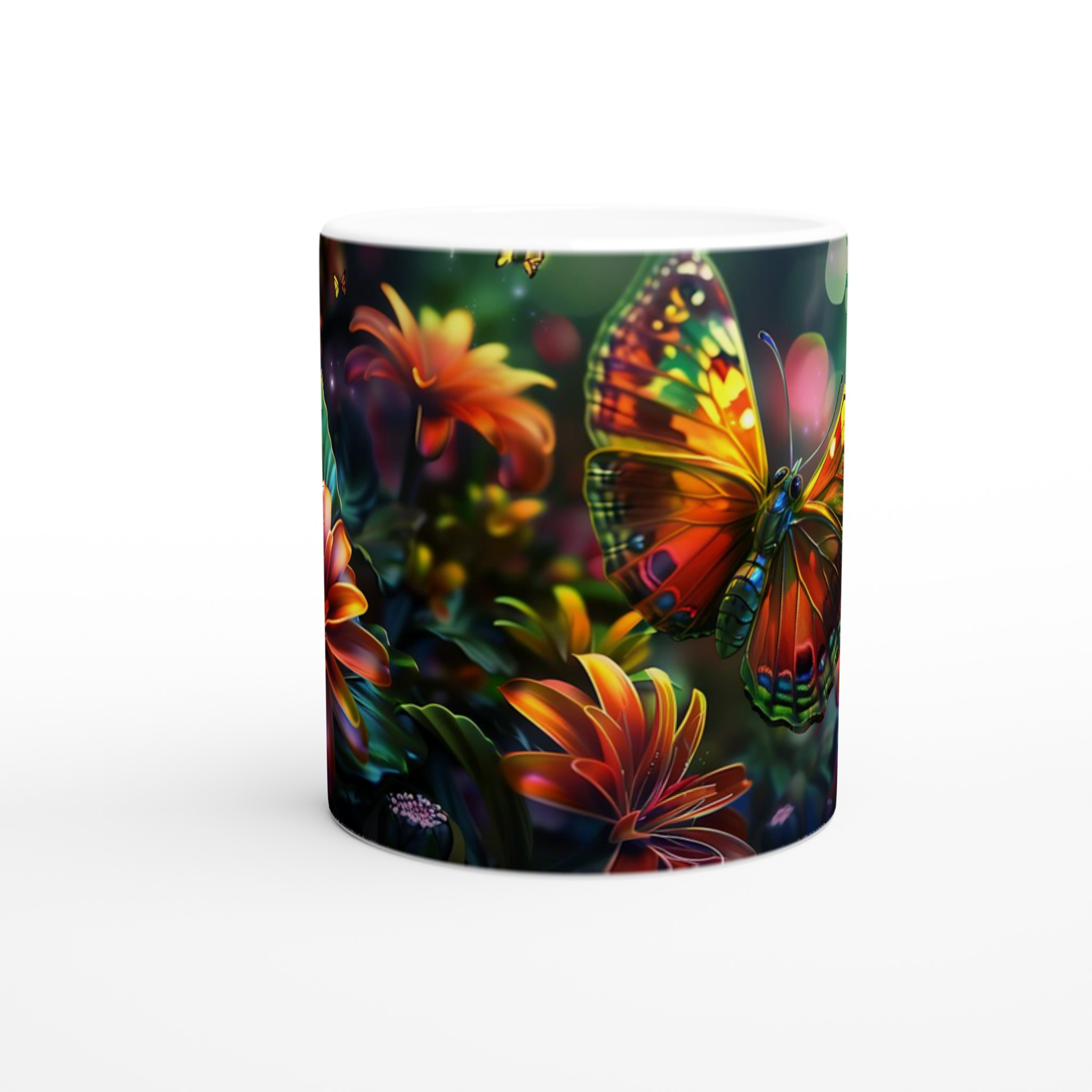 Låt varje fikastund bli en färgsprakande upplevelse med vår Keramiska Mugg i Botanisk Färgexplosion. Inspirerad av den förtrollande skönheten hos lysande fjärilar och vibrerande blommor i full blom, är denna mugg mer än bara en dryckesbehållare – den är ett konstverk för din hand. Varje sip blir en påminnelse om naturens oändliga palett, perfekt för morgonkaffet, kvällens varma choklad eller när du bara vill njuta av en kopp te.