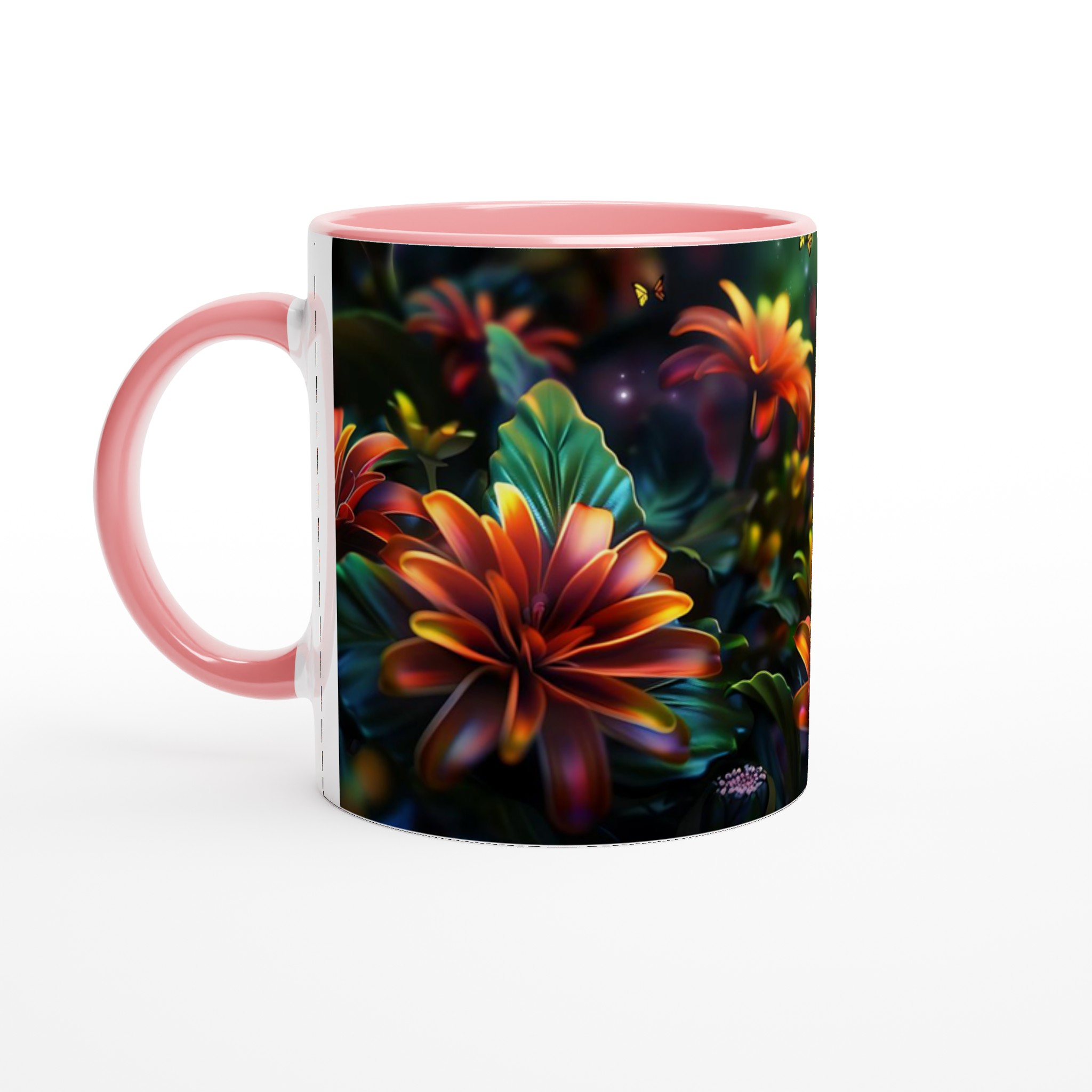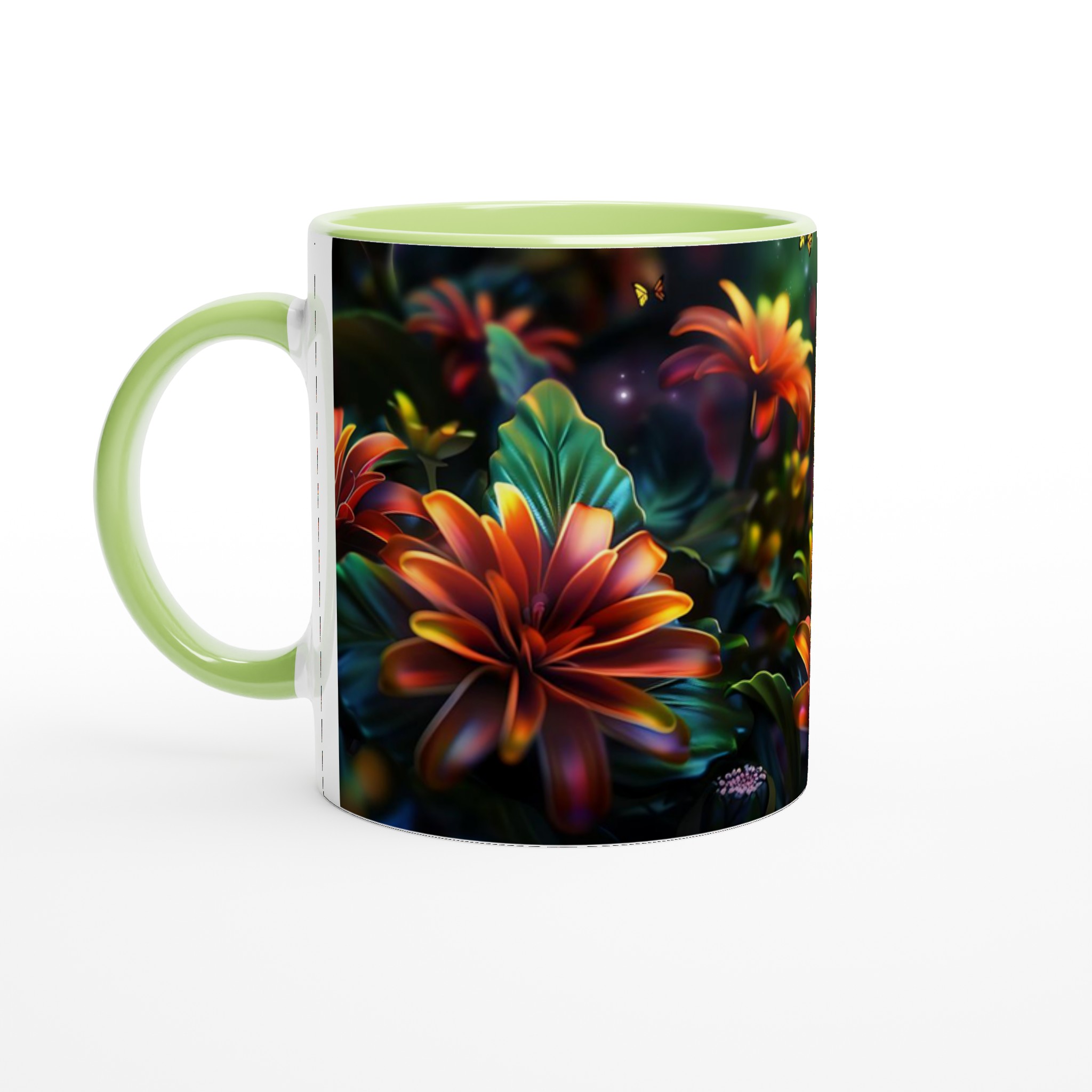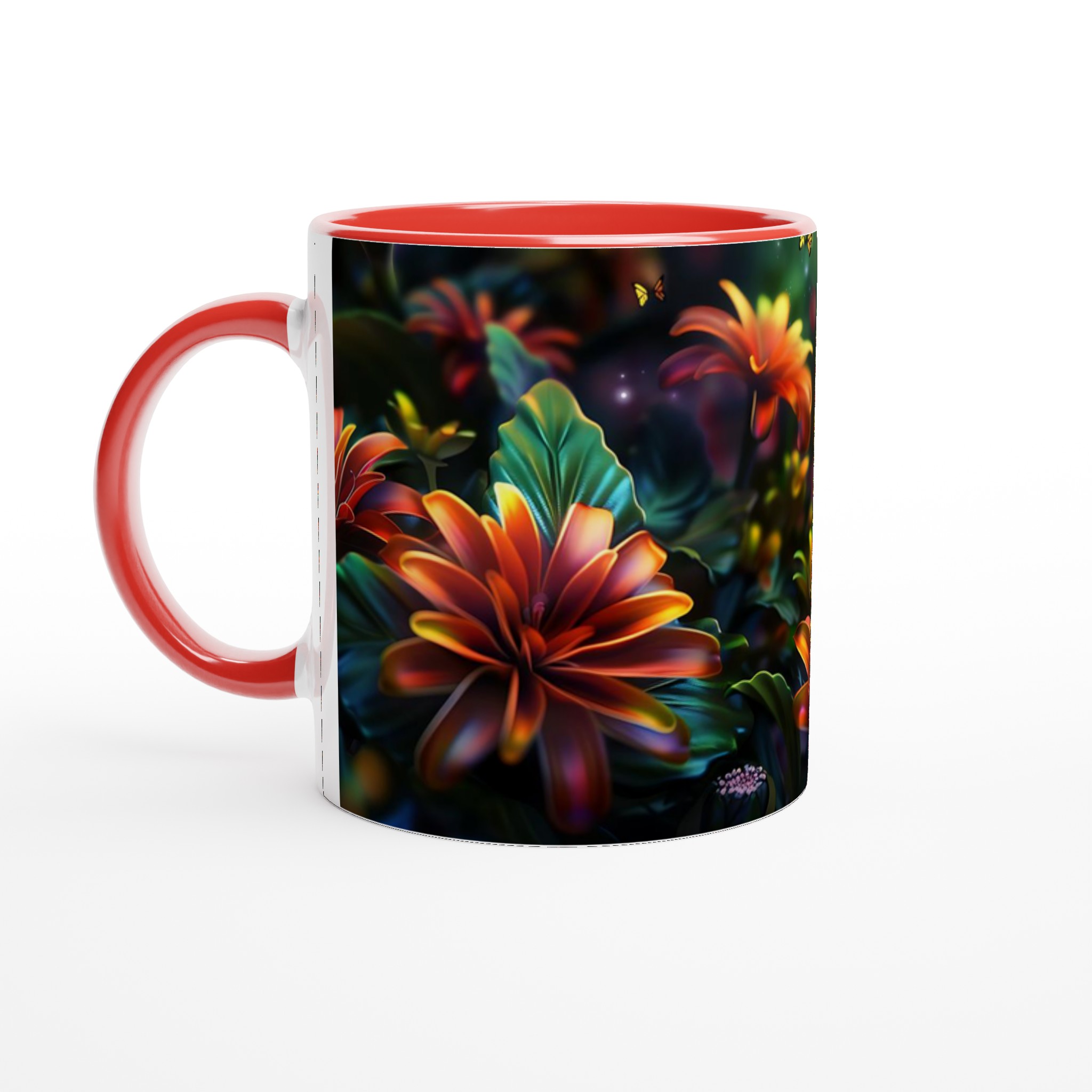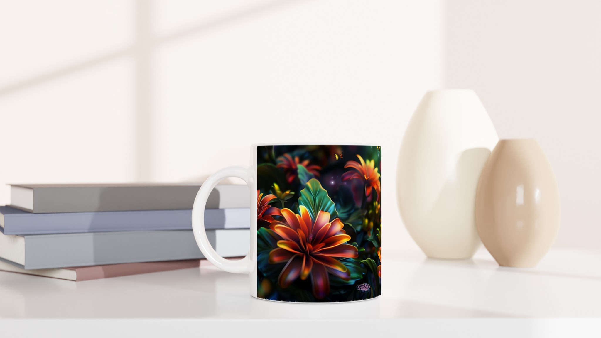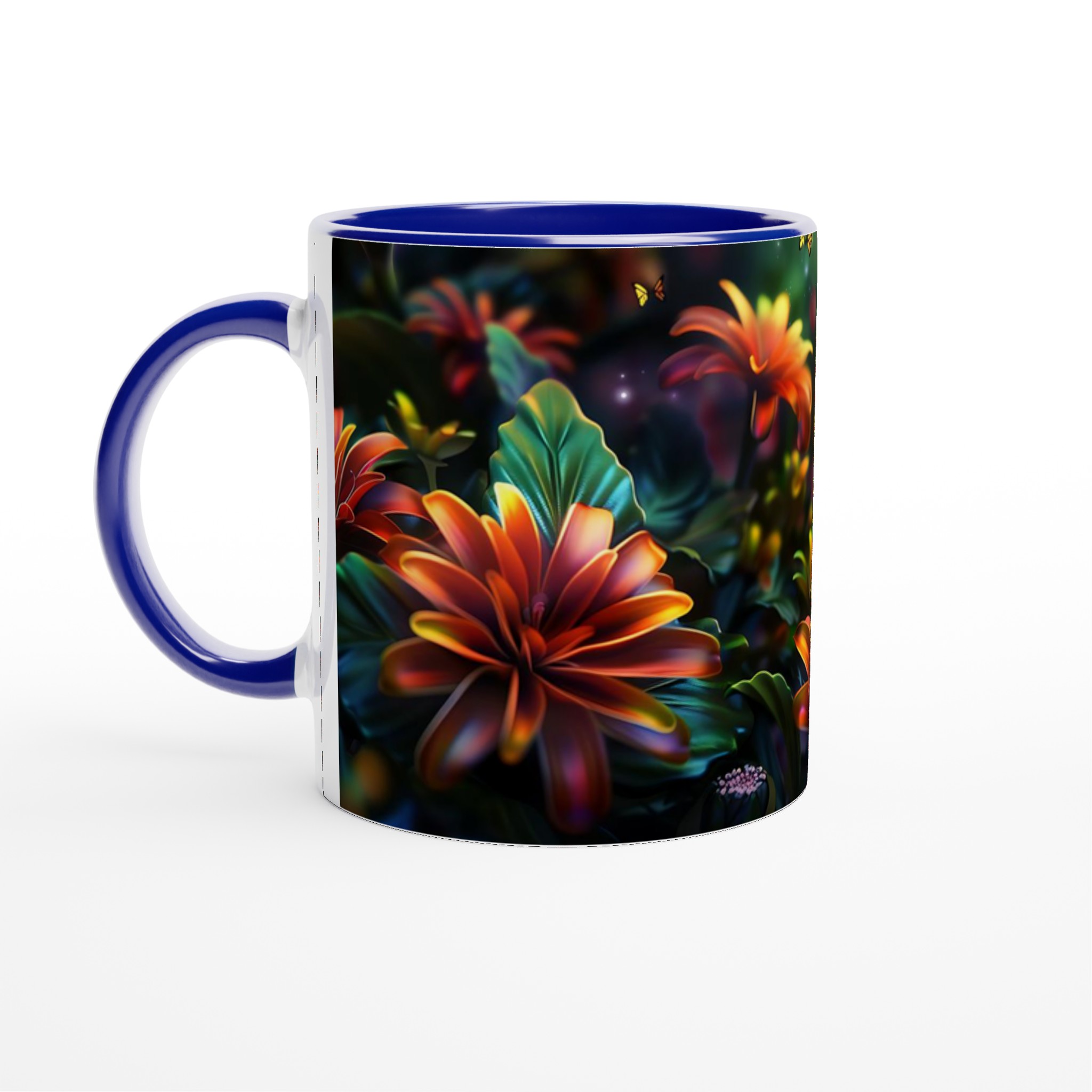 Låt varje fikastund bli en färgsprakande upplevelse med vår Keramiska Mugg i Botanisk Färgexplosion. Inspirerad av den förtrollande skönheten hos lysande fjärilar och vibrerande blommor i full blom, är denna mugg mer än bara en dryckesbehållare – den är ett konstverk för din hand. Varje sip blir en påminnelse om naturens oändliga palett, perfekt för morgonkaffet, kvällens varma choklad eller när du bara vill njuta av en kopp te.