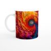 Den blanka vita ytan låter den livfulla designen framträda med exceptionell klarhet och färgstyrka, vilket gör varje användning till en visuell njutning. Tillverkad för att hålla, behåller trycket sin lyster och klarhet även efter otaliga omgångar i både mikrovågsugn och diskmaskin. Med en bekväm storlek på 11 oz (ca 3,25 dl) är den idealisk för både arbete och avkoppling hemma. Denna mugg är inte bara en personlig favorit utan också en uppskattad present till den konstintresserade, den färgälskande vännen eller en kollega som behöver lite extra inspiration.