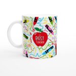 Den blanka vita ytan gör att trycken framhävs med klara och levande färger, som håller sig fina även efter många turer i mikron och diskmaskinen. Muggen är inte bara praktisk – den är också en uppskattad present till familj, vänner eller kollegor. En enkel men personlig gåva som alltid kommer till användning och sprider glädje i klassrummet eller hemma.