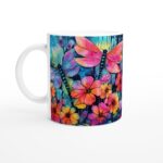 Låt dig förtrollas av denna keramiska mugg som för tankarna till en drömlik akvarellträdgård. Med livfulla trollsländor och frodiga blommor i en explosion av djupa lila, rosa och turkosa nyanser, blir varje fikastund en magisk upplevelse. Den konstnärliga designen med akvarell- och bläckeffekter ger en sofistikerad men lekfull känsla, perfekt för den som älskar färg och unika detaljer i vardagen.