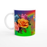 Den här stilrena keramiska muggen, prydd med ett förtrollande akvarellmotiv av färgglada rosor och ett stänk av glitter, blir snabbt en vardagsfavorit. Perfekt för morgonkaffet, kvällens varma choklad eller när du bara vill njuta av en kopp te. Den blanka vita ytan gör att trycken framhävs med klara och levande färger, som håller sig fina även efter många turer i mikron och diskmaskinen.