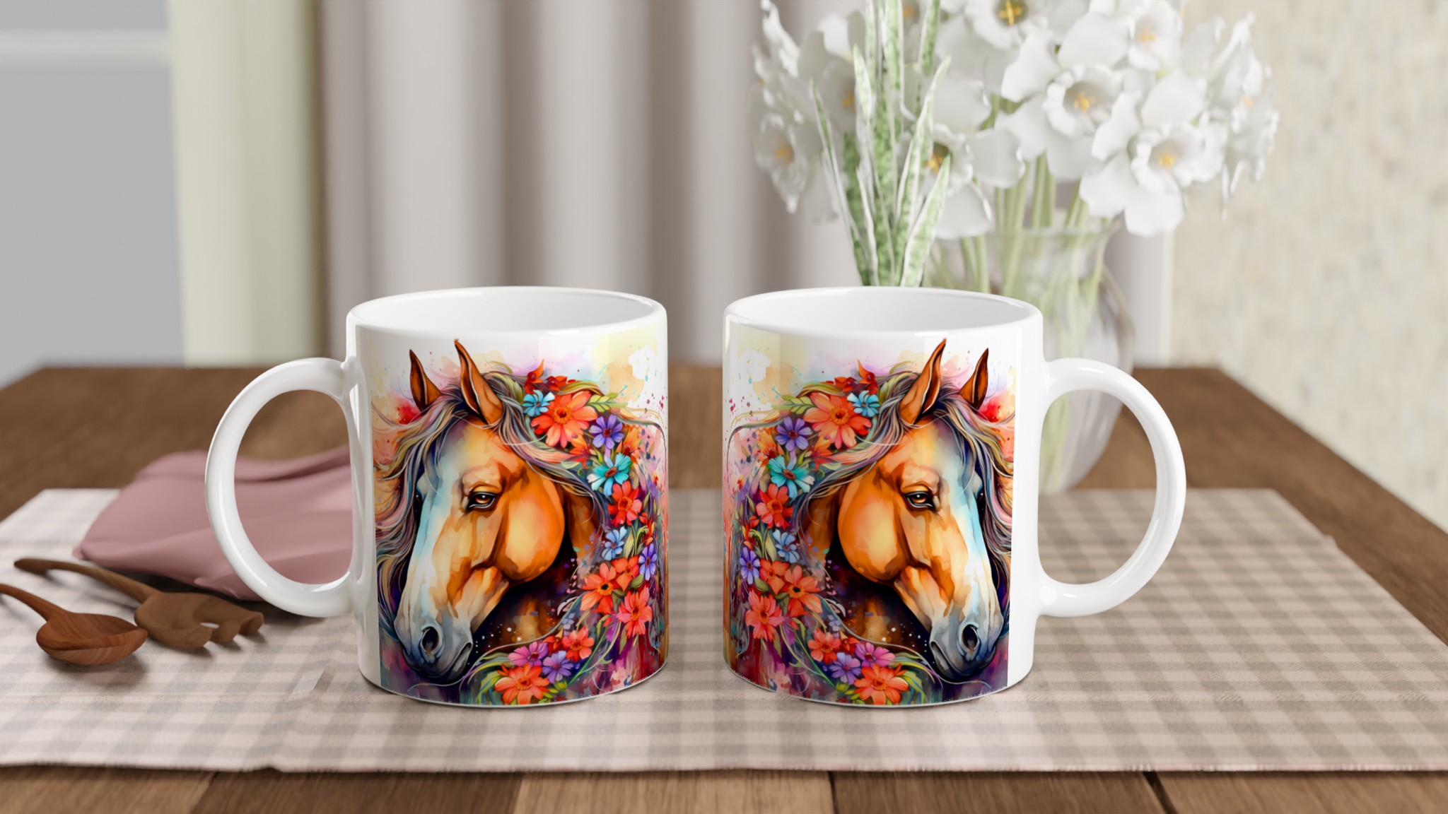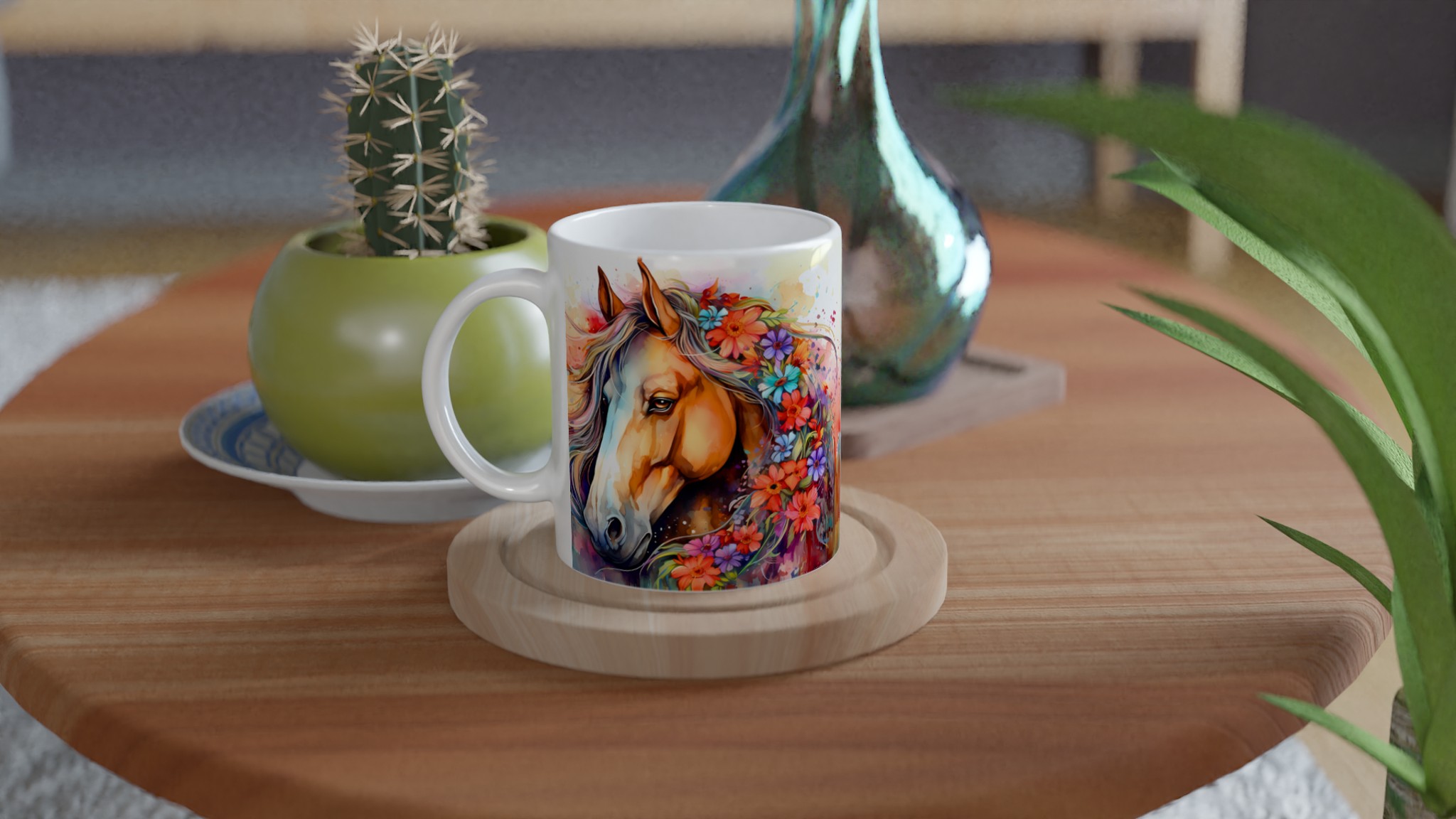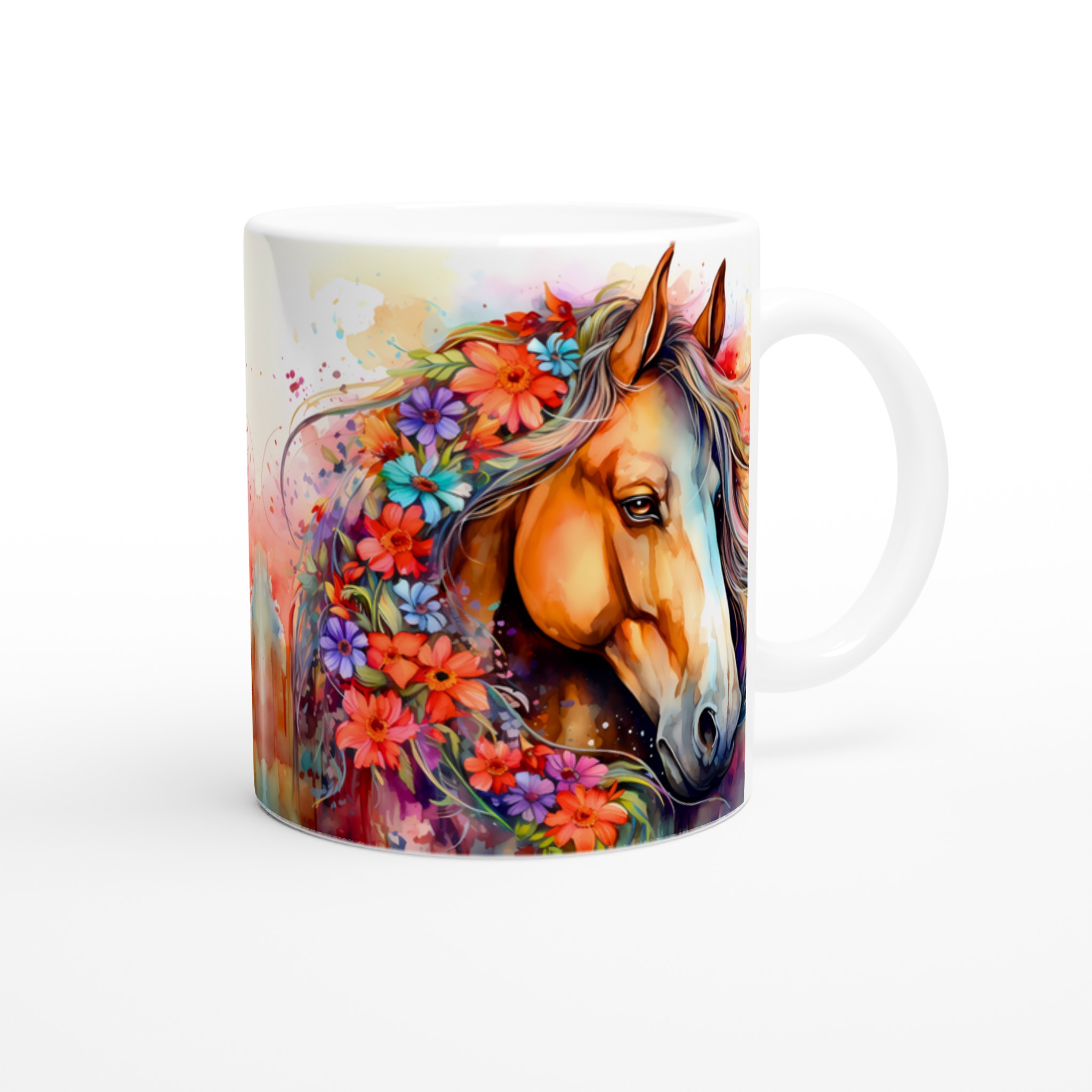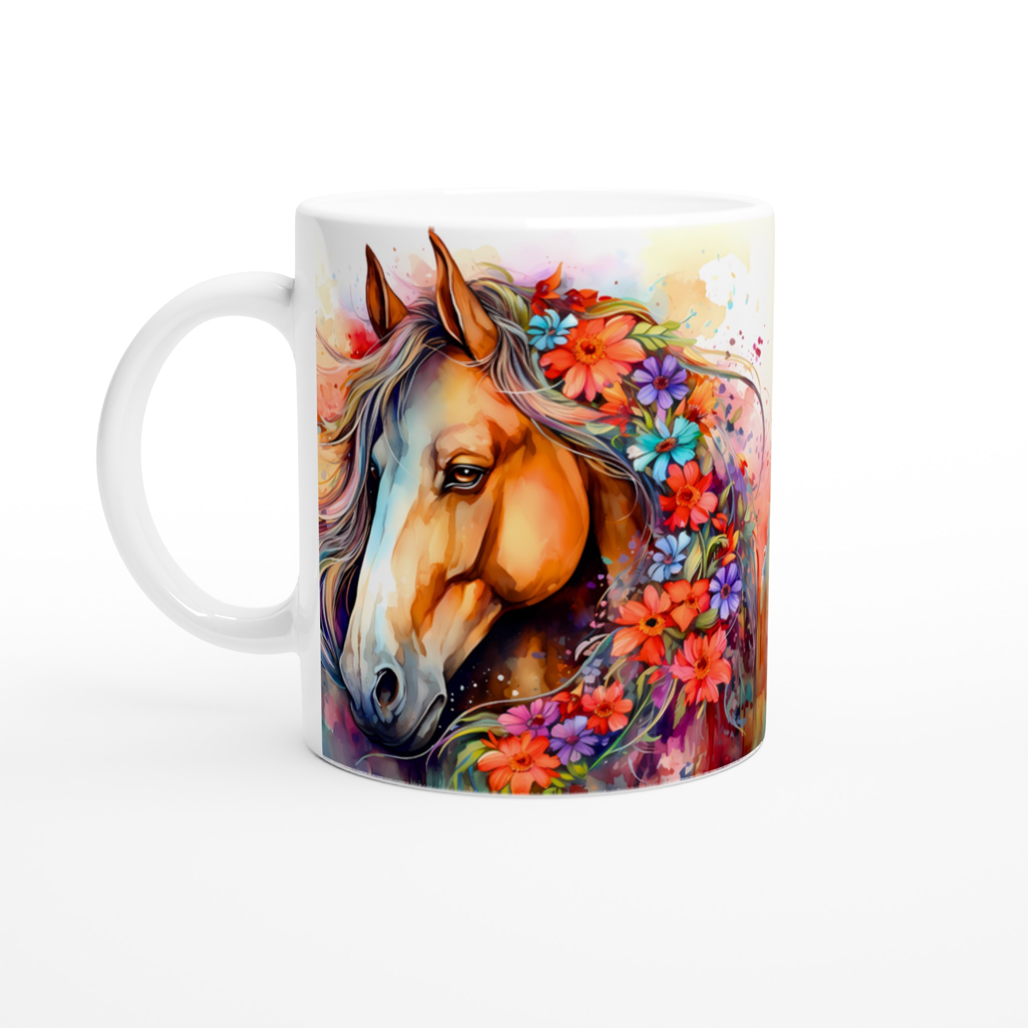 Låt din morgonkaffe eller kvällsté bli en magisk stund med vår keramiska mugg med det färgsprakande motivet av en blomsterhäst. Denna mugg är inte bara en vardagsfavorit – den är ett konstverk som lyser upp varje ögonblick. Den vackra hästen, prydd med en man av livfulla blommor och en akvarellinspirerad palett, för tankarna till natur, frihet och fantasi, och ger en känsla av lugn och inspiration med varje klunk.