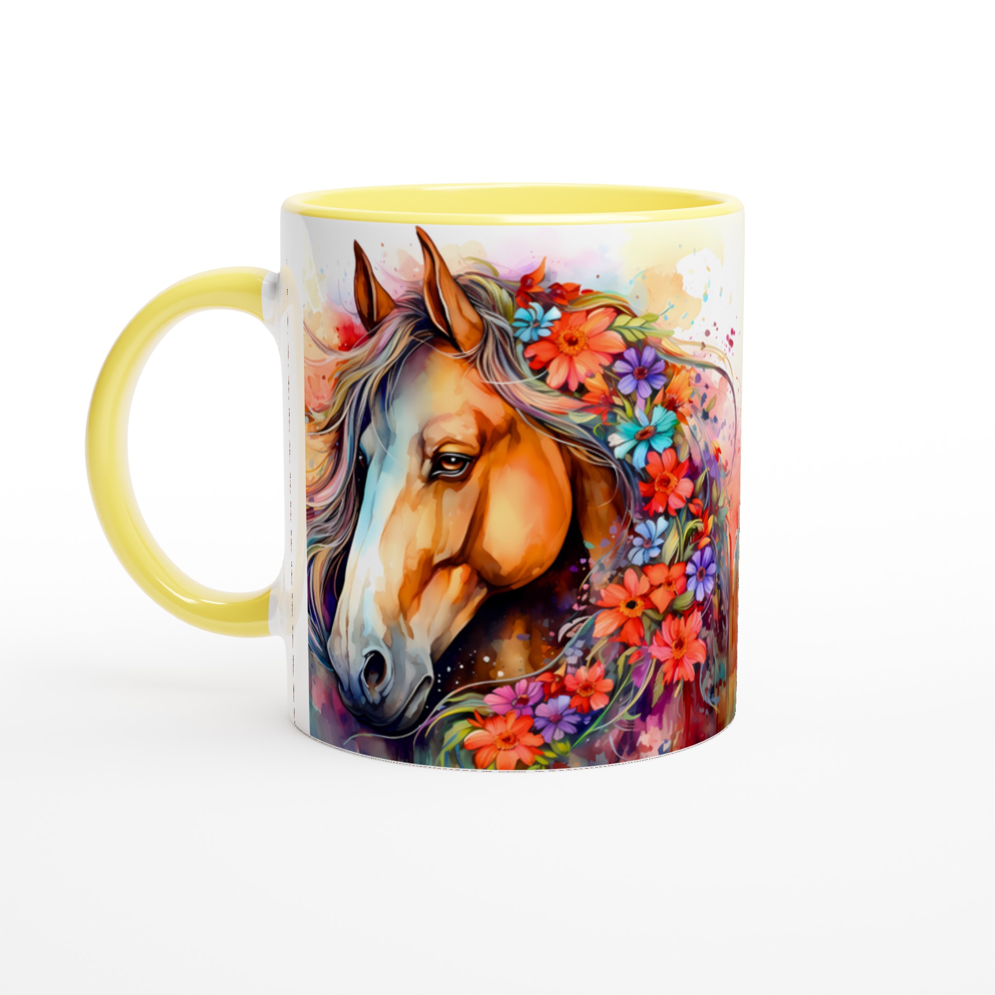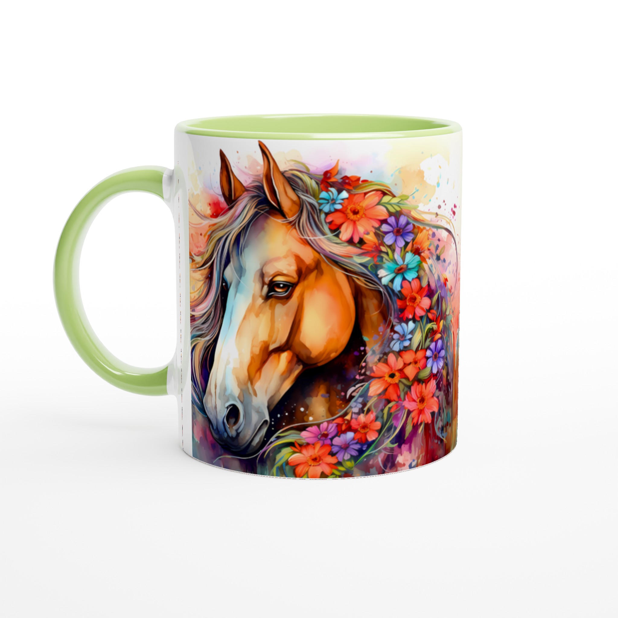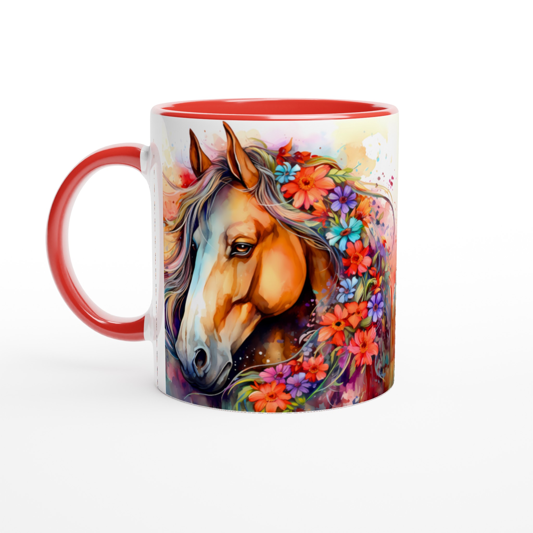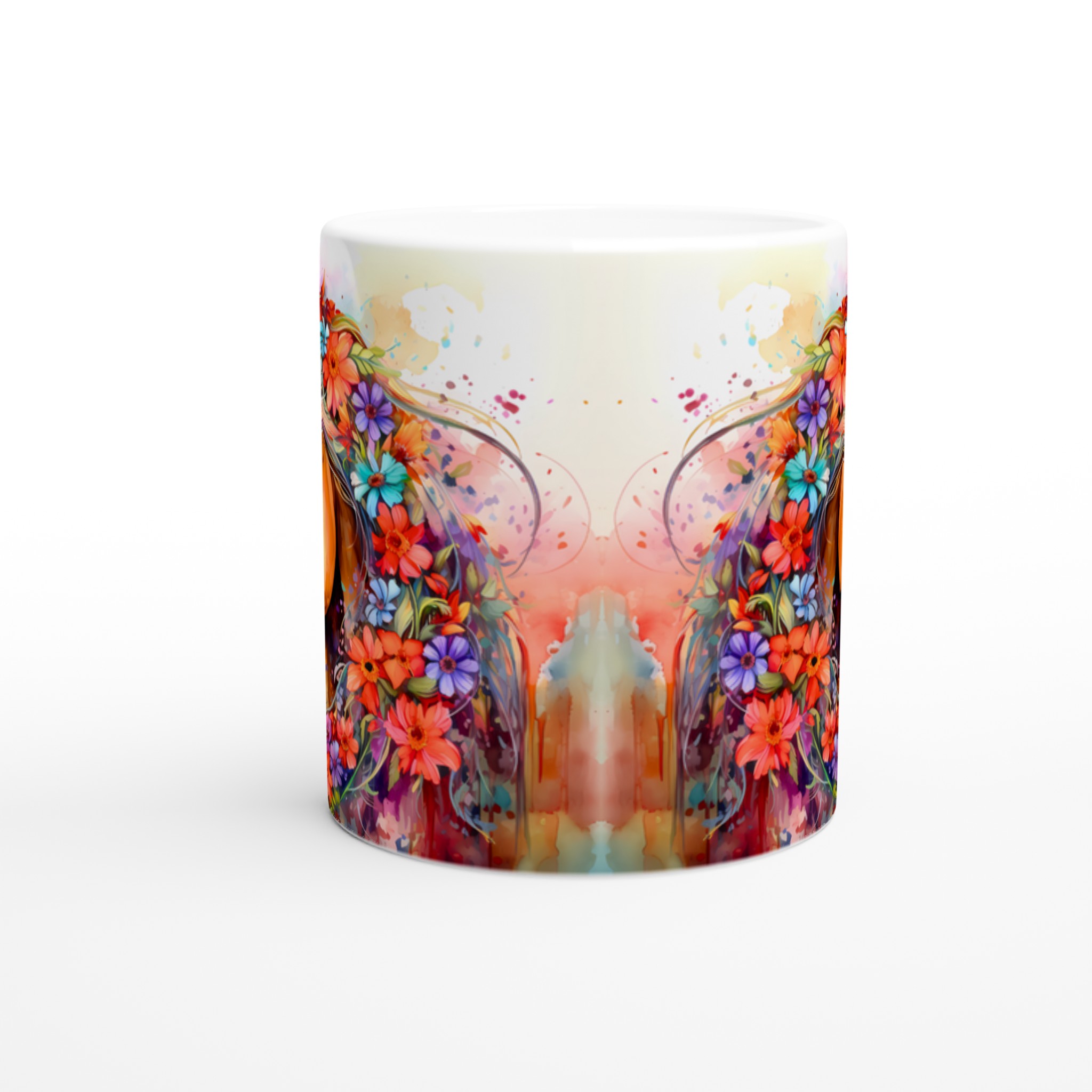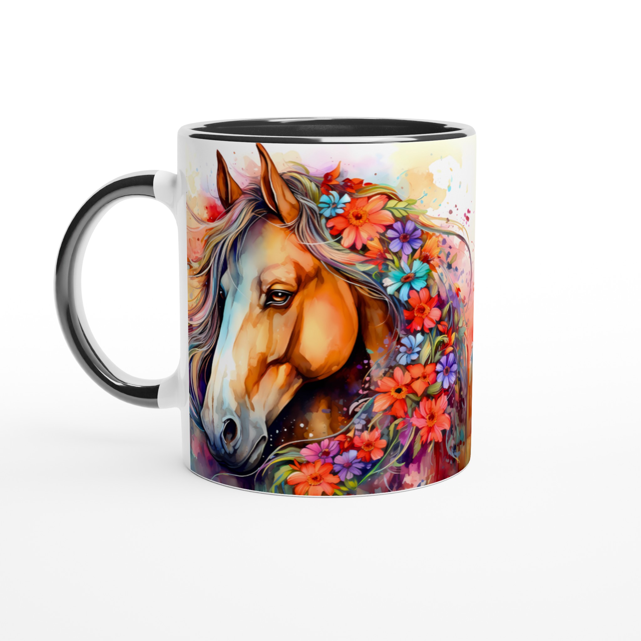 Låt din morgonkaffe eller kvällsté bli en magisk stund med vår keramiska mugg med det färgsprakande motivet av en blomsterhäst. Denna mugg är inte bara en vardagsfavorit – den är ett konstverk som lyser upp varje ögonblick. Den vackra hästen, prydd med en man av livfulla blommor och en akvarellinspirerad palett, för tankarna till natur, frihet och fantasi, och ger en känsla av lugn och inspiration med varje klunk.