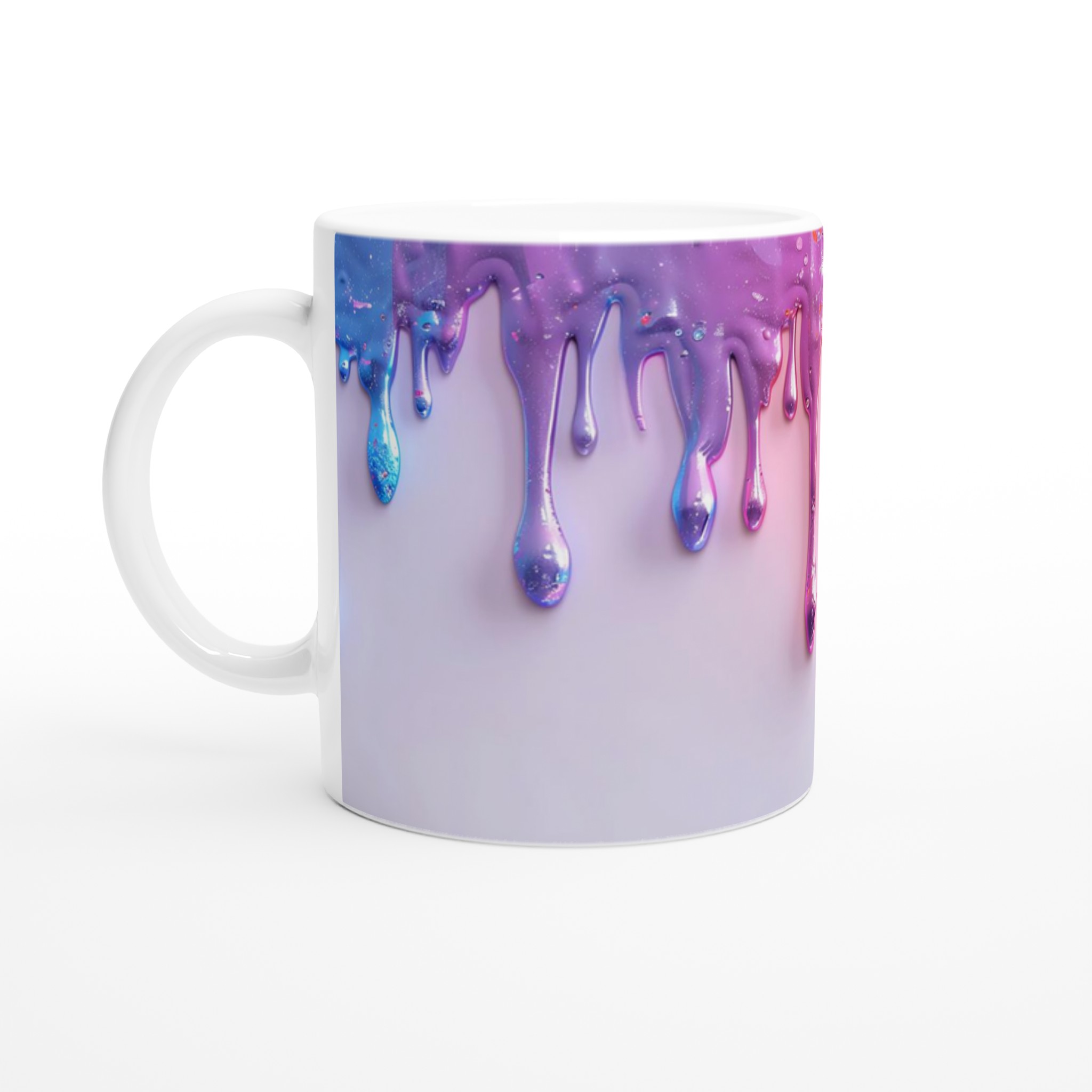 Lyft varje kaffestund med vår premium keramikmugg – stilren, hållbar och skapad för att låta ditt motiv glänsa. Denna mugg fångar den lekfulla magin från rinnande, glittrande glasyrer i en explosion av färg från blått till lila, guld och rosa, perfekt för att addera en gnista av kreativitet till din vardag. Välj mellan en palett av sju härliga nyanser som matchar din personliga stil eller din inredning.
