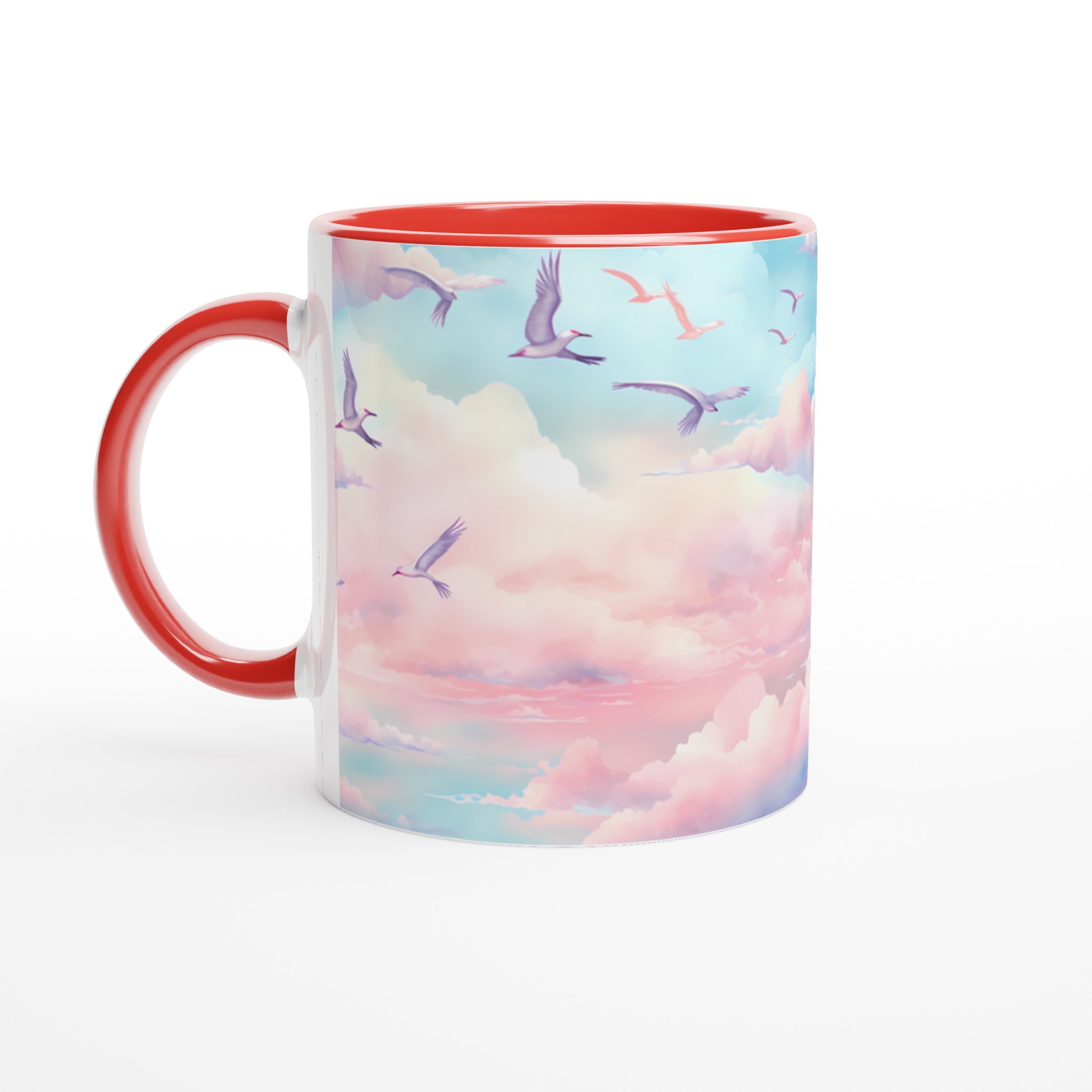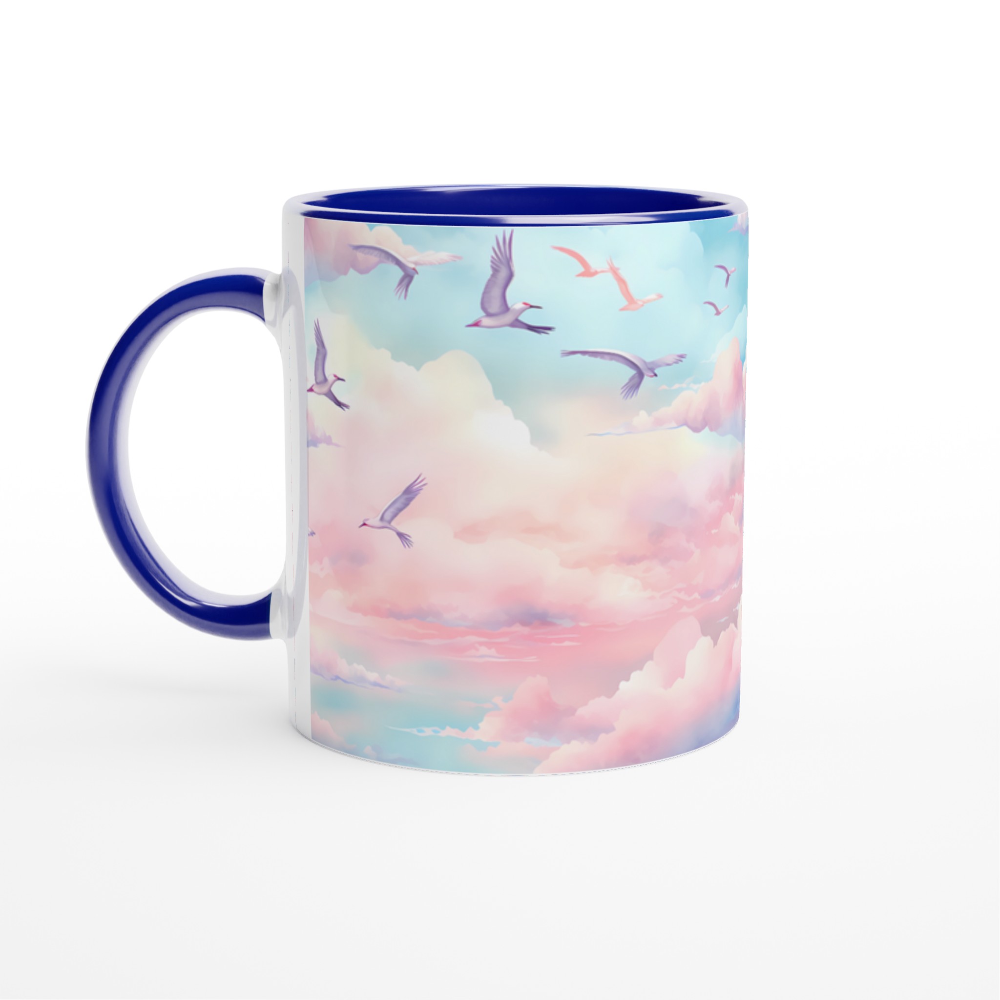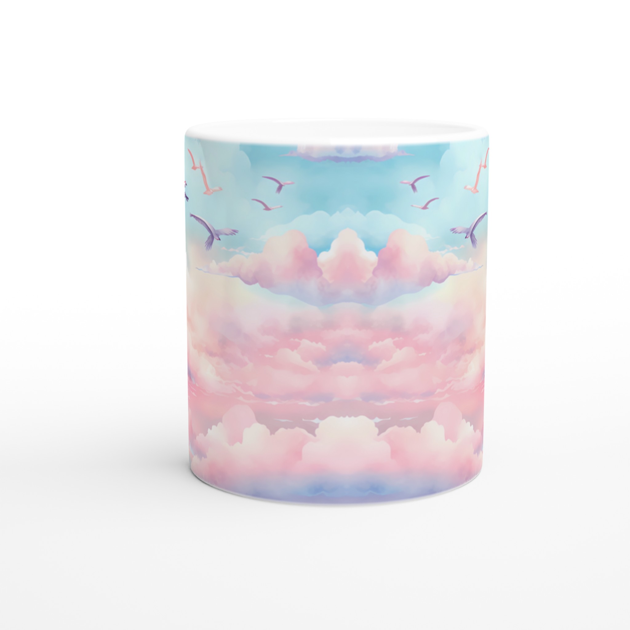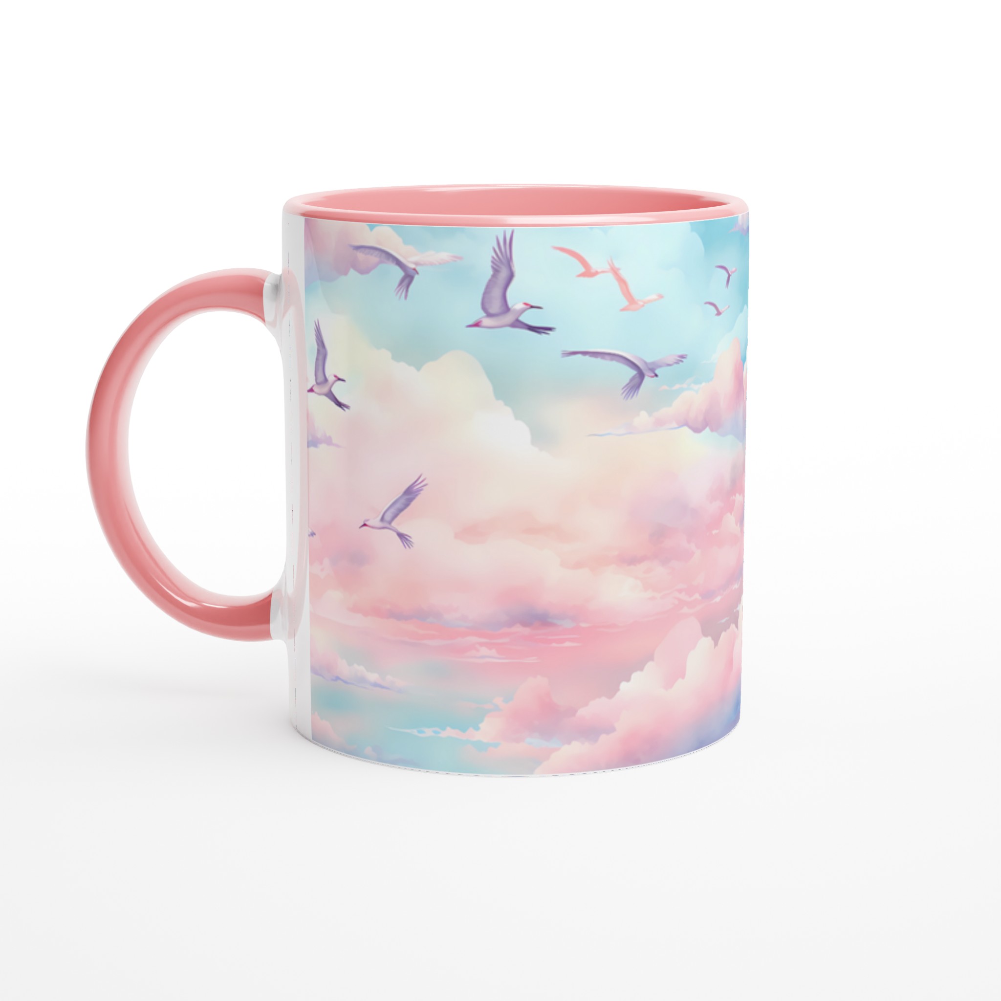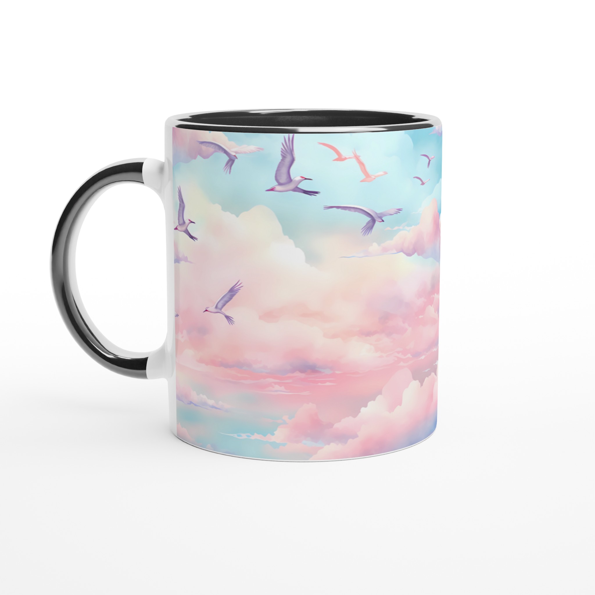 Fånga känslan av en drömlik soluppgång varje dag med denna förtrollande keramiska mugg. Dess design, inspirerad av en pastellfärgad himmel fylld med svävande tranor, skapar en lugn och inbjudande atmosfär för dina fikastunder. Denna stilrena mugg blir snabbt en vardagsfavorit, perfekt för morgonkaffet, kvällens varma choklad, eller när du bara vill njuta av en kopp te i lugn och ro.